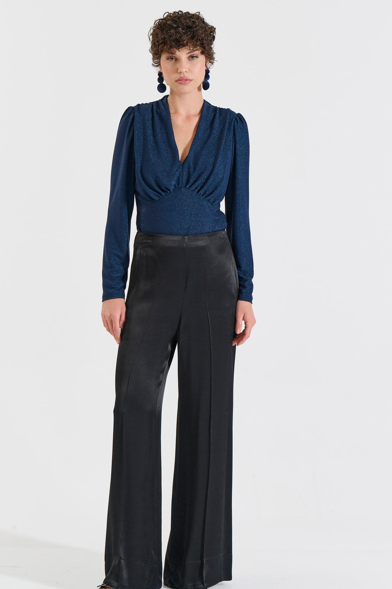 Κομψή μπλούζα λούρεξ με διακριτή λάμψη και elegant αισθητική. Διαθέτει V λαιμόκοψη και ελαφριά σούρα στο μπροστινό μέρος που κολακεύει τη σιλουέτα.Ένα ευκολοφόρετο top που μπορεί να φορεθεί από πρωινές εμφανίσεις μέχρι πιο βραδινές περιστάσεις, συνδυάζοντάς το ιδανικά με παντελόνια ή φούστες για ένα chic και σύγχρονο look.