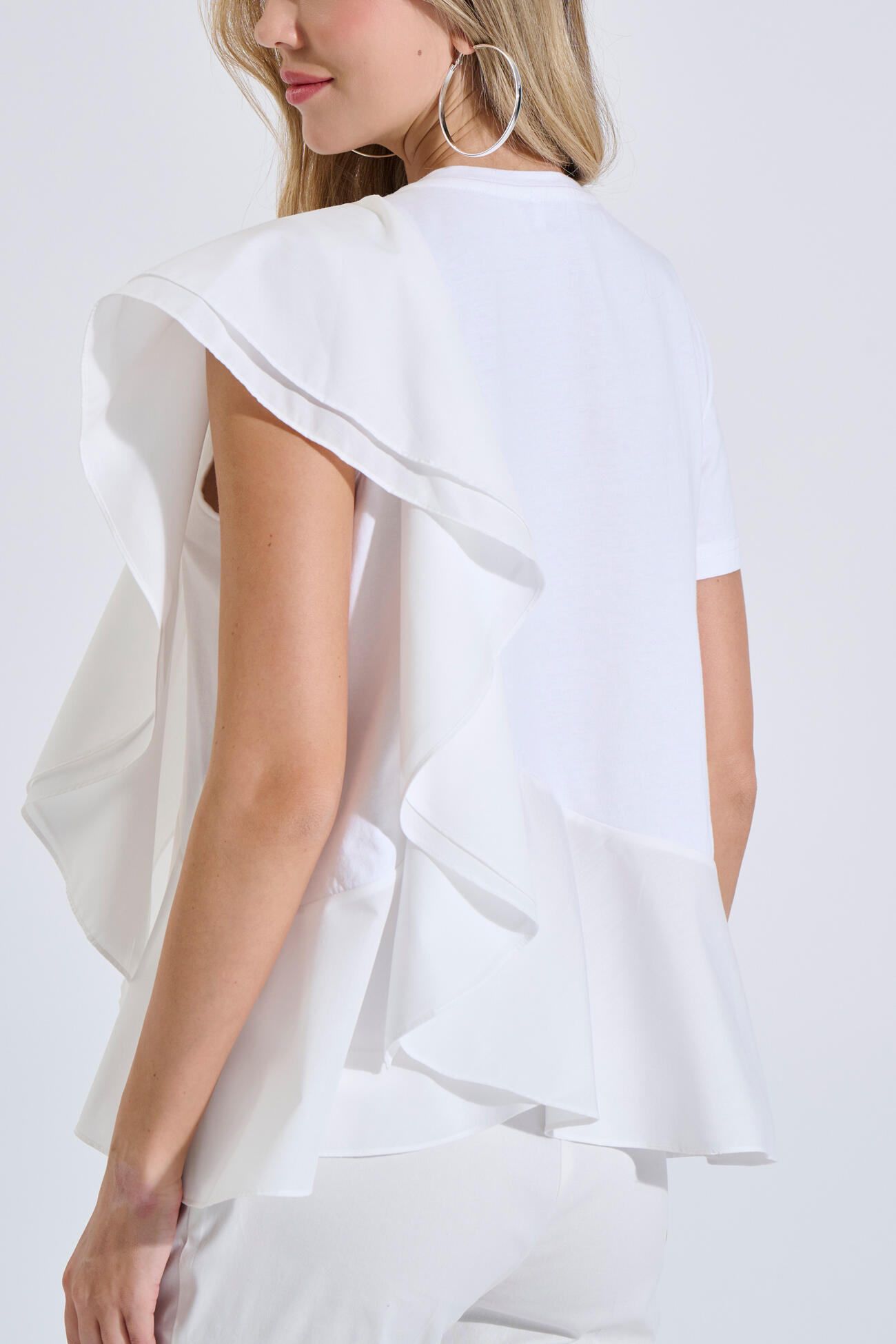 Μπλούζα Βαμβακερή με Συνδυασμό Δύο Υφασμάτων & Βολάν