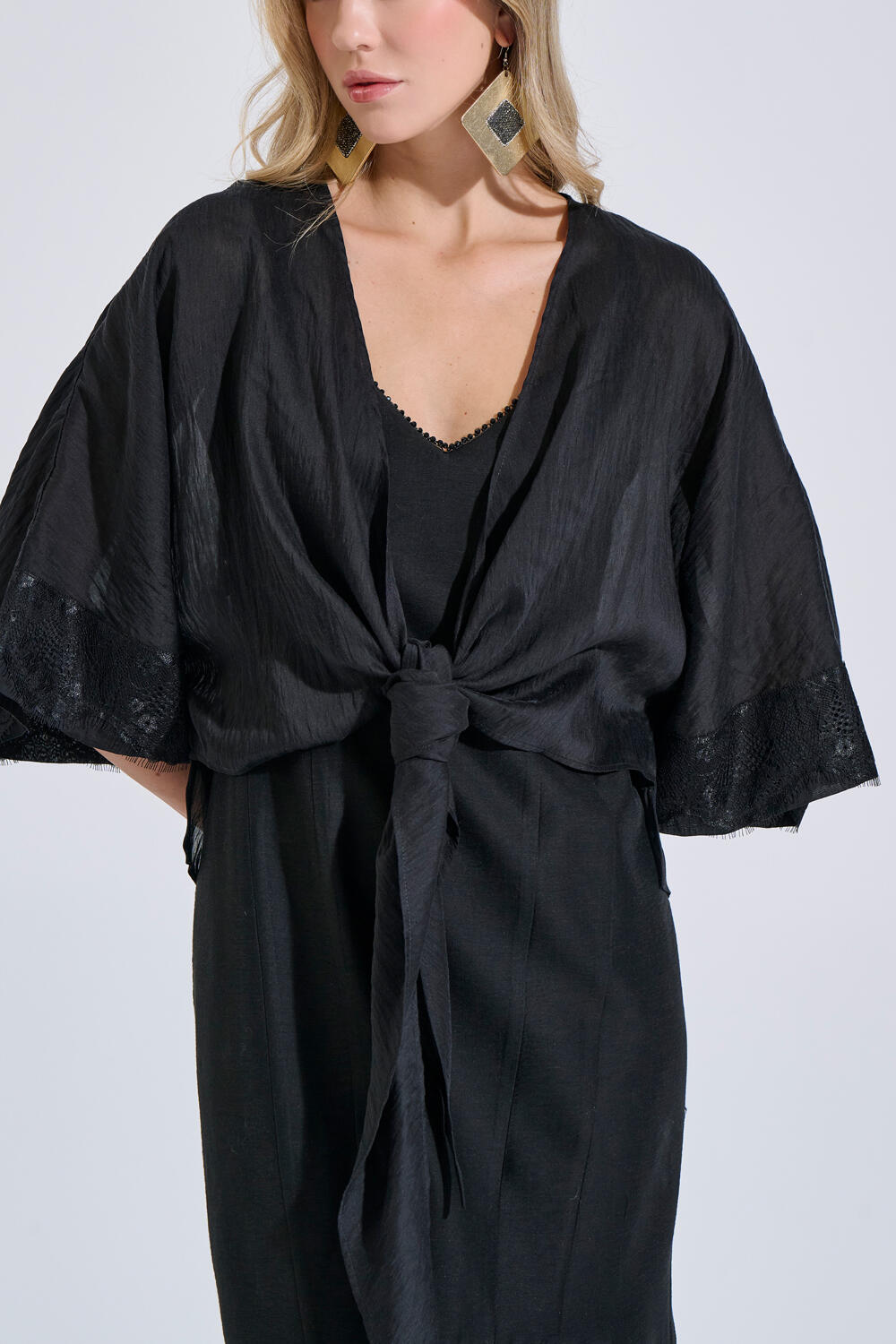 Μπολερό από lyocell και λινό με Δαντέλα στα Μανίκια
