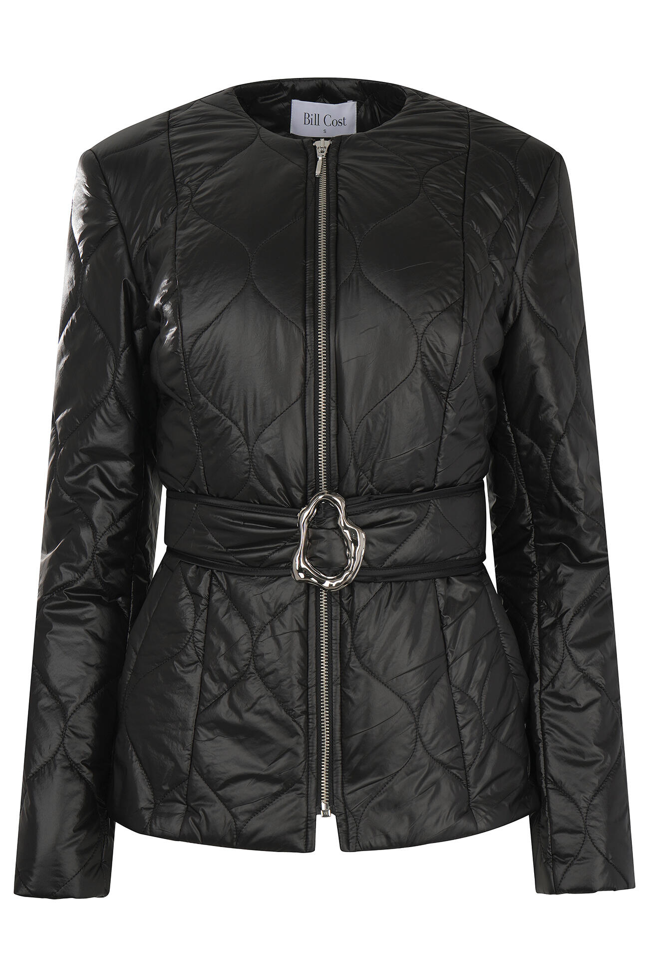 Καπιτονέ μπουφάν σε μεσαίο μήκος και εφαρμοστή γραμμή, με αποσπώμενη ζώνη και χρυσή αγκράφα που τονίζει τη μέση. Διαθέτει φερμουάρ και χαρίζει κομψή, θηλυκή σιλουέτα για καθημερινές εμφανίσεις.