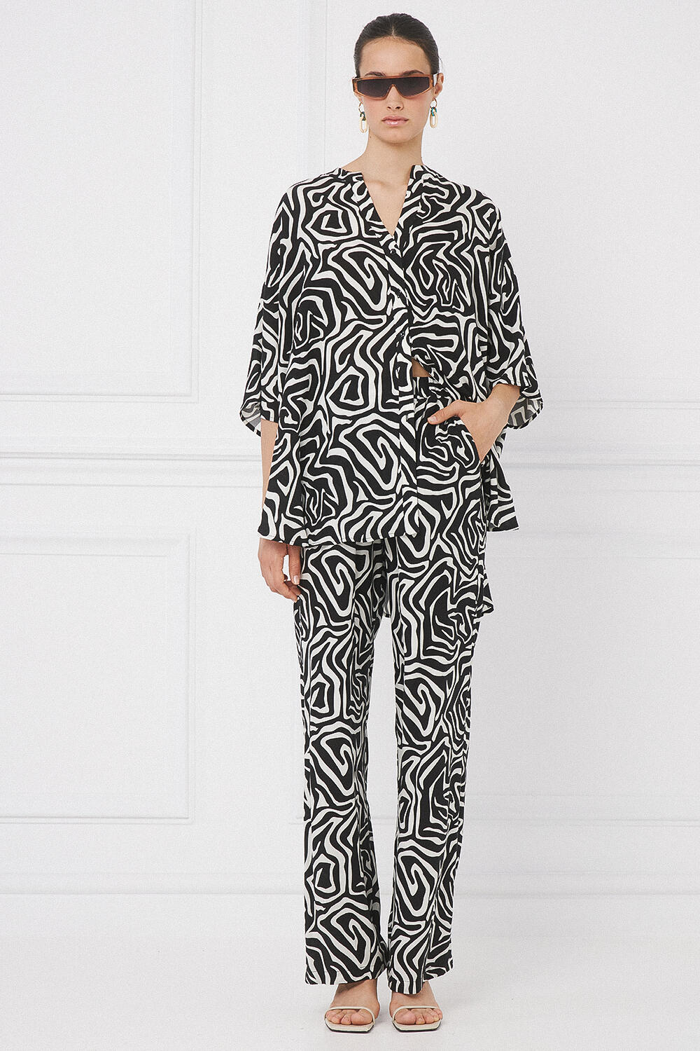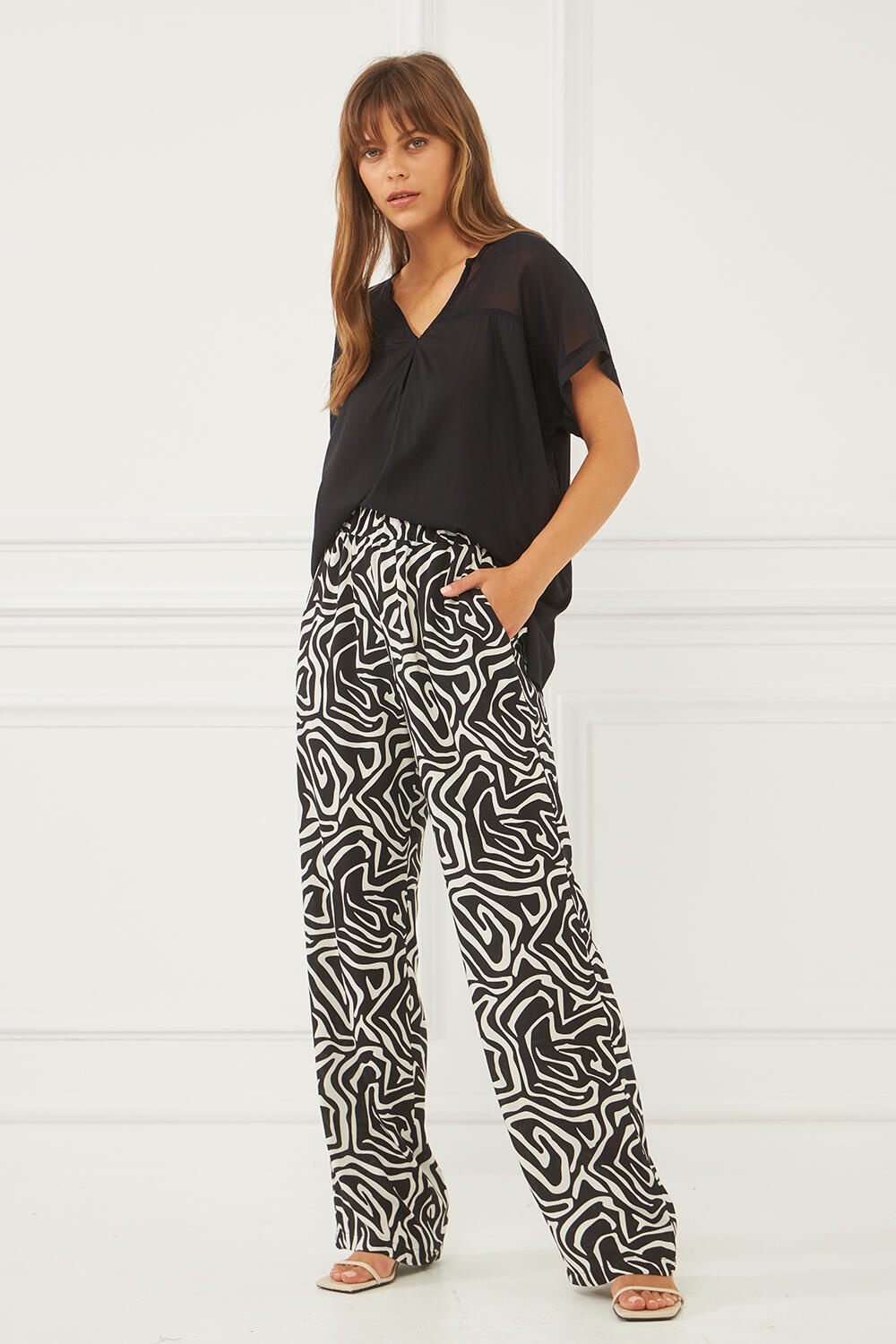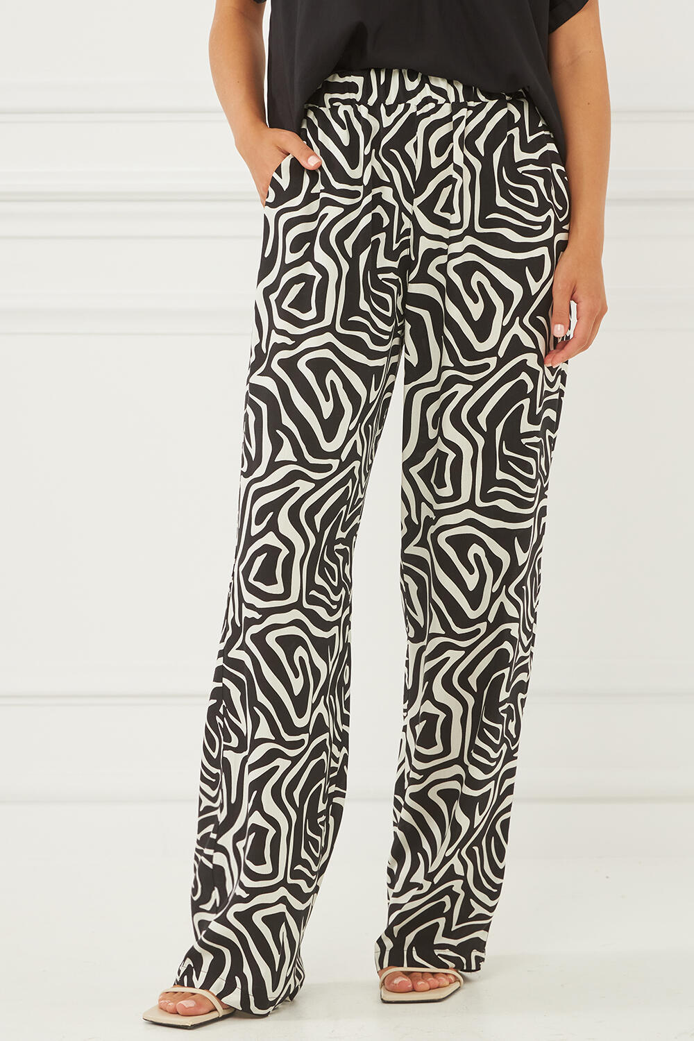 Παντελόνα με εμπριμέ ασπρόμαυρο print, σε άνετη γραμμή, με λάστιχο στη μέση και κορδόνι αυξομείωσης. Συνδυάστε το με το 10-342026-0 πουκάμισο για ένα ολοκληρωμένο look.