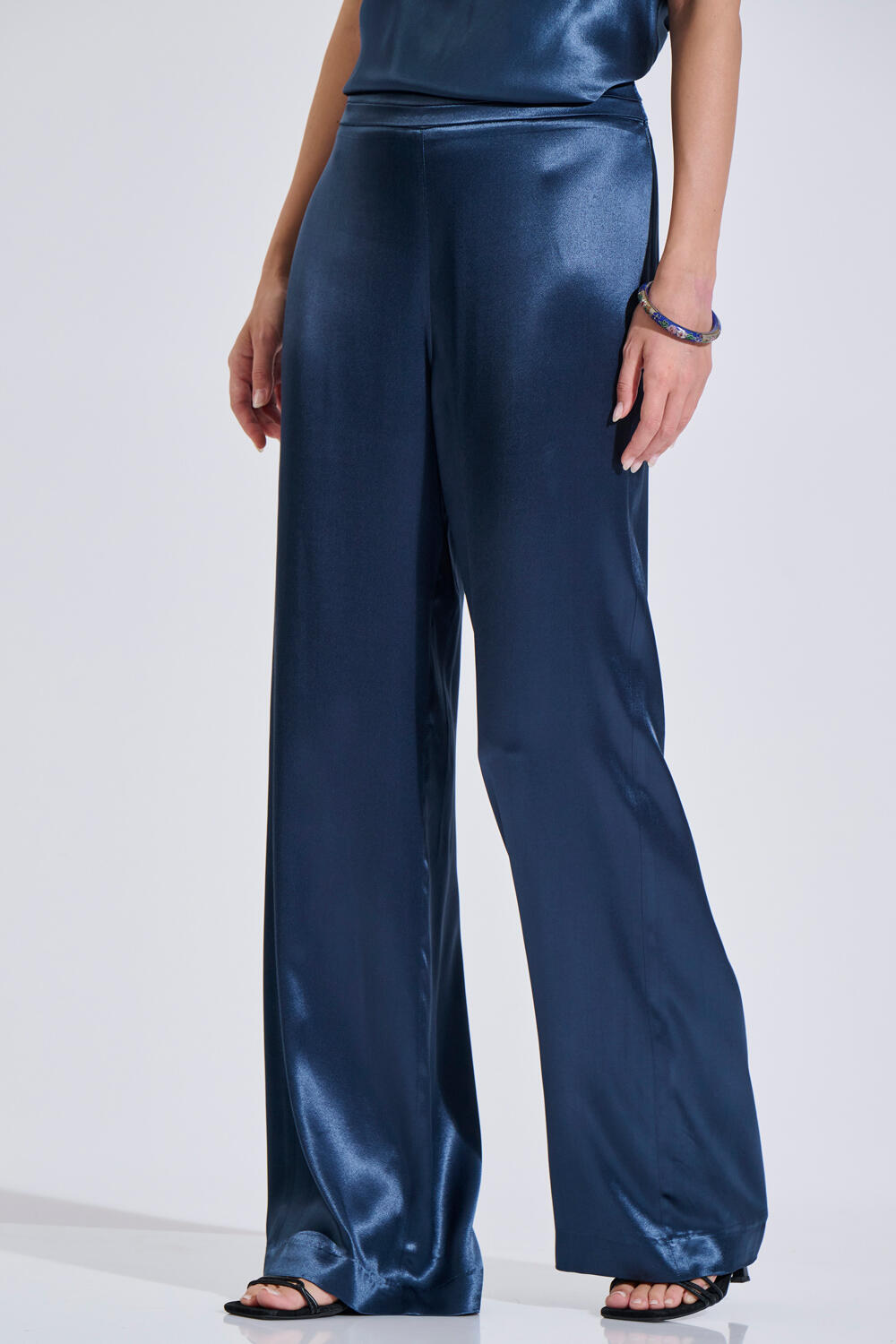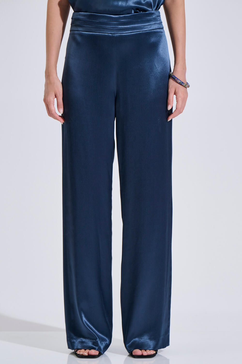 Σατέν παντελόνα σε άνετη, ίσια γραμμή. Διαθέτει ψηλόμεση εφαρμογή, πιέτες στη μέση και φερμουάρ στο πλάι.Ιδανική επιλογή για elegant looks από το πρωί έως το βράδυ.
