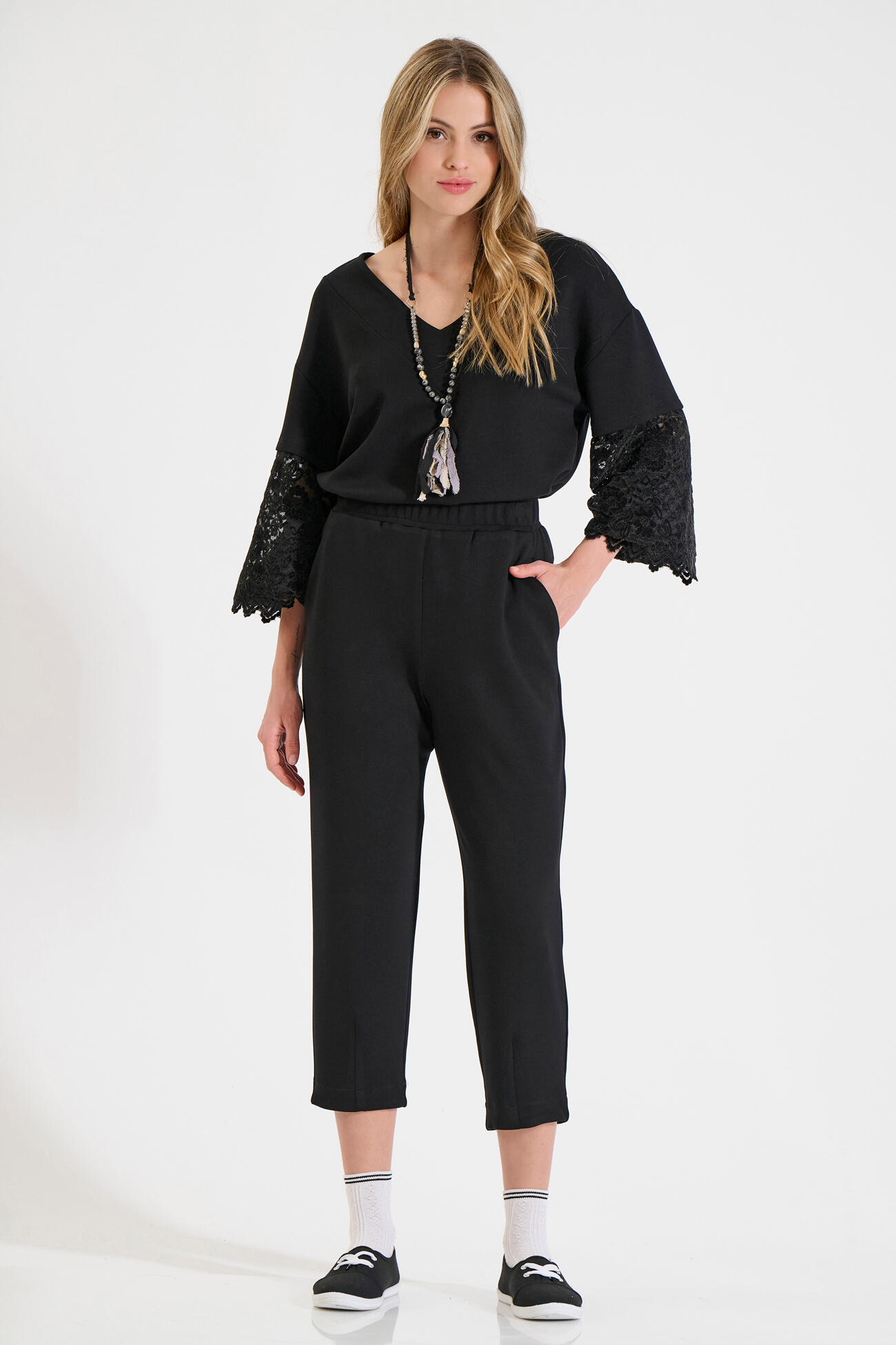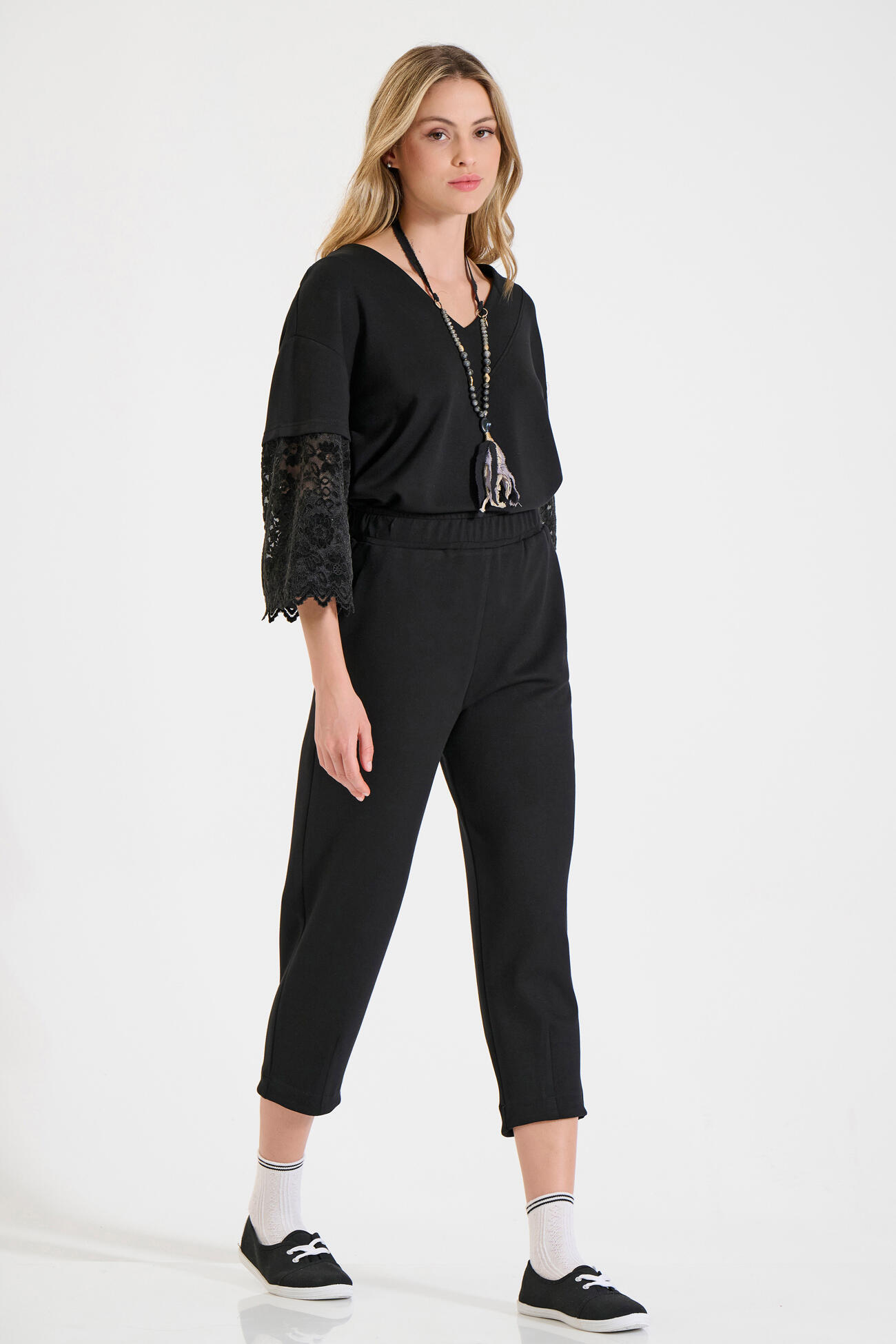 Φούτερ παντελόνι σε cropped γραμμή, με ψηλόμεση εφαρμογή και λάστιχο στη μέση για άνεση και ευελιξία στην κίνηση.Η καθαρή γραμμή του χαρίζει μια σύγχρονη, minimal αισθητική.