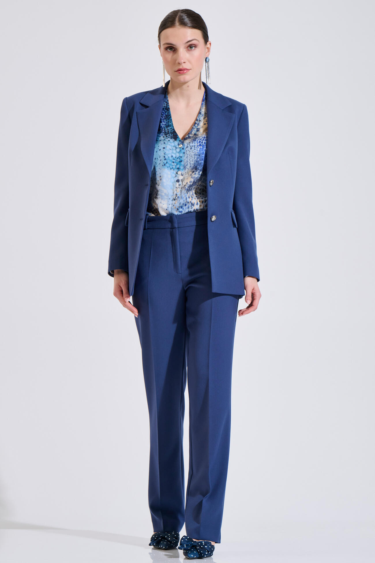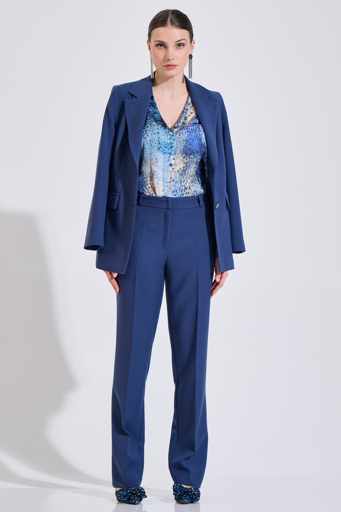Παντελόνι σε άνετη ίσια γραμμή διαθέτει πλαϊνές τσέπες, θηλάκια για ζώνη και κλείσιμο μπροστά.Συνδυάζεται ιδανικά σε σετ με το σακάκι 10-031058-1.