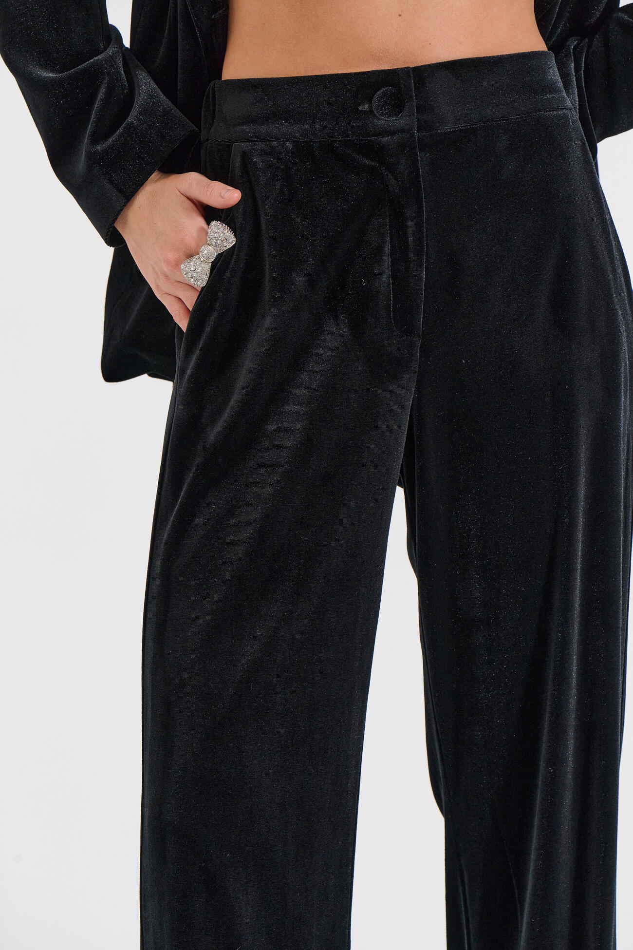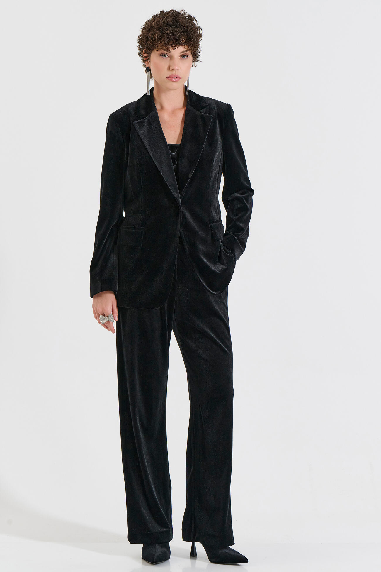Κομψό παντελόνι από απαλό βελούδο σε ίσια γραμμή, ιδανικό για άνετες αλλά elegant εμφανίσεις. Διαθέτει λάστιχο στο πίσω μέρος της μέσης που προσφέρει άνεση και σταθερή εφαρμογή.Ένα ευκολοφόρετο κομμάτι που συνδυάζεται εύκολα με μπλούζες, πουκάμισα και το σακάκι 10-210163-0 για day-to-night looks.
