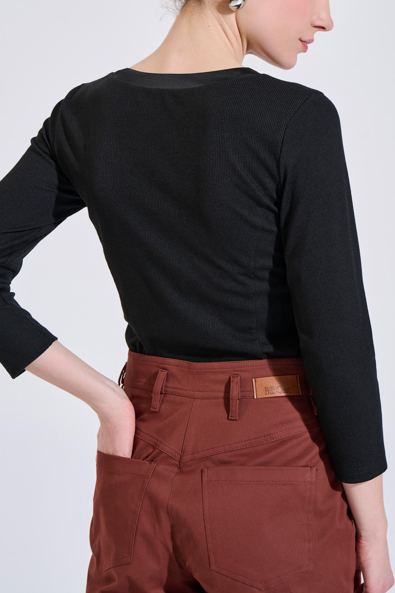 Βαμβακερό παντελόνι carrot σε άνετη γραμμή και μήκος αστραγάλου, με ψηλόμεση εφαρμογή. Διαθέτει κλείσιμο μπροστά, τσέπες στο πλάι και πίσω, καθώς και θηλάκια για ζώνη.