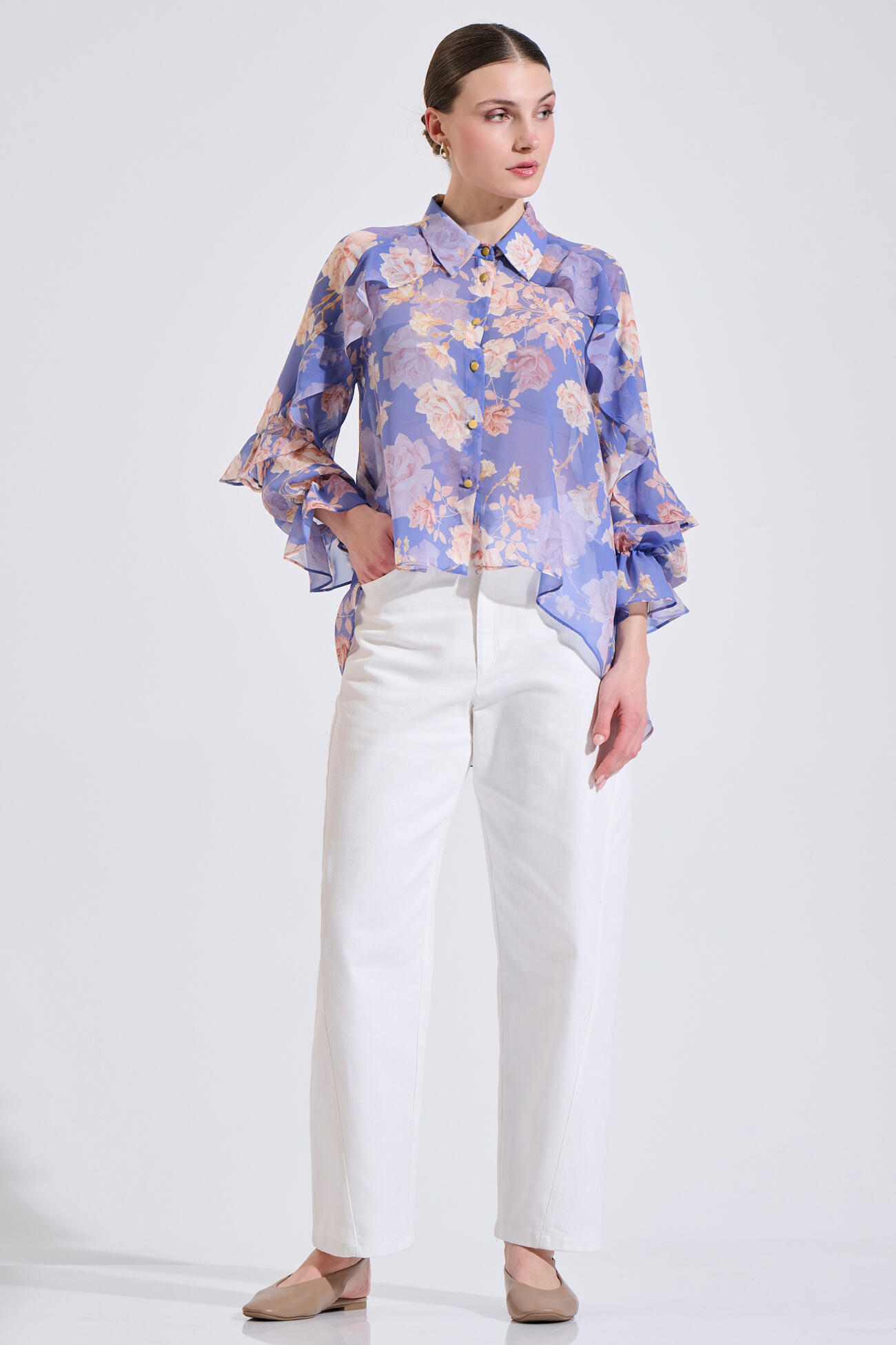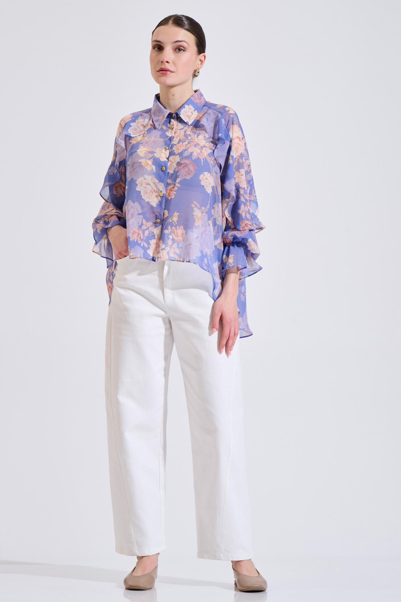 Βαμβακερό παντελόνι τύπου τζιν σε γραμμή barrel.Διαθέτει κλασικό πεντάτσεπο σχεδιασμό, μπροστινό κλείσιμο με φερμουάρ και μεταλλικό κουμπί, καθώς και θηλάκια για ζώνη .