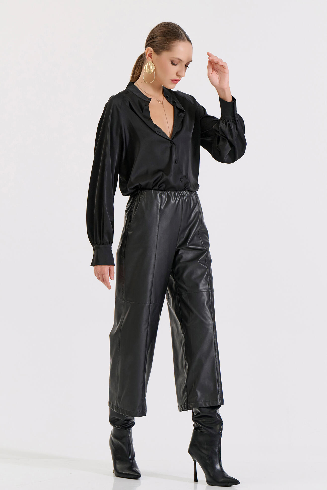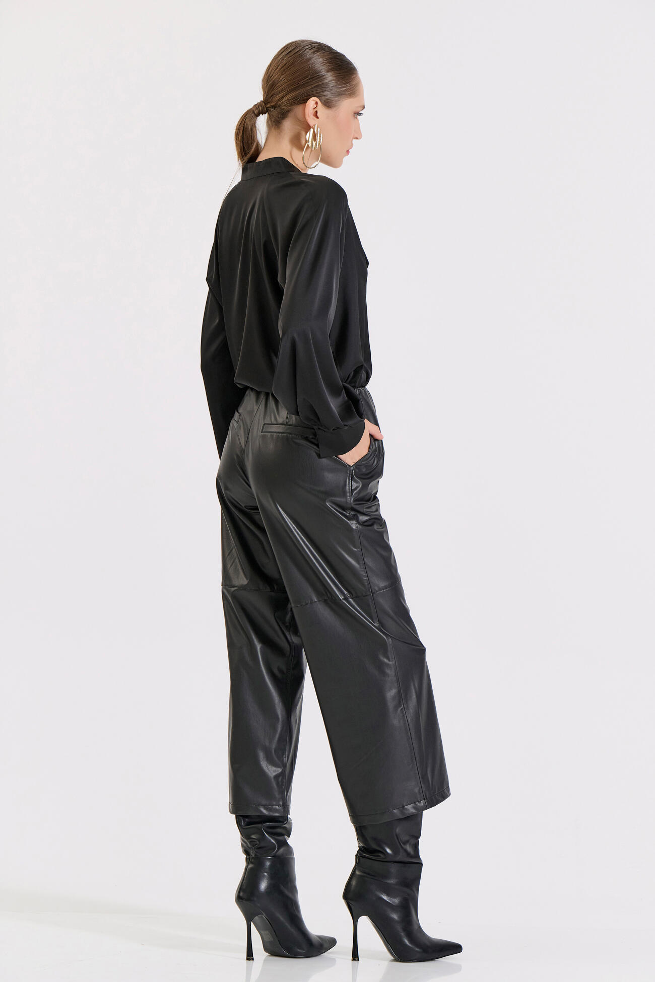 Στυλάτη ζιπ κιλότ σε γραμμή που προσφέρει άνεση και μοντέρνα εμφάνιση. Κατασκευασμένη από δερματίνη ,διαθέτει φερμουάρ στο πλάι και cropped μήκος που αναδεικνύει το στυλ. Ιδανική επιλογή για statement σύνολα από το πρωί έως το βράδυ.