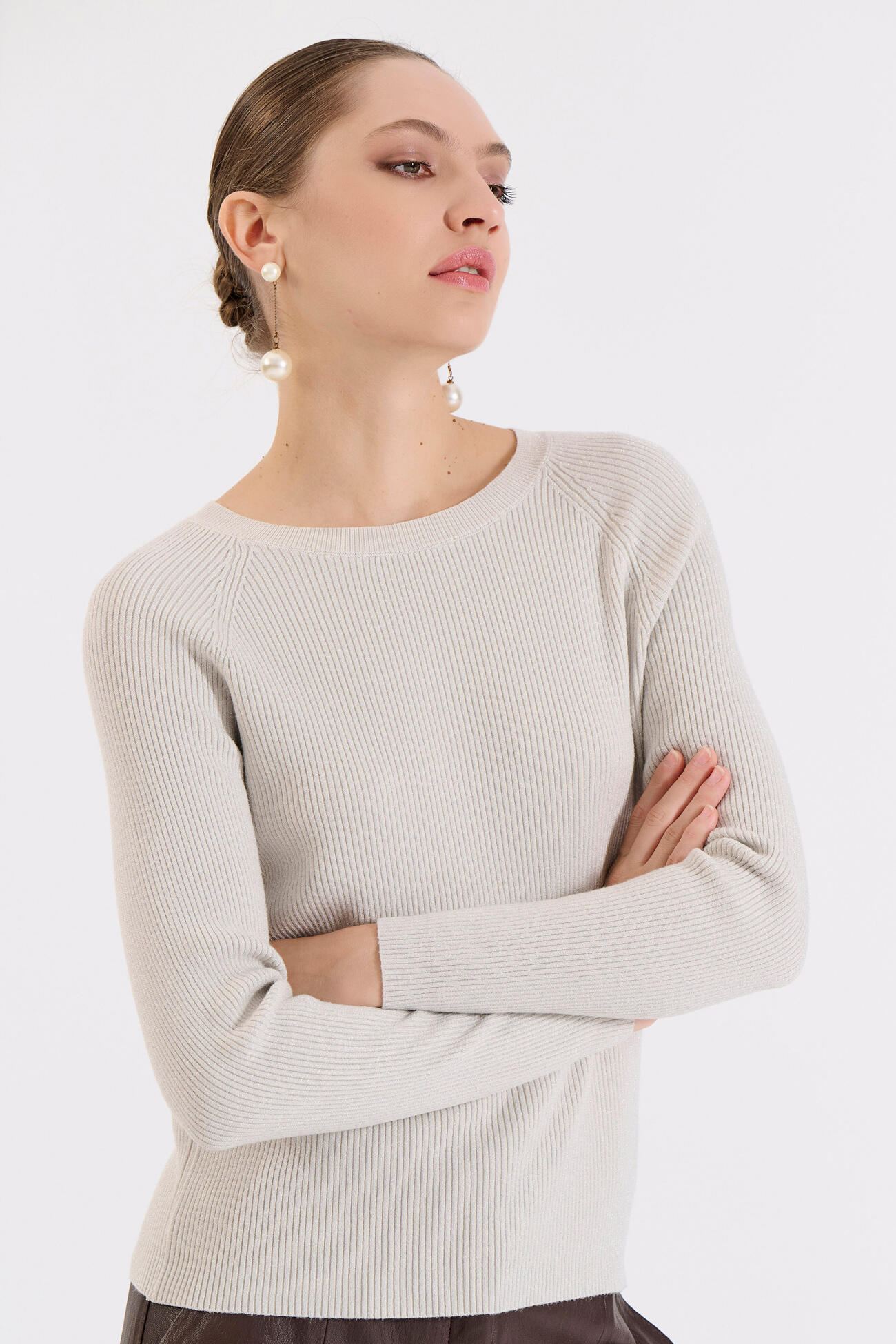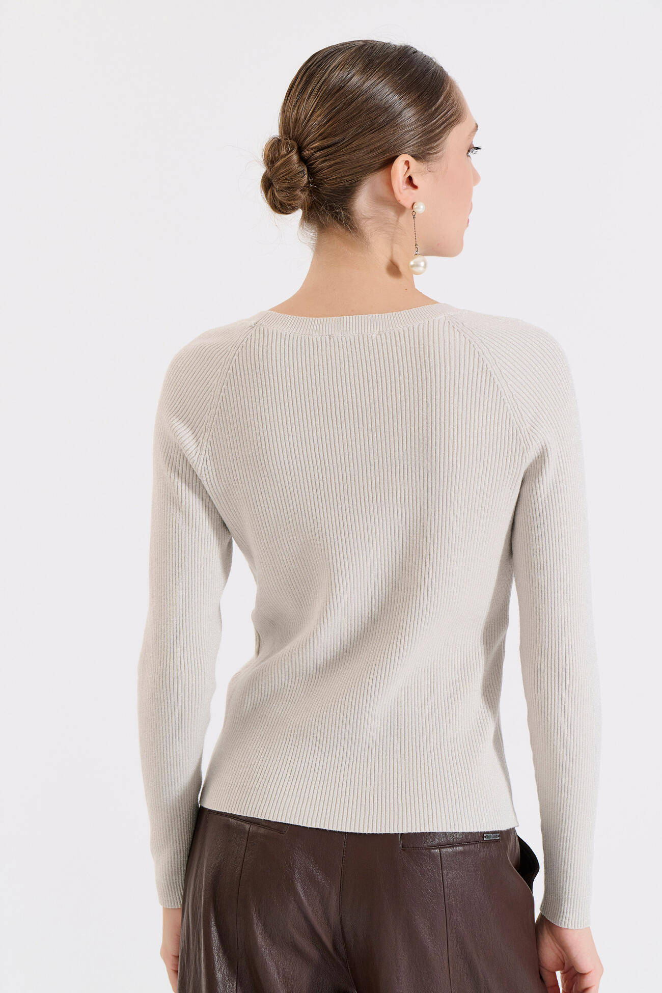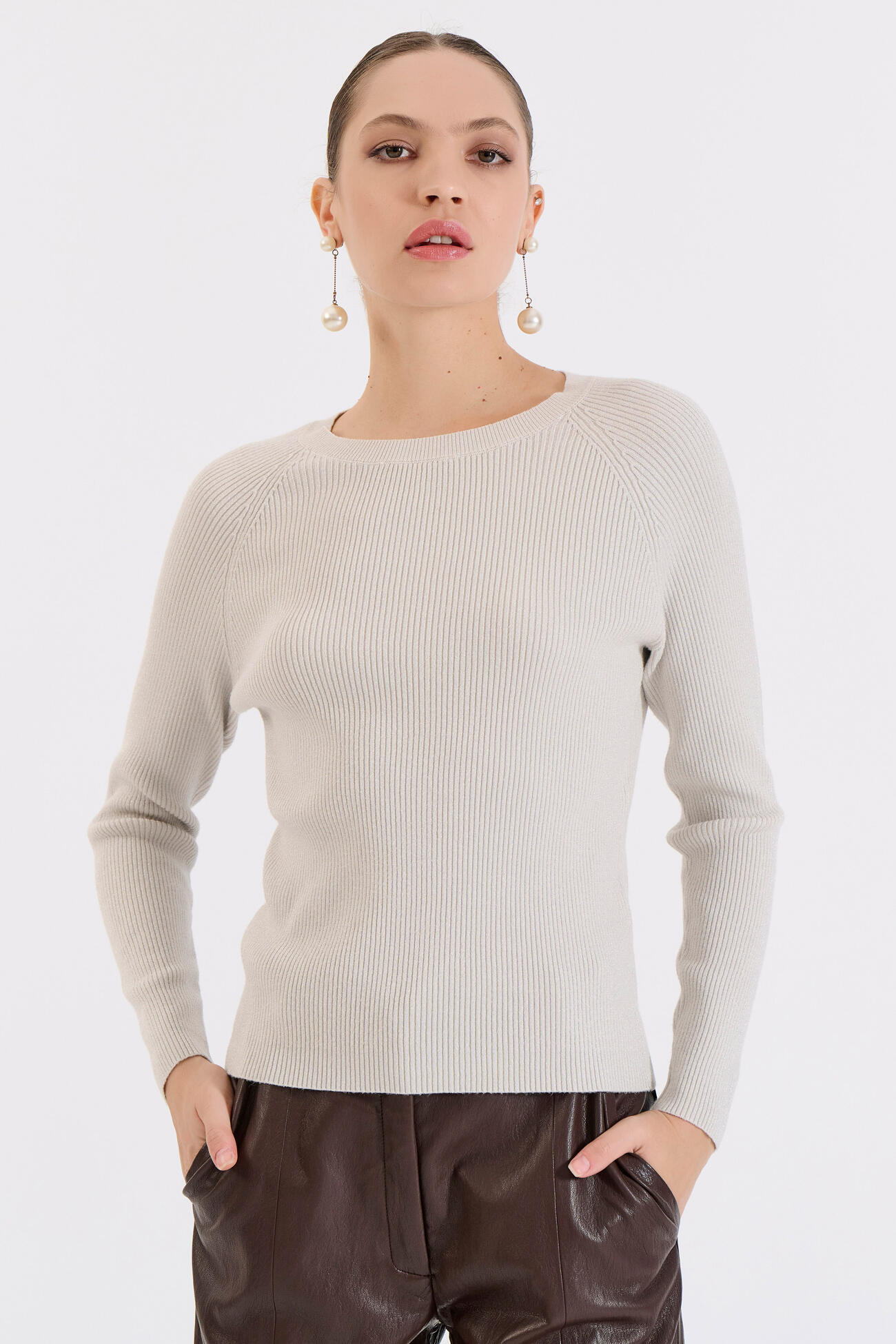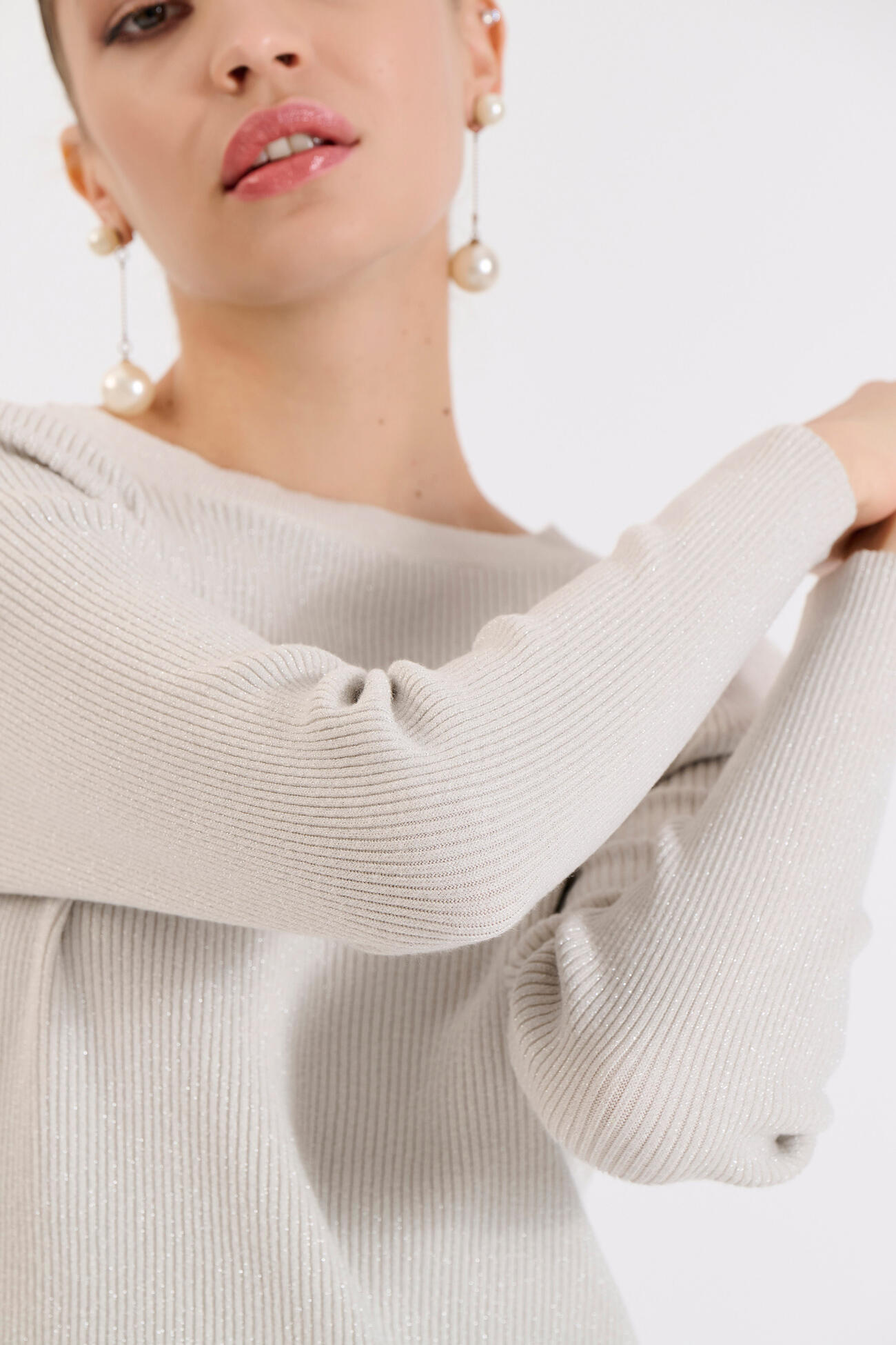 Κομψή πλεκτή μπλούζα με λούρεξ νήμα που προσθέτει διακριτική λάμψη. Διαθέτει στρογγυλή λαιμόκοψη και μακριά μανίκια. Ένα ευκολοφόρετο κομμάτι που φωτίζει κάθε καθημερινό look.