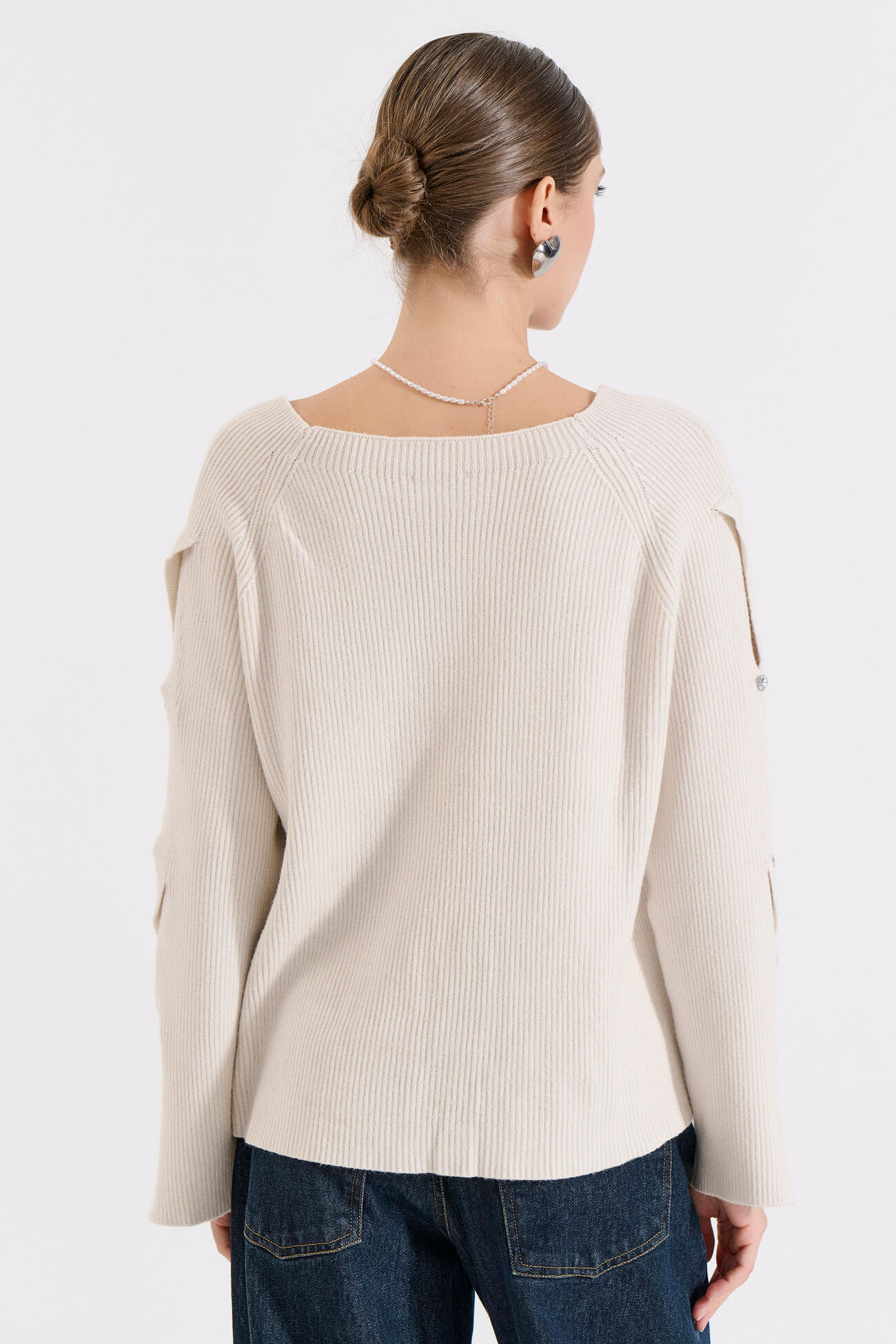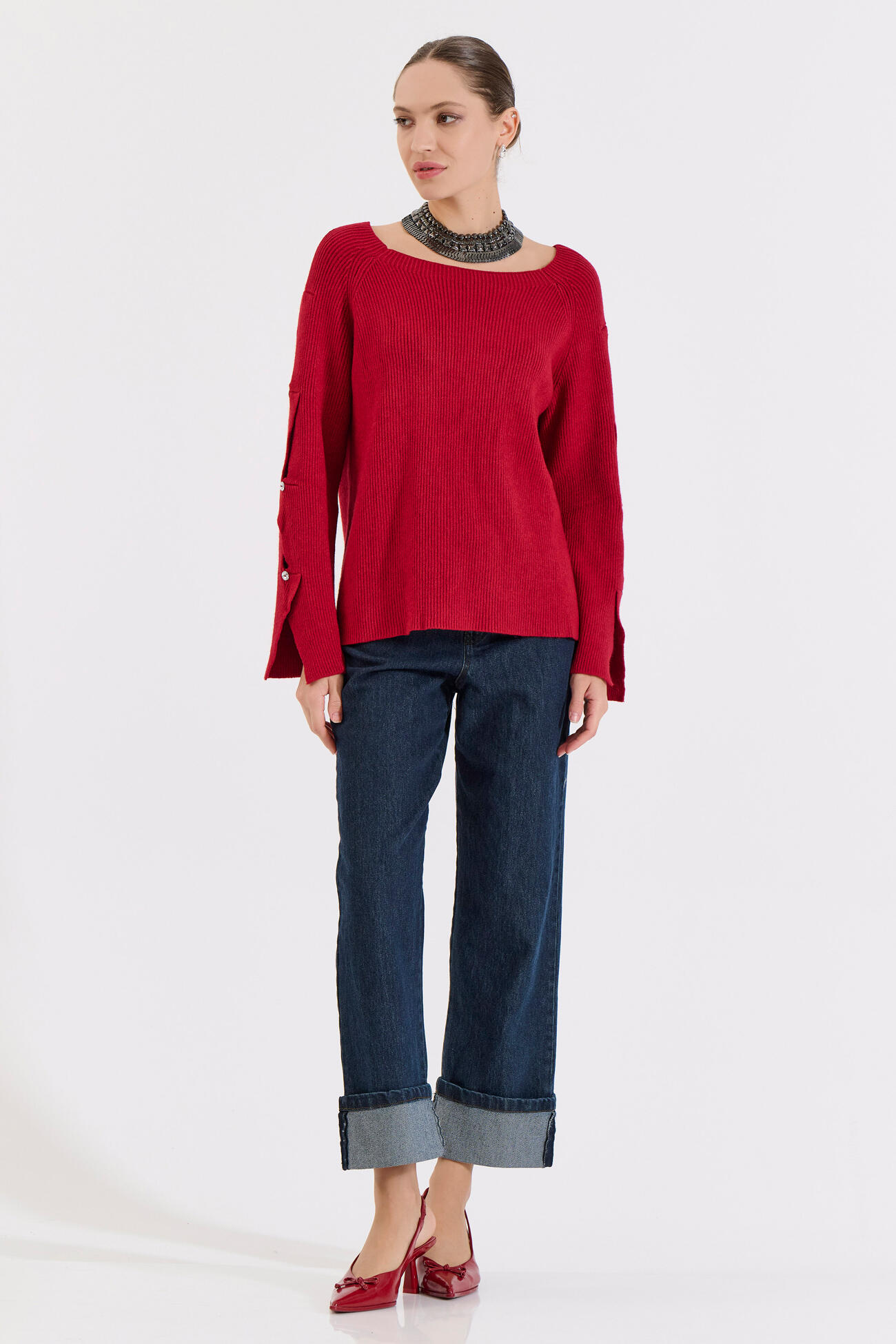 Πλεκτή Μπλούζα με Κουμπιά στα Μανίκια