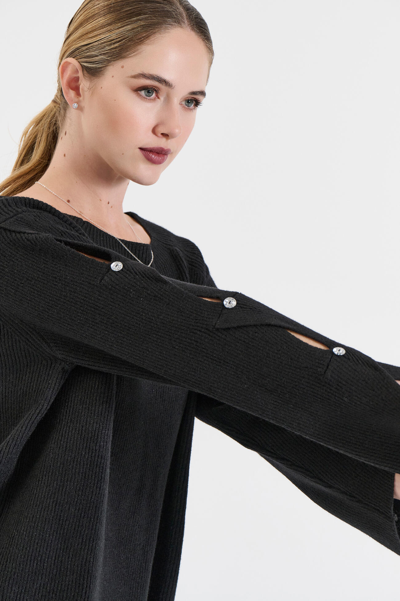 Πλεκτή Μπλούζα με Κουμπιά στα Μανίκια
