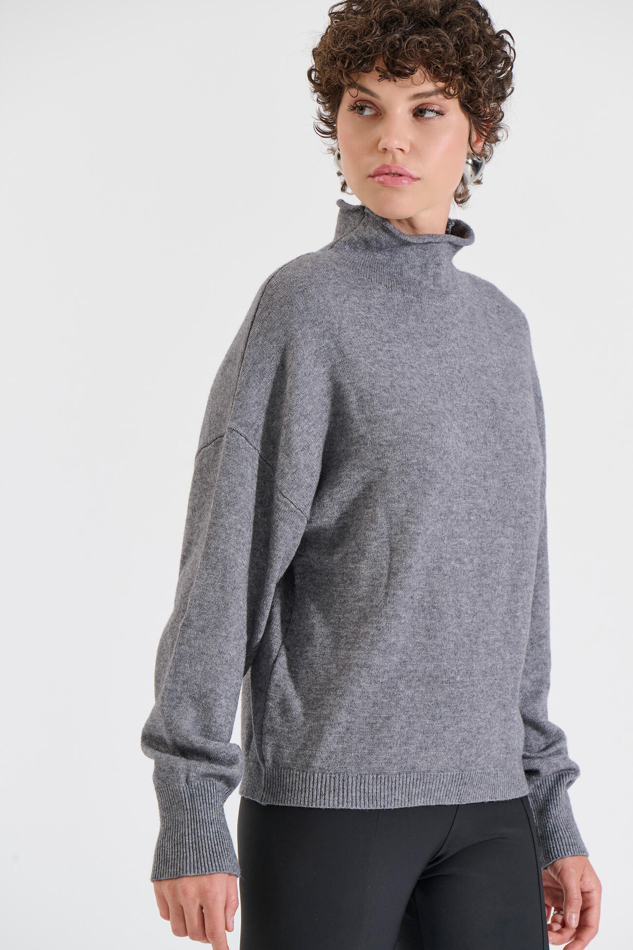 Minimal πλεκτή μπλούζα με όρθιο γιακά και χαλαρή εφαρμογή. Διαθέτει μακριά μανίκια και απαλή υφή που προσφέρει ζεστασιά και άνεση. Ένα διαχρονικό basic κομμάτι, ιδανικό για καθημερινές εμφανίσεις με κομψό, σύγχρονο χαρακτήρα.