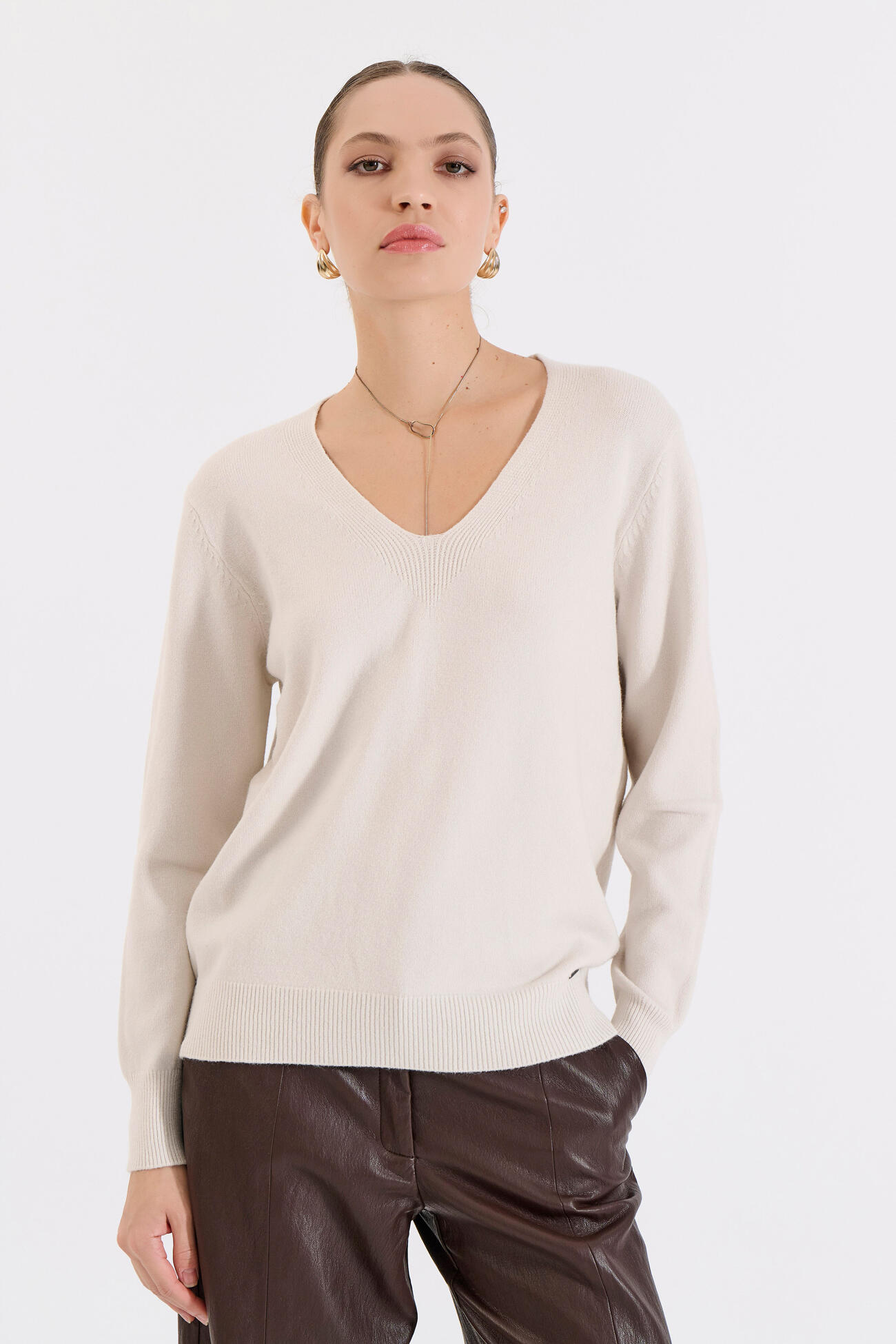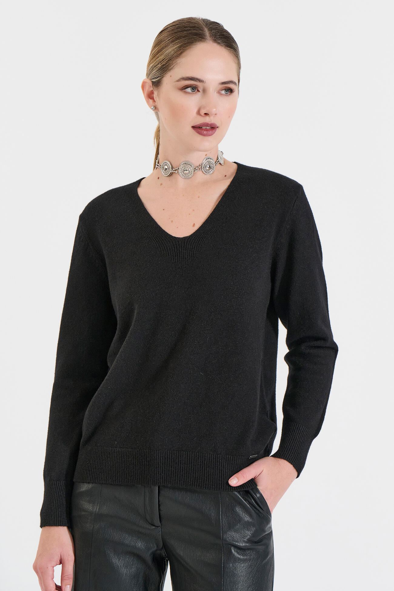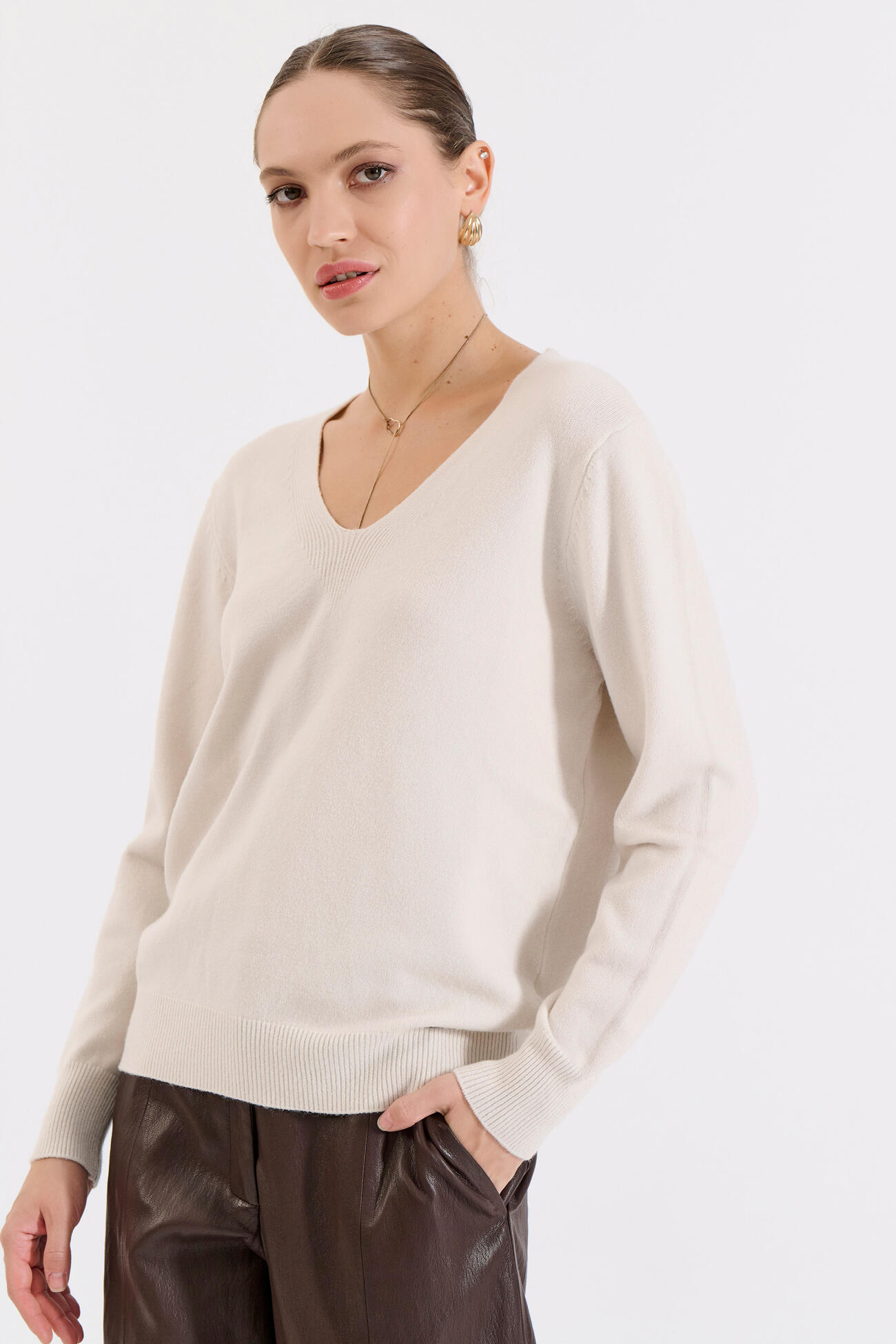 Κλασική πλεκτή μπλούζα με V ντεκολτέ και απαλή υφή. Διαθέτει μακριά μανίκια και ριπ τελείωμα για άνετη εφαρμογή και διαχρονικό στυλ. Ένα βασικό κομμάτι που συνδυάζεται εύκολα με παντελόνια ή φούστες για κομψές, καθημερινές εμφανίσεις.