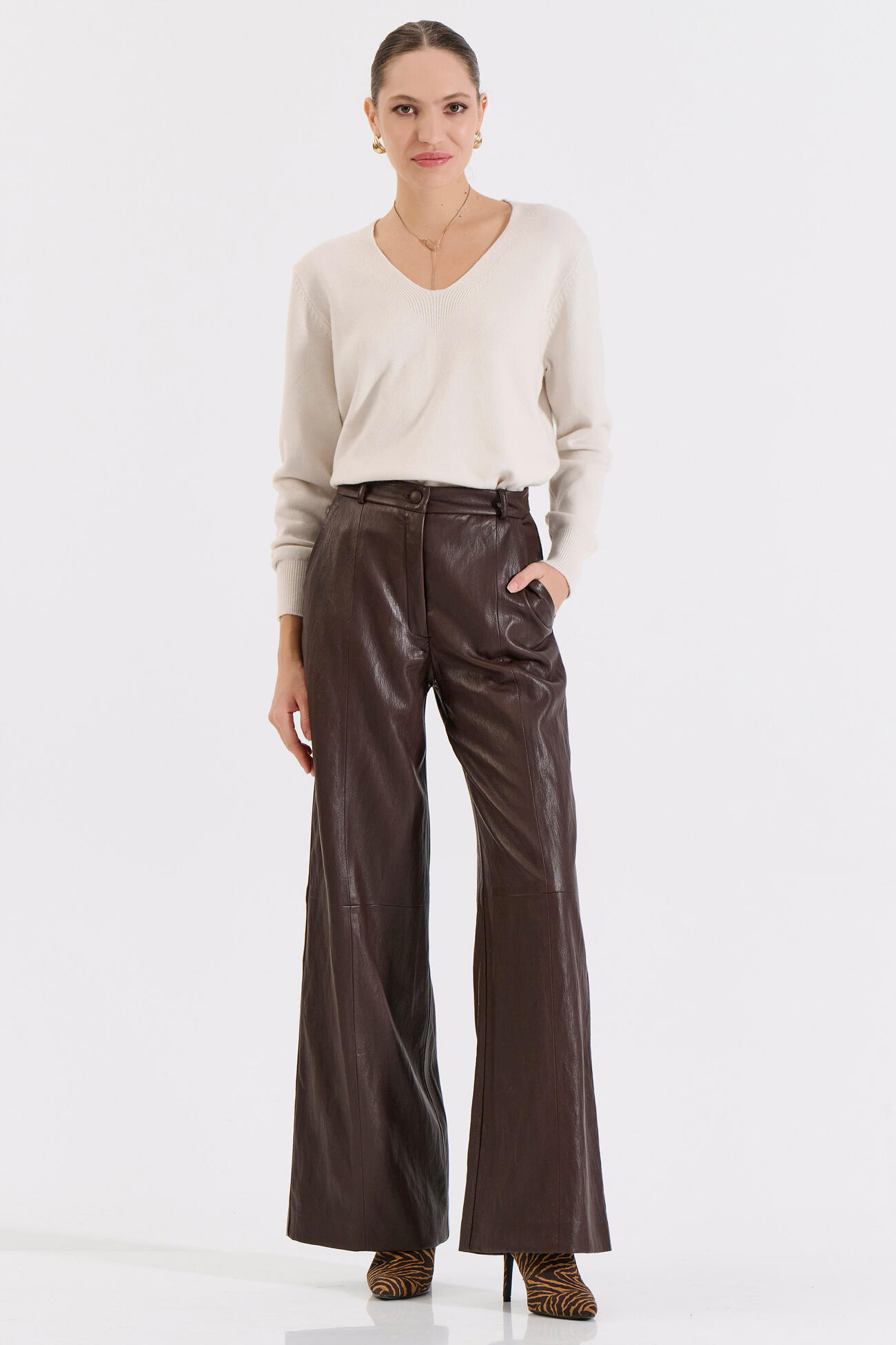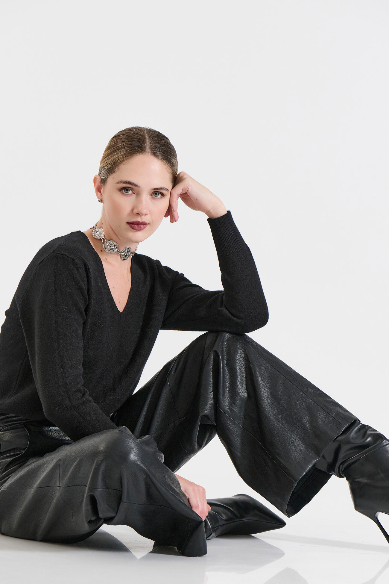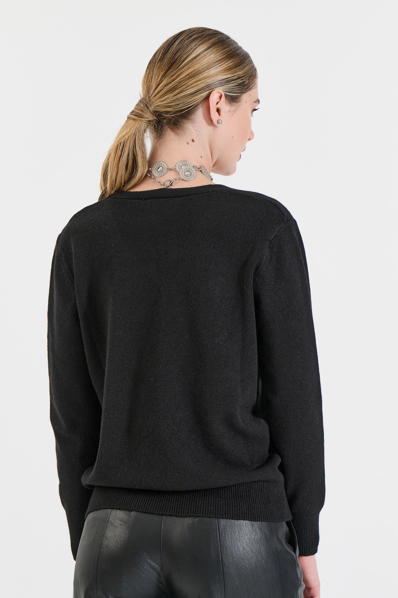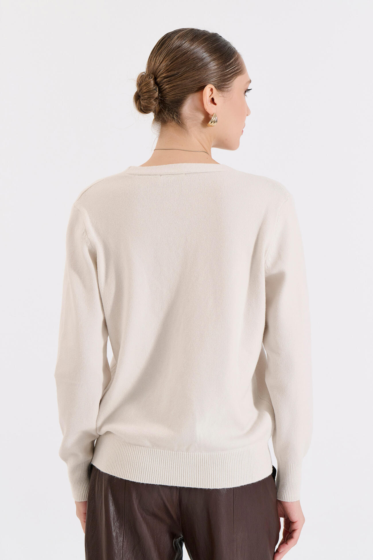 Κλασική πλεκτή μπλούζα με V ντεκολτέ και απαλή υφή. Διαθέτει μακριά μανίκια και ριπ τελείωμα για άνετη εφαρμογή και διαχρονικό στυλ. Ένα βασικό κομμάτι που συνδυάζεται εύκολα με παντελόνια ή φούστες για κομψές, καθημερινές εμφανίσεις.