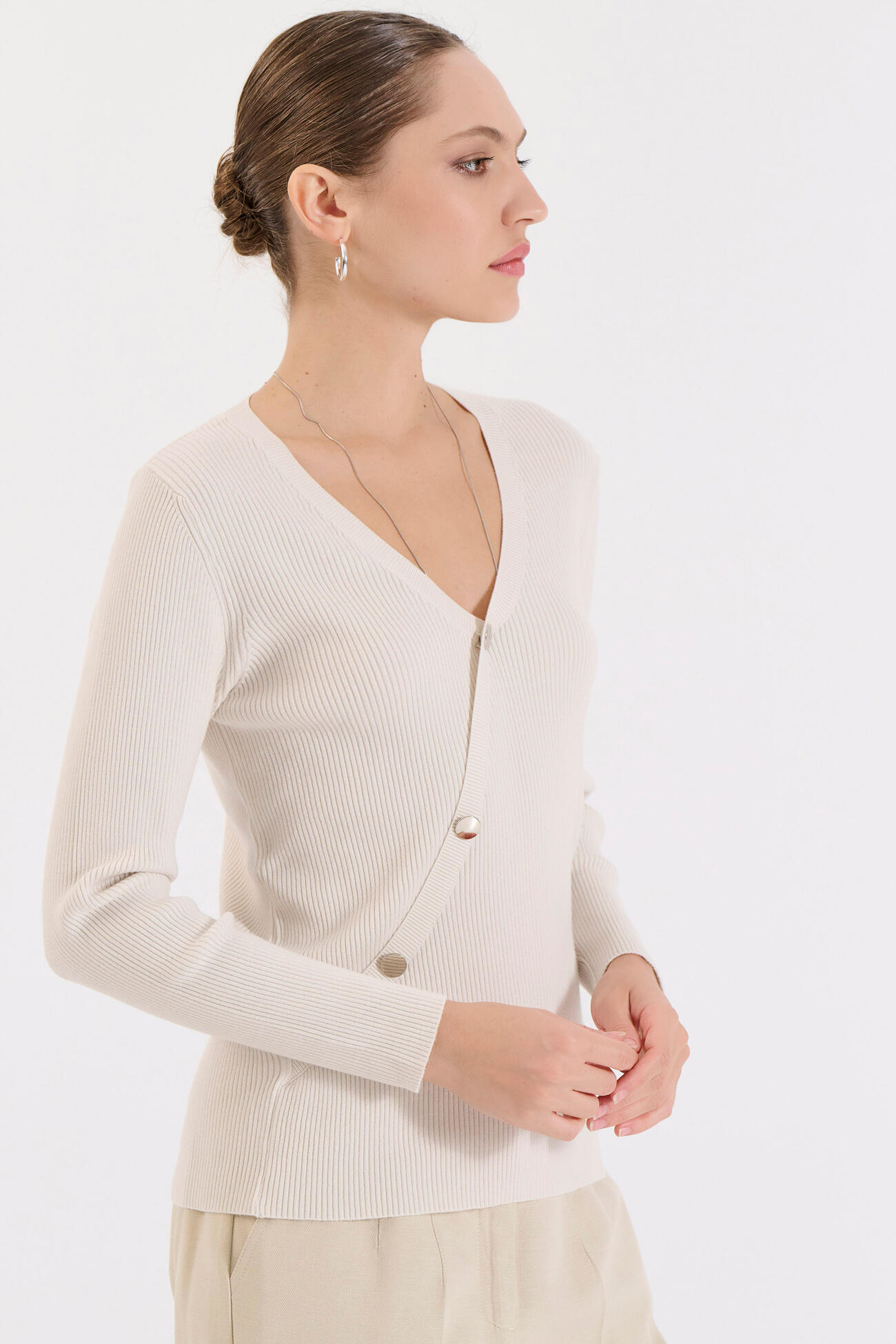 Πλεκτή V Μπλούζα με Διακοσμητικά Κουμπιά