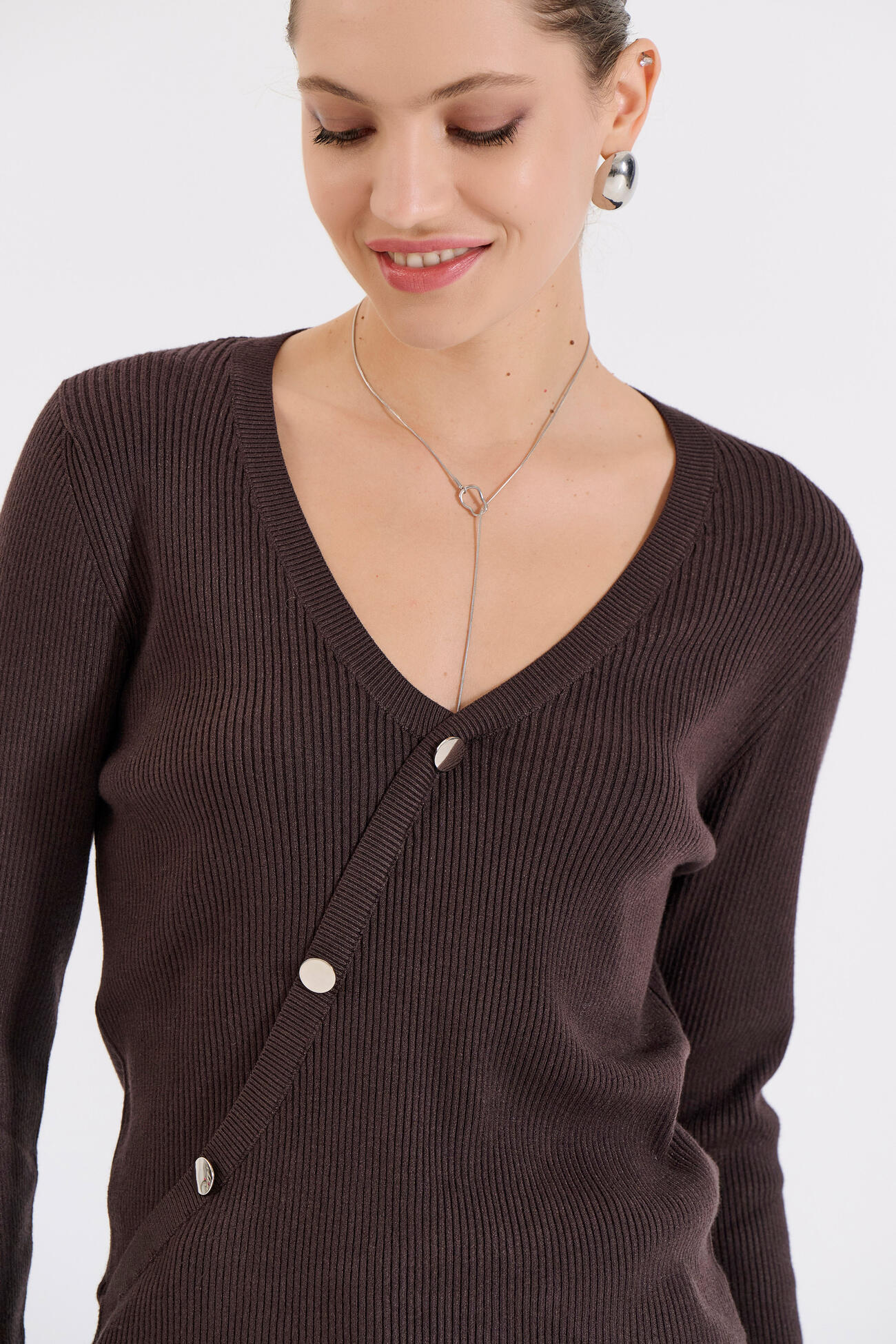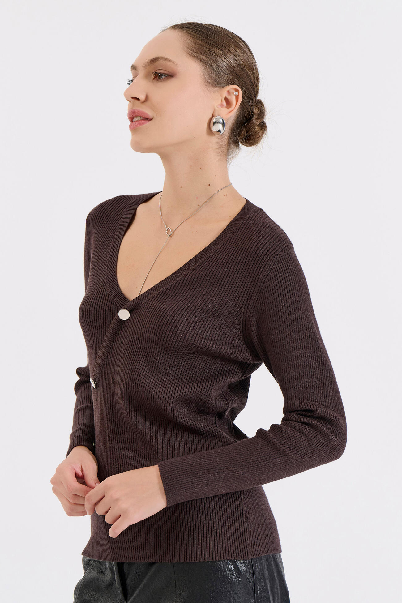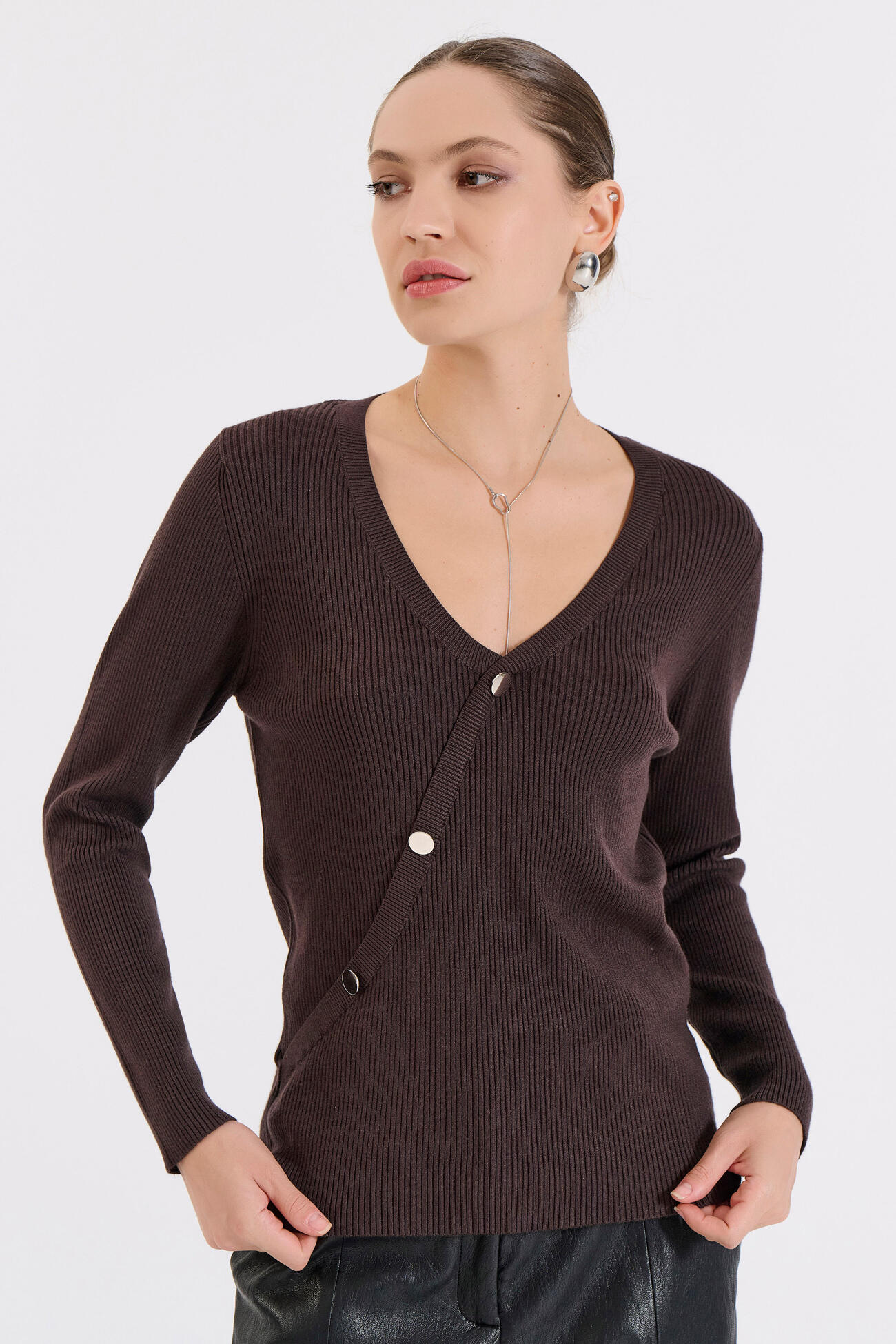 Πλεκτή V Μπλούζα με Διακοσμητικά Κουμπιά