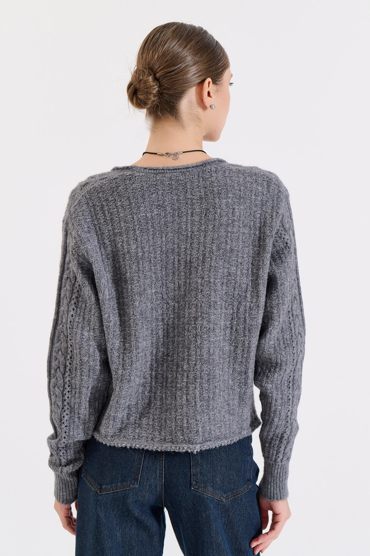 Κομψή πλεκτή ζακέτα με ανάγλυφη πλέξη και βαθύ V ντεκολτέ. Διαθέτει λεπτό δέσιμο μπροστά και μαλακή υφή που χαρίζει άνεση και θηλυκότητα. Ένα μοντέρνο και ευκολοφόρετο κομμάτι, ιδανικό για cozy εμφανίσεις με στυλ.