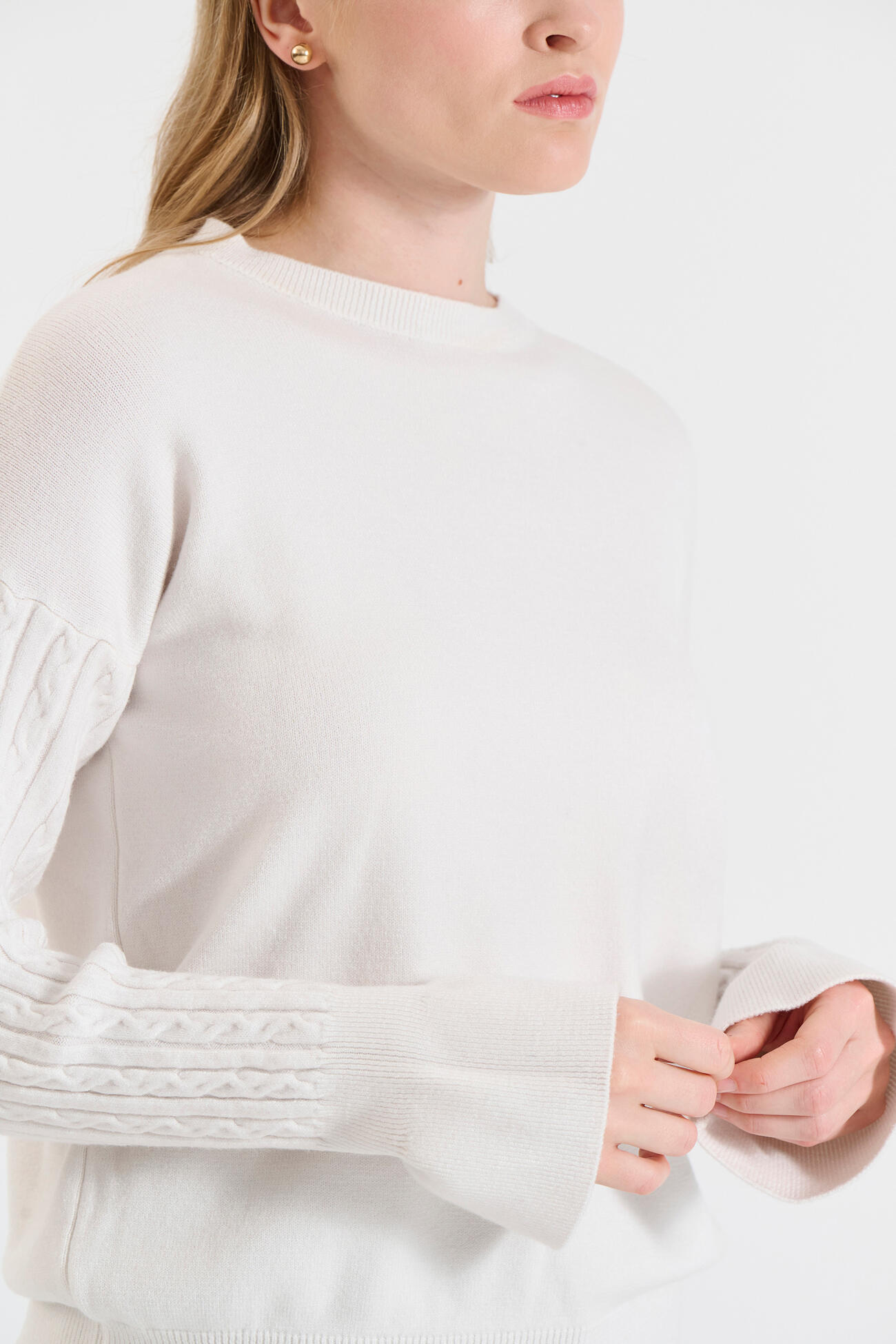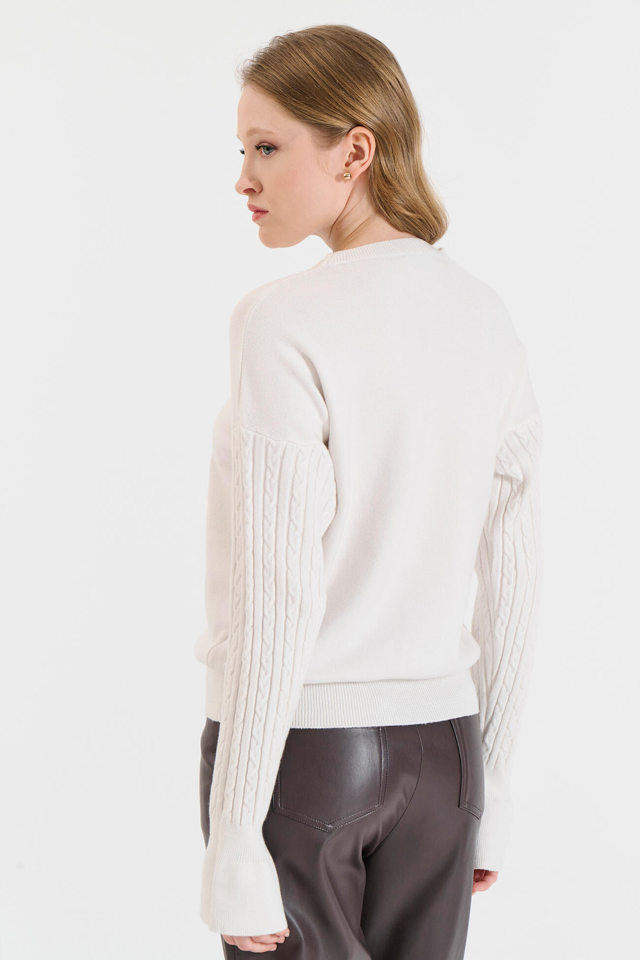 Πλεκτό Πουλόβερ με Πλέξη Πλεξούδας στα Μανίκια