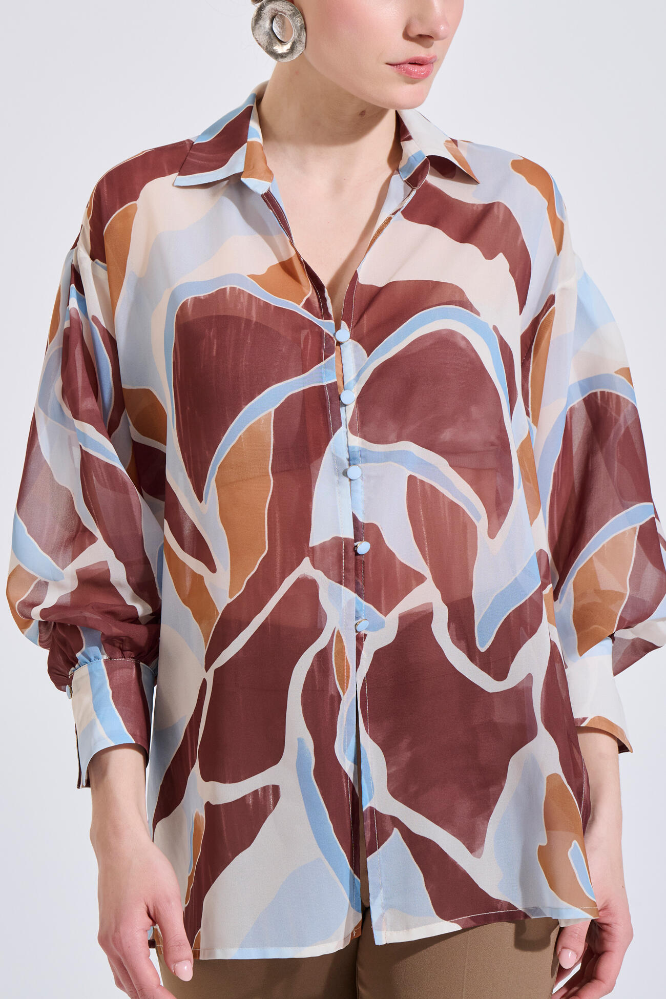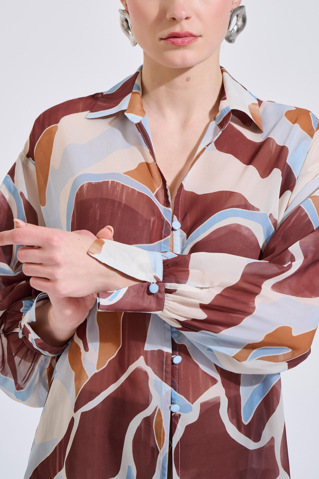 Πουκάμισο σε άνετη γραμμή με all-over εμπριμέ σχέδιο. Διαθέτει κλασικό γιακά, κουμπιά μπροστά και μακριά μανίκια που καταλήγουν σε μανσέτα.