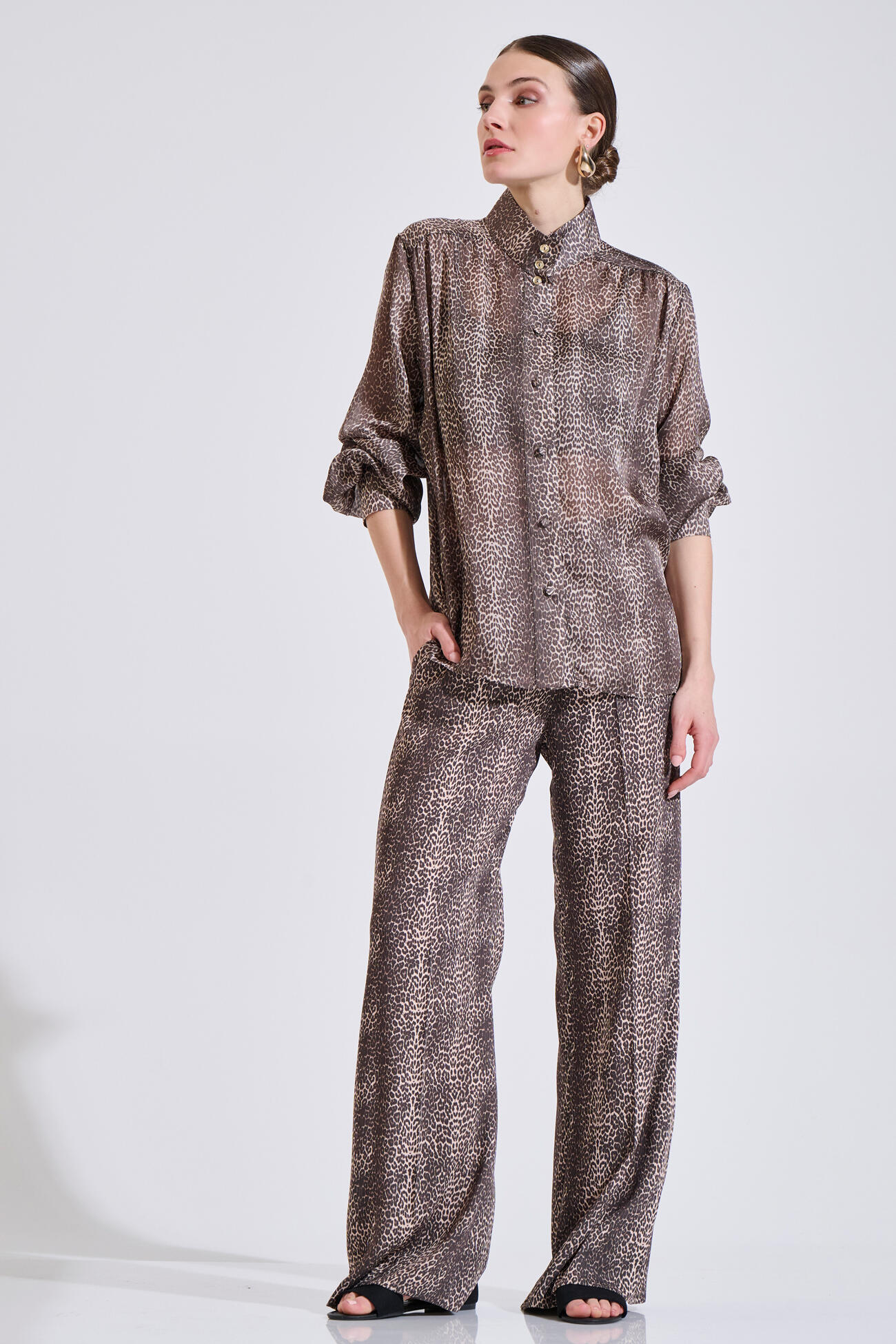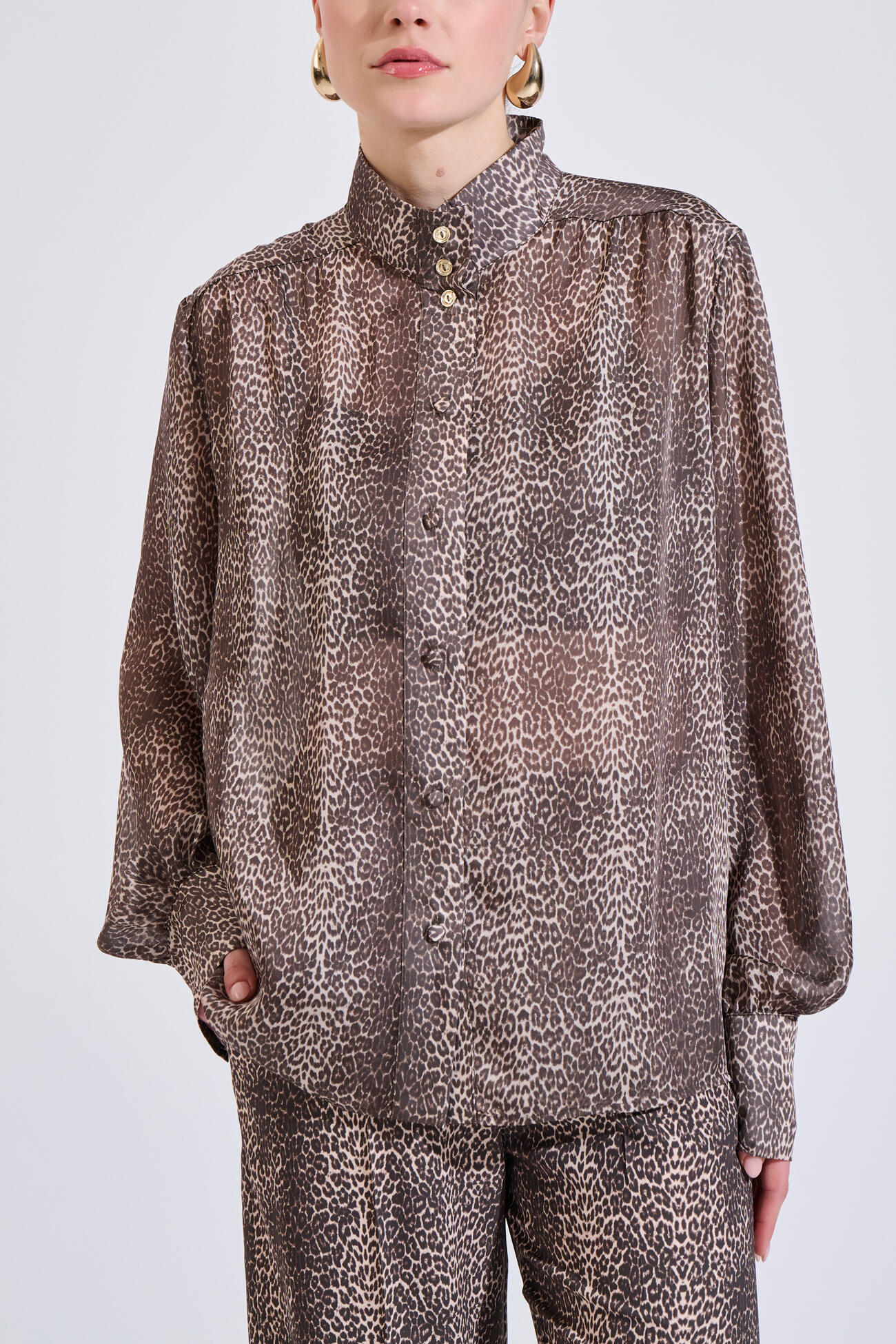 Λεοπάρ πουκάμισο με όρθιο γιακά και μεταλλικά κουμπιά