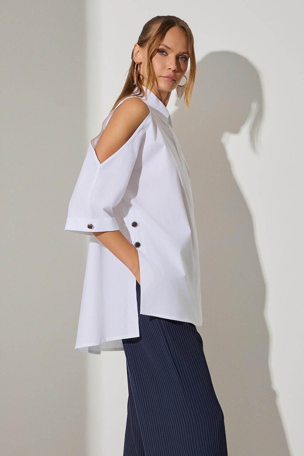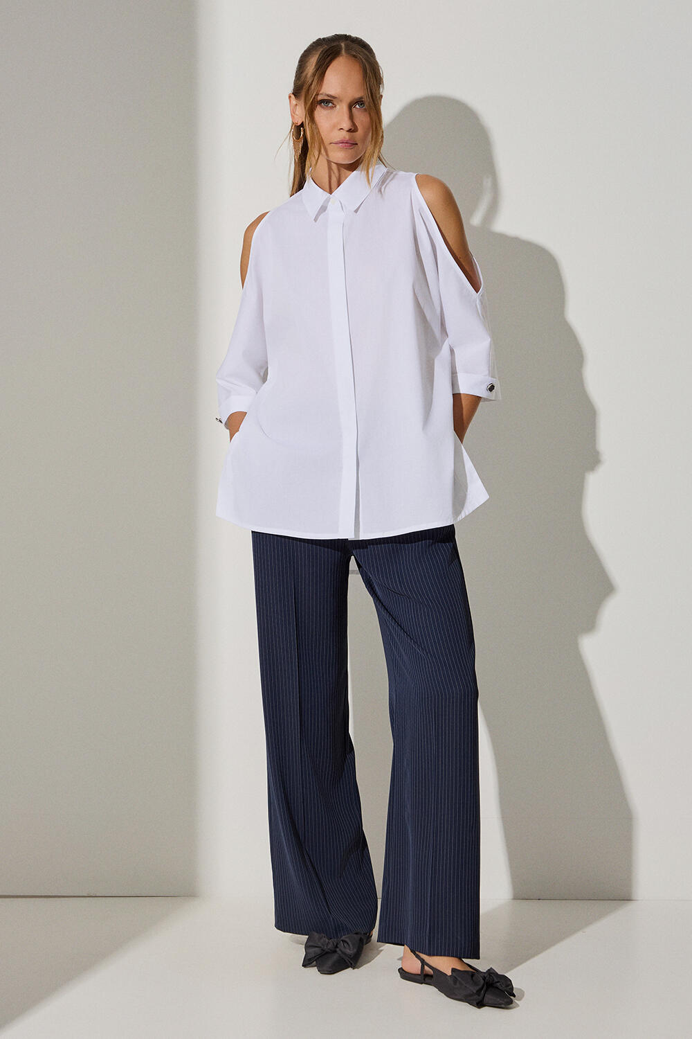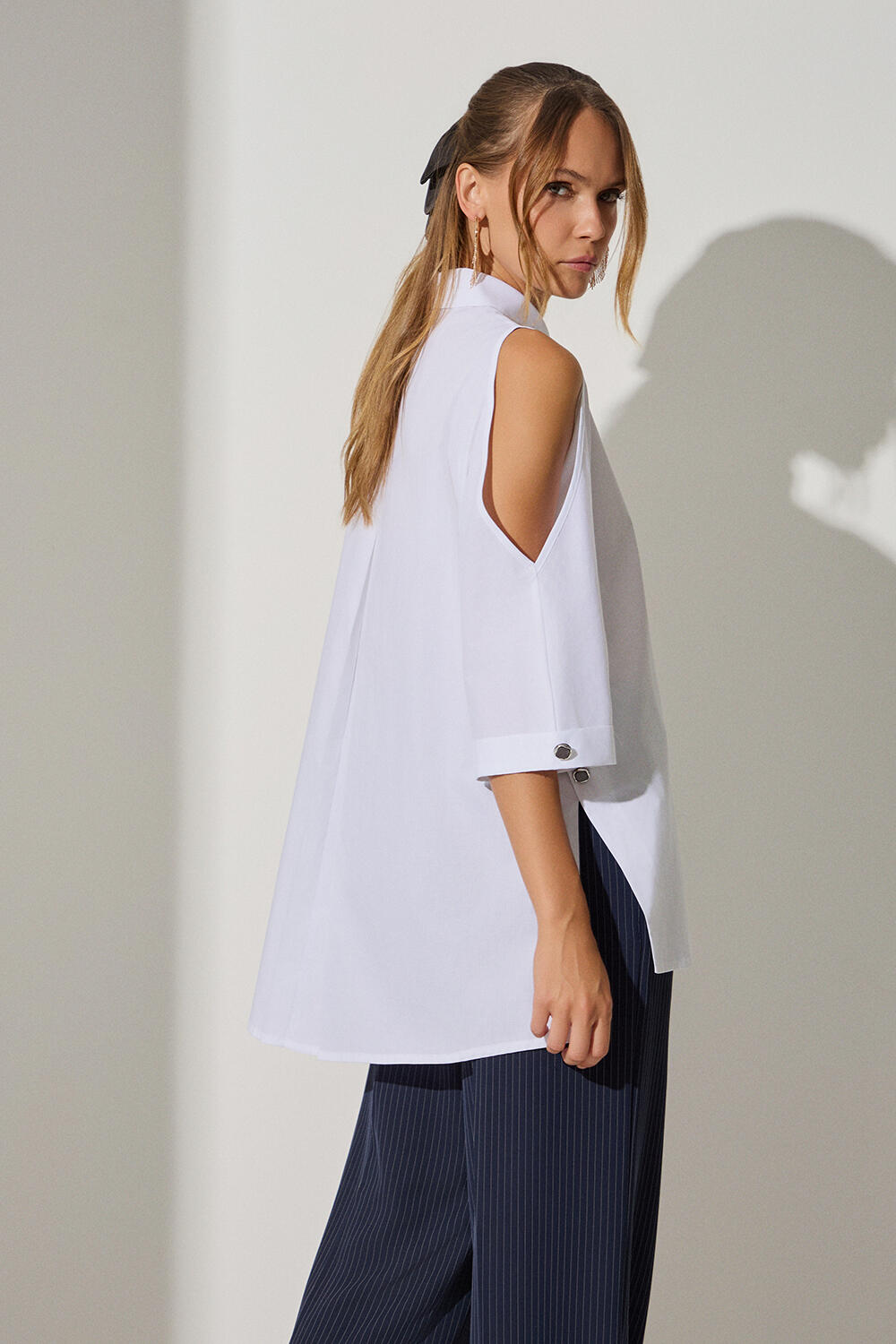 Βαμβακερό πουκάμισο σε άνετη γραμμή.Διαθέτει ανοίγματα στους ώμους και κουμπιά κόσμημα.Επιλέξτε το για στιλάτες αλλά και casual εμφανίσεις.