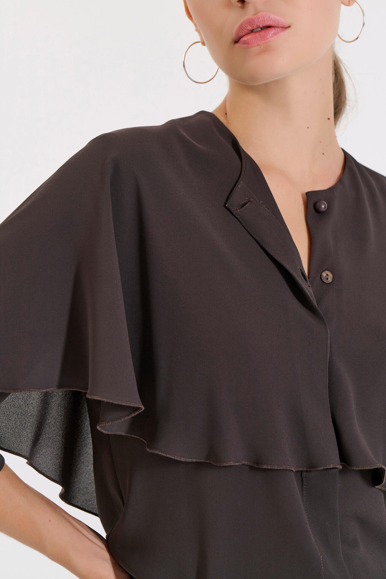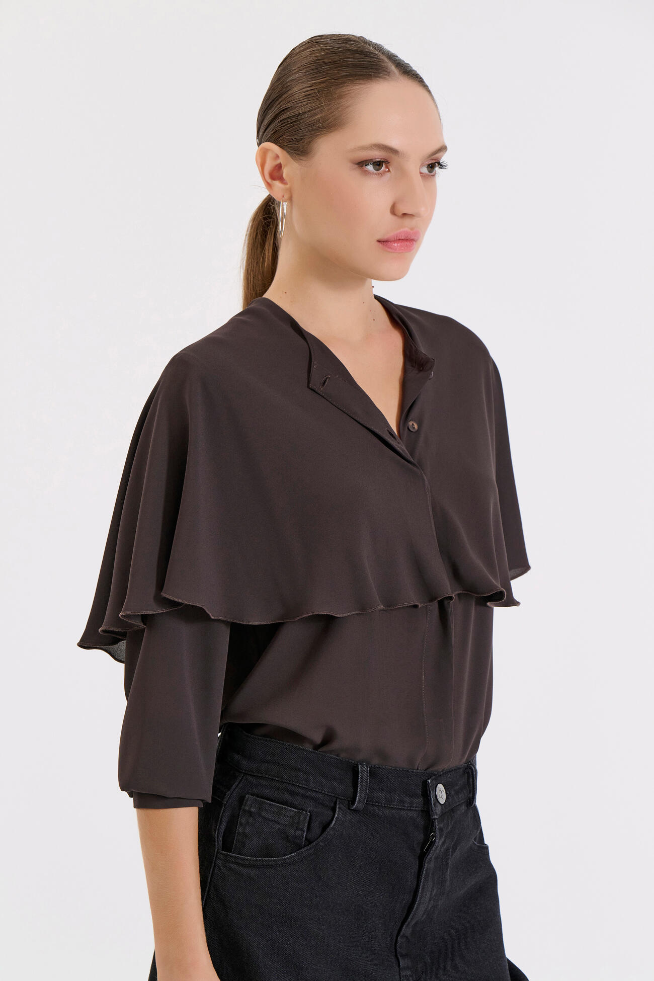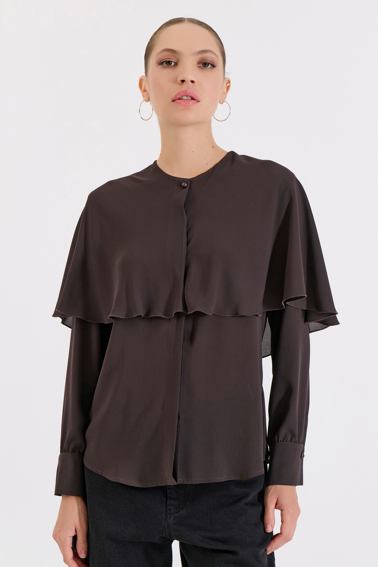 Κομψό πουκάμισο σε ίσια γραμμή, με εντυπωσιακό μεγάλο γιακά που προσθέτει μοντέρνο και elegant χαρακτήρα. Διαθέτει κουμπιά σε όλο το μπροστινό μέρος και μακριά μανίκια με μανσέτες για προσεγμένη εφαρμογή. Ένα διαχρονικό κομμάτι που ταιριάζει τόσο σε καθημερινές όσο και σε πιο επίσημες εμφανίσεις.