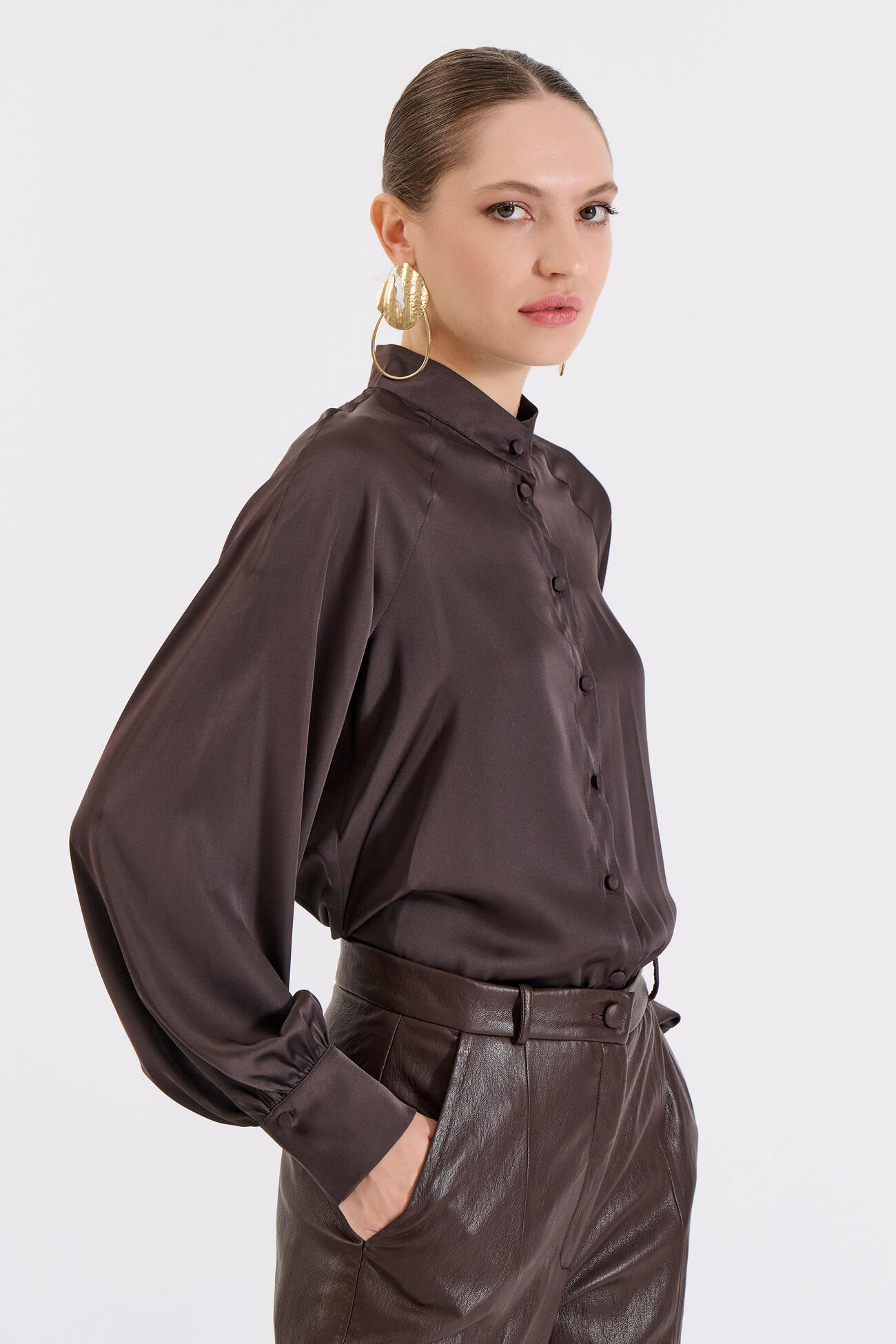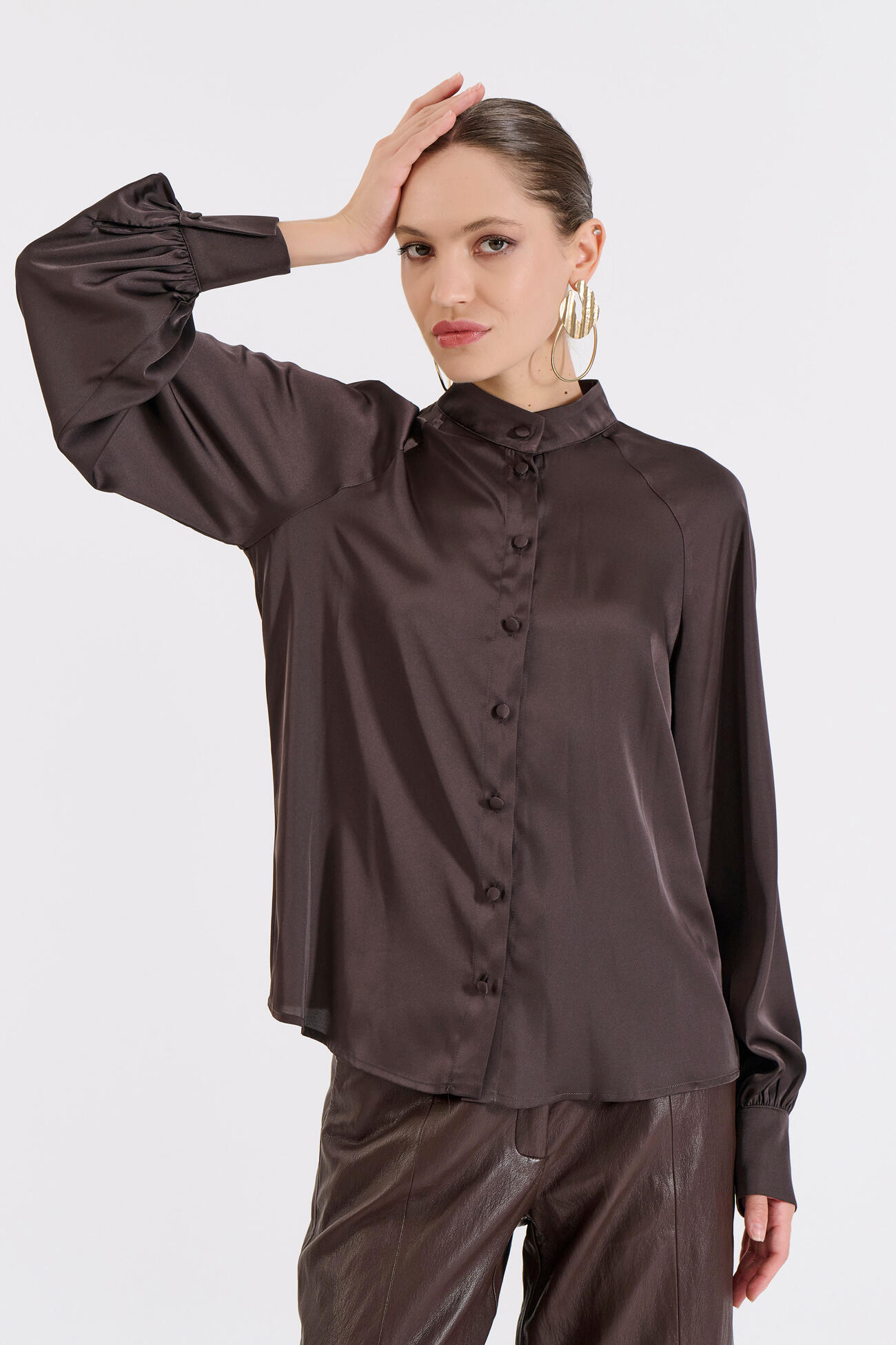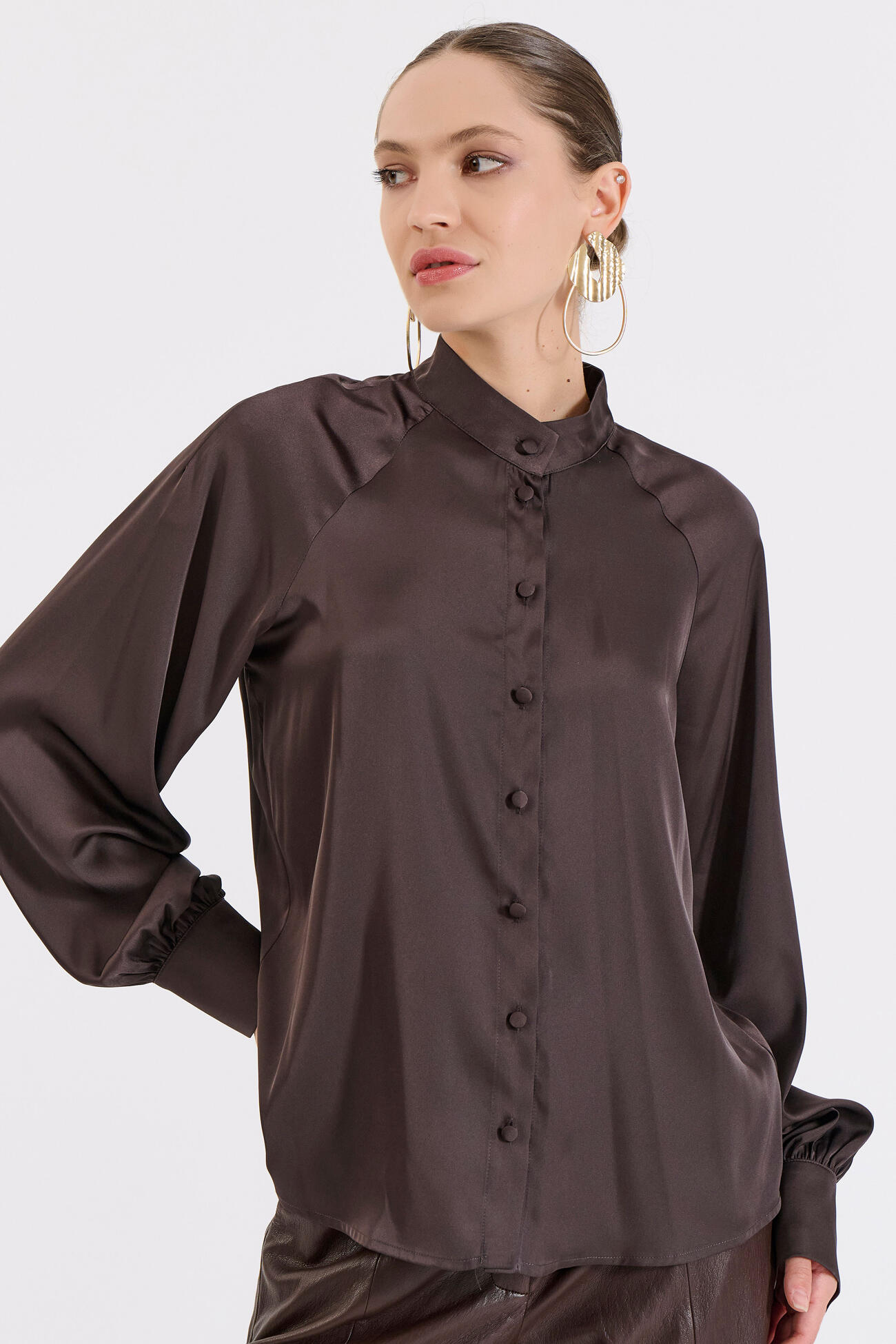 Σατέν Πουκάμισο με Όρθιο Γιακά