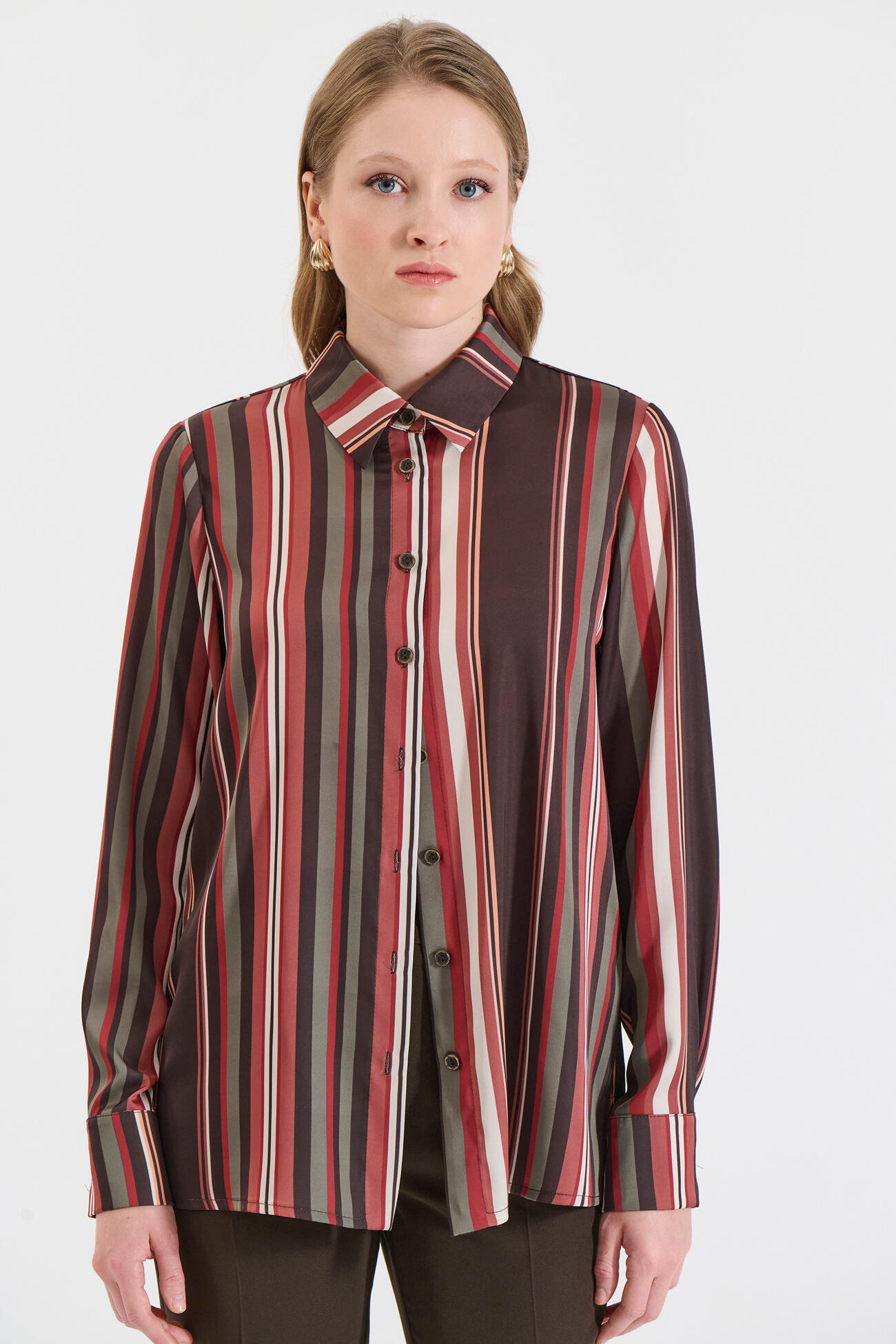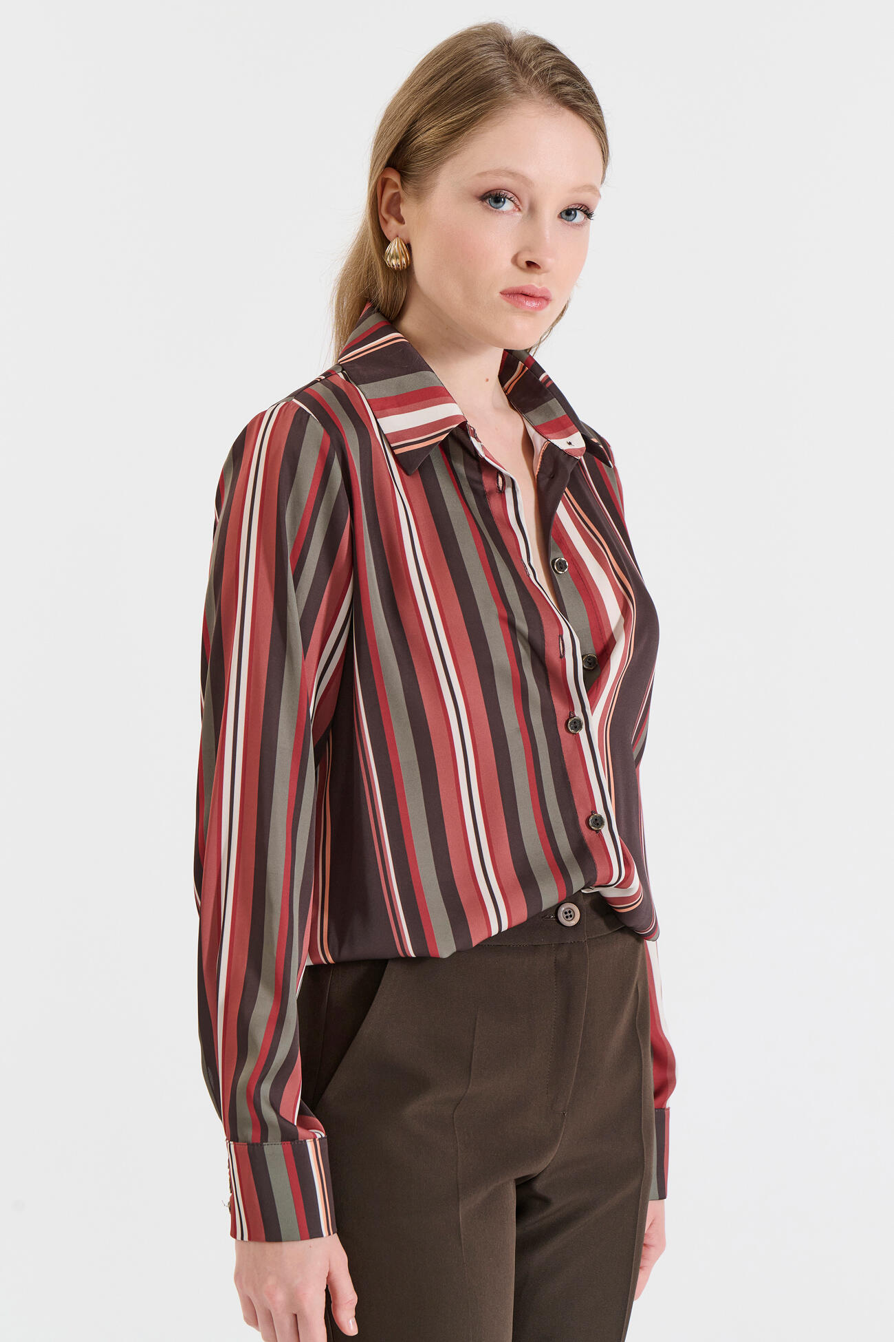 Σατέν Πουκάμισο με Ριγέ Μοτίβο