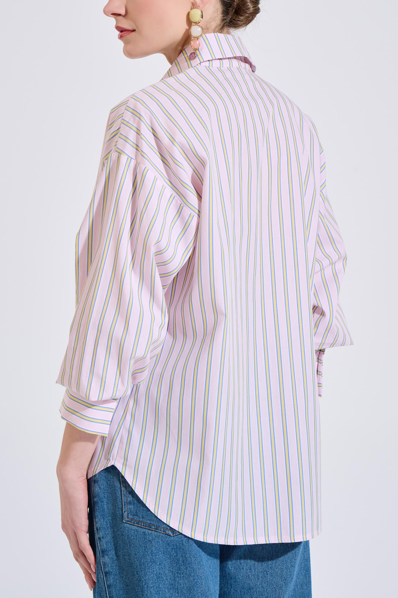 Βαμβακερό ριγέ πουκάμισο με κλασικό γιακά και κλείσιμο με κουμπιά. Διαθέτει μακρύ μανίκι με μανσέτα και ελαφρώς στρογγυλεμένο τελείωμα.