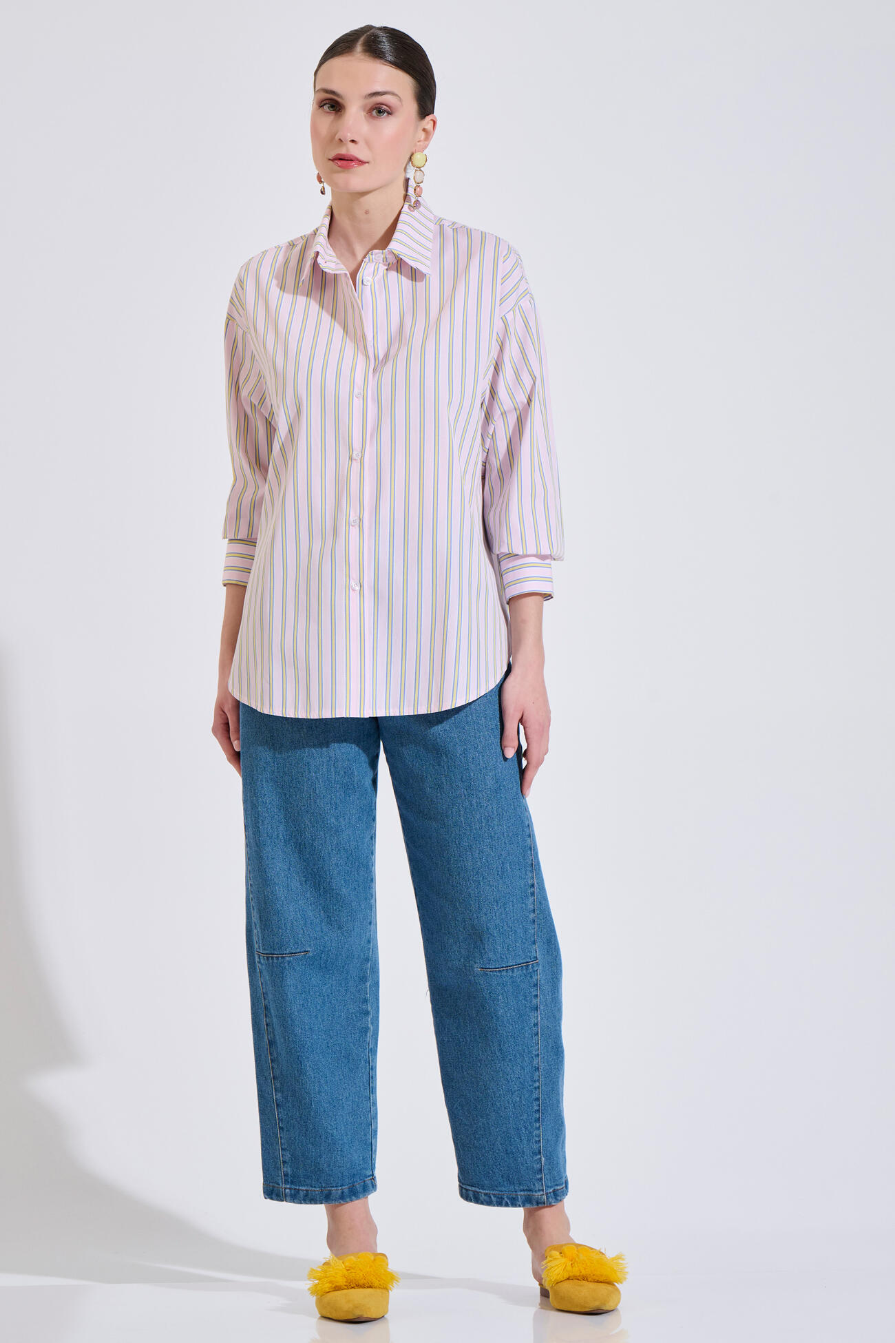 Βαμβακερό ριγέ πουκάμισο σε άνετη γραμμή
