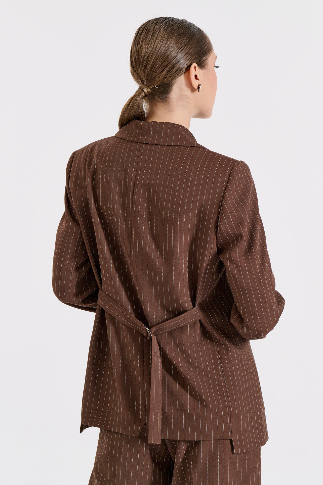 Σακάκι με Ρίγες και Ζώνη στο Πίσω Μέρος