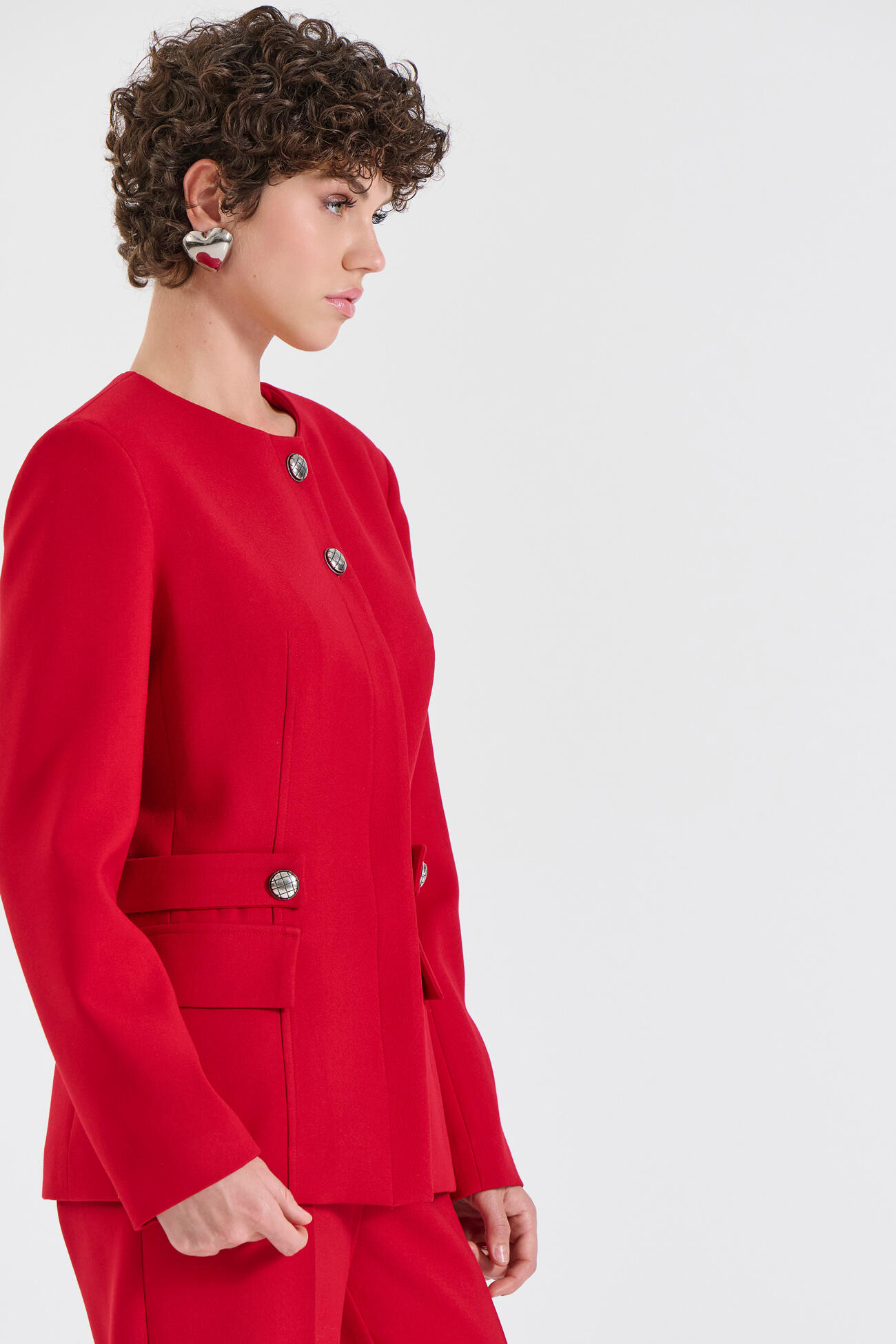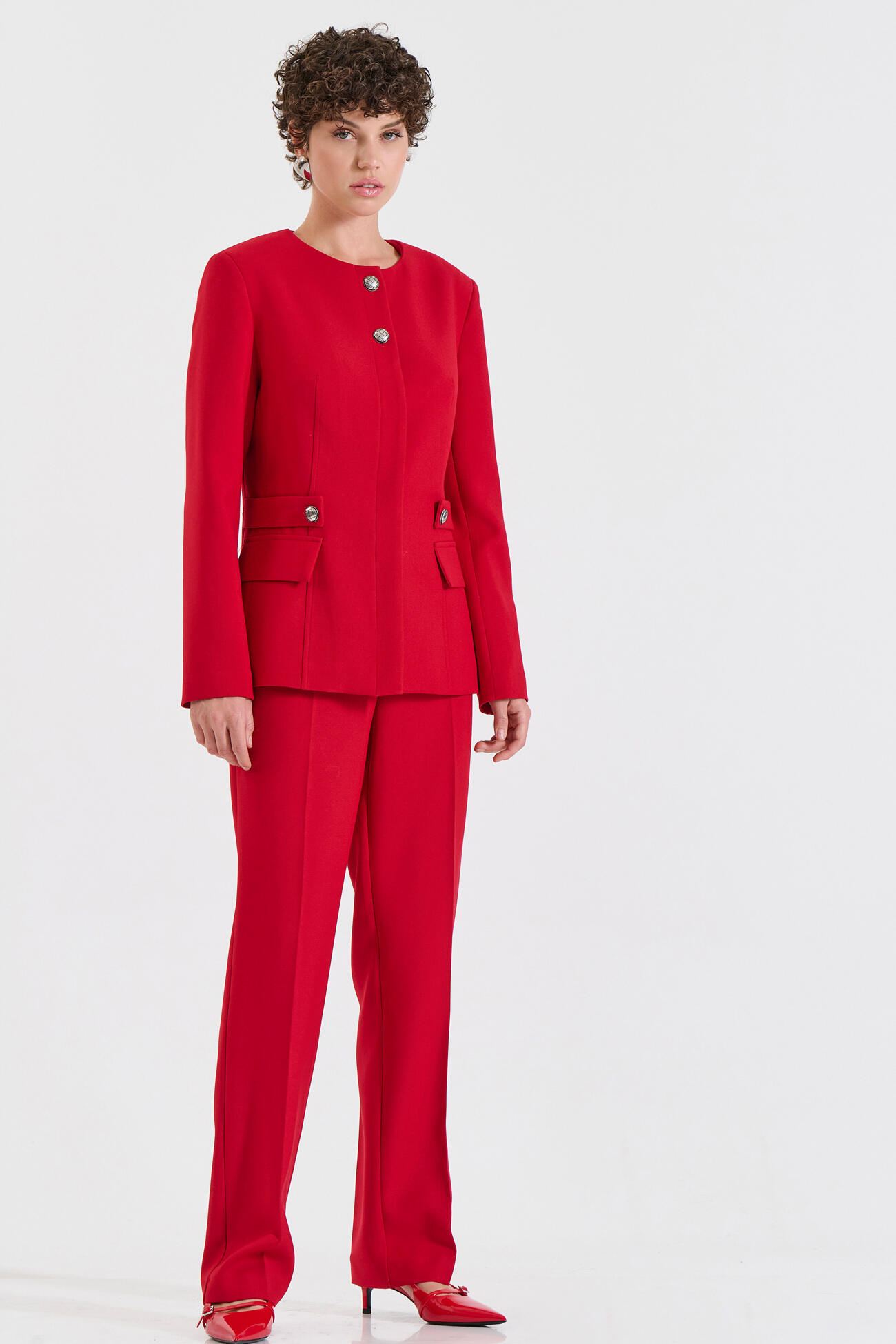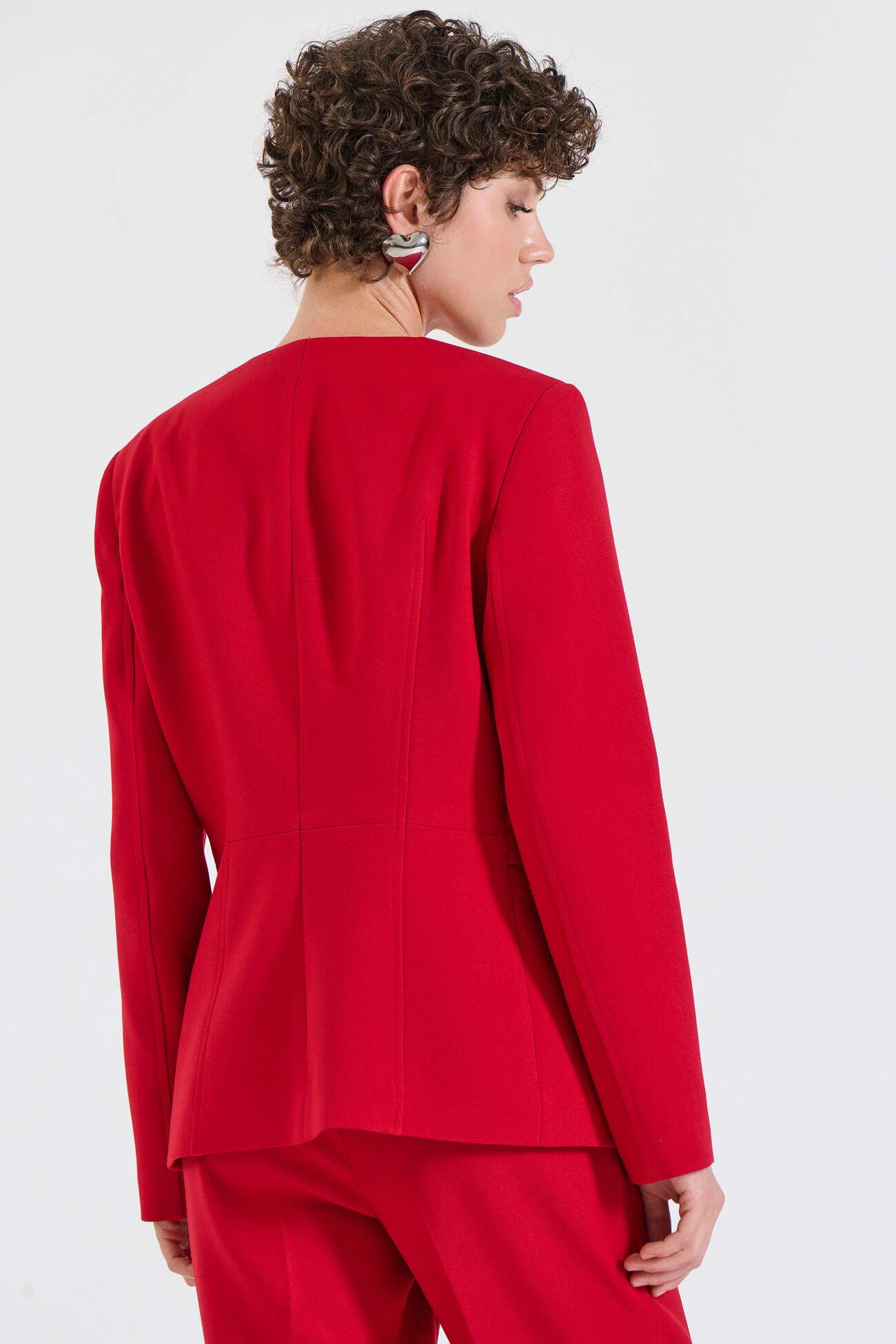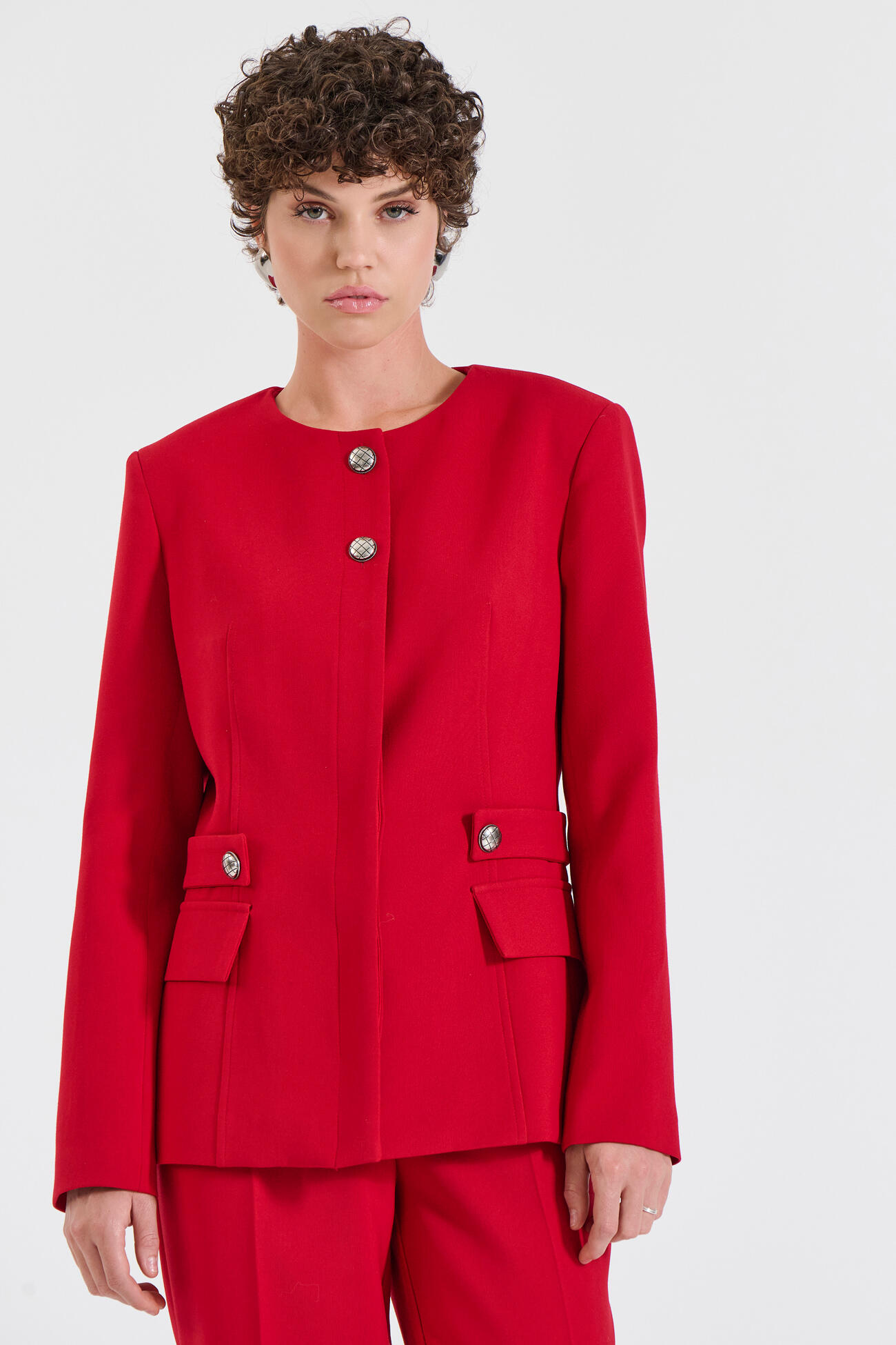 Κομψό σακάκι με στρογγυλή λαιμόκοψη και κρυφό μπροστινό κούμπωμα για μια καθαρή, minimal αισθητική.Ένα elegant κομμάτι που συνδυάζεται ιδανικά με το αντίστοιχο παντελόνι 10-031054-0 και την ζυπ 10-031050-0 της συλλογής για ένα ολοκληρωμένο, σύγχρονο look.