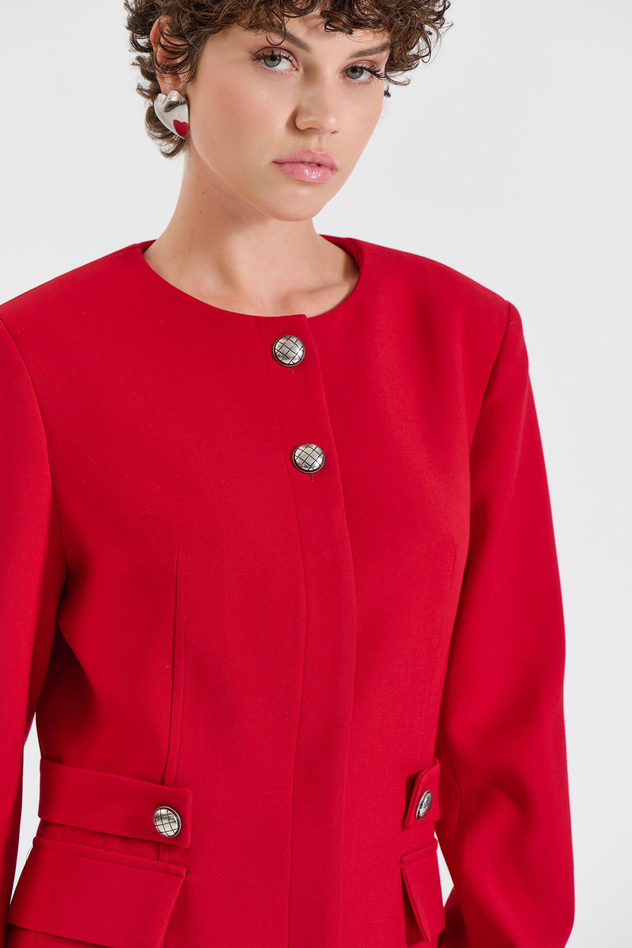 Σακάκι με Στρογγυλή Λαιμόκοψη & Κρυφό Κούμπωμα
