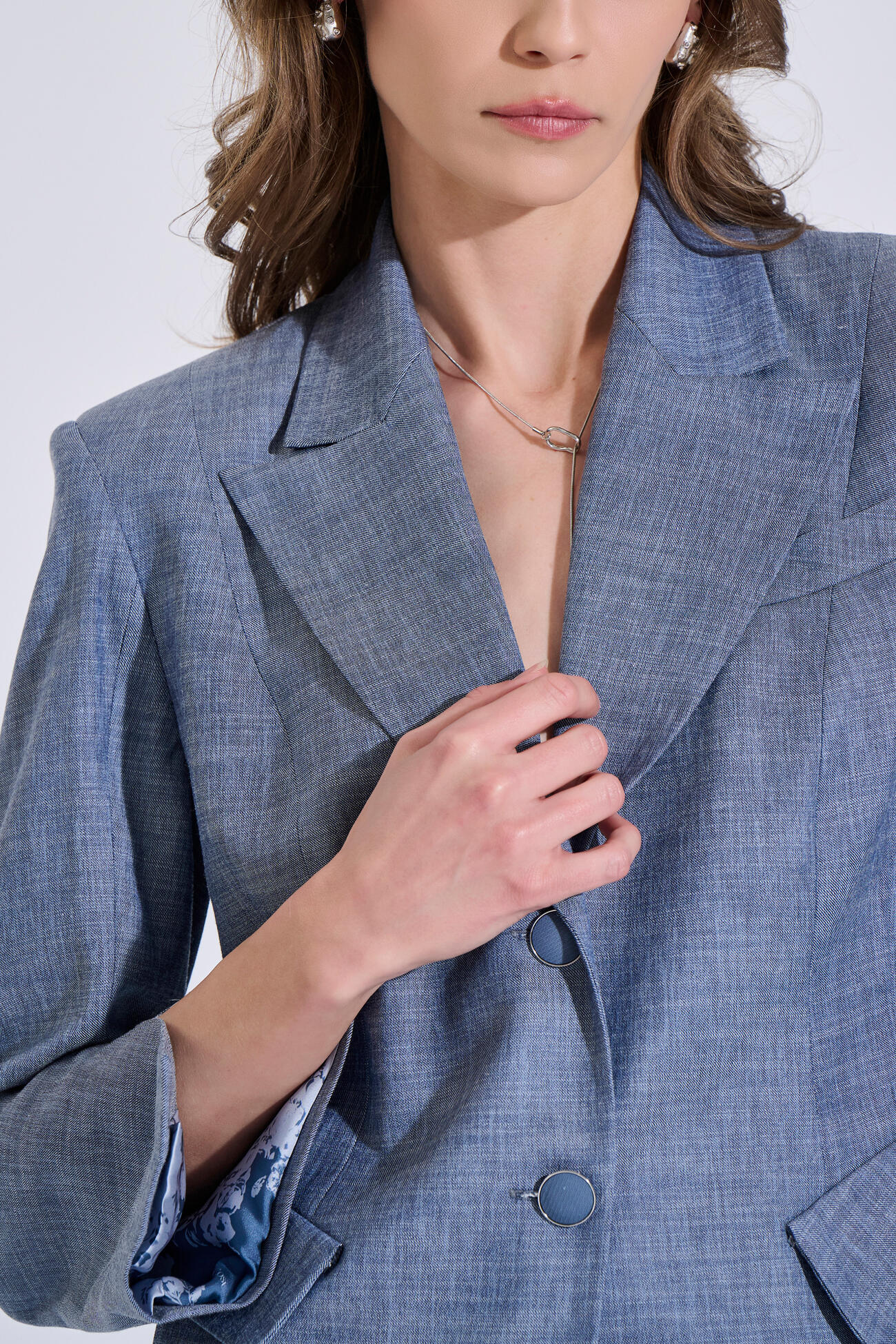 Σακάκι σε κομψή, tailored γραμμή με κλασικό πέτο και μπροστινό κλείσιμο με κουμπιά. Διαθέτει καπάκια τσέπης και διακριτική τσέπη στο στήθος, ενώ τα μανίκια έχουν διακριτικό άνοιγμα στο τελείωμα. Φοριέται μόνο του ή σε σετ με το αντίστοιχο παντελόνι 10-410189-0.