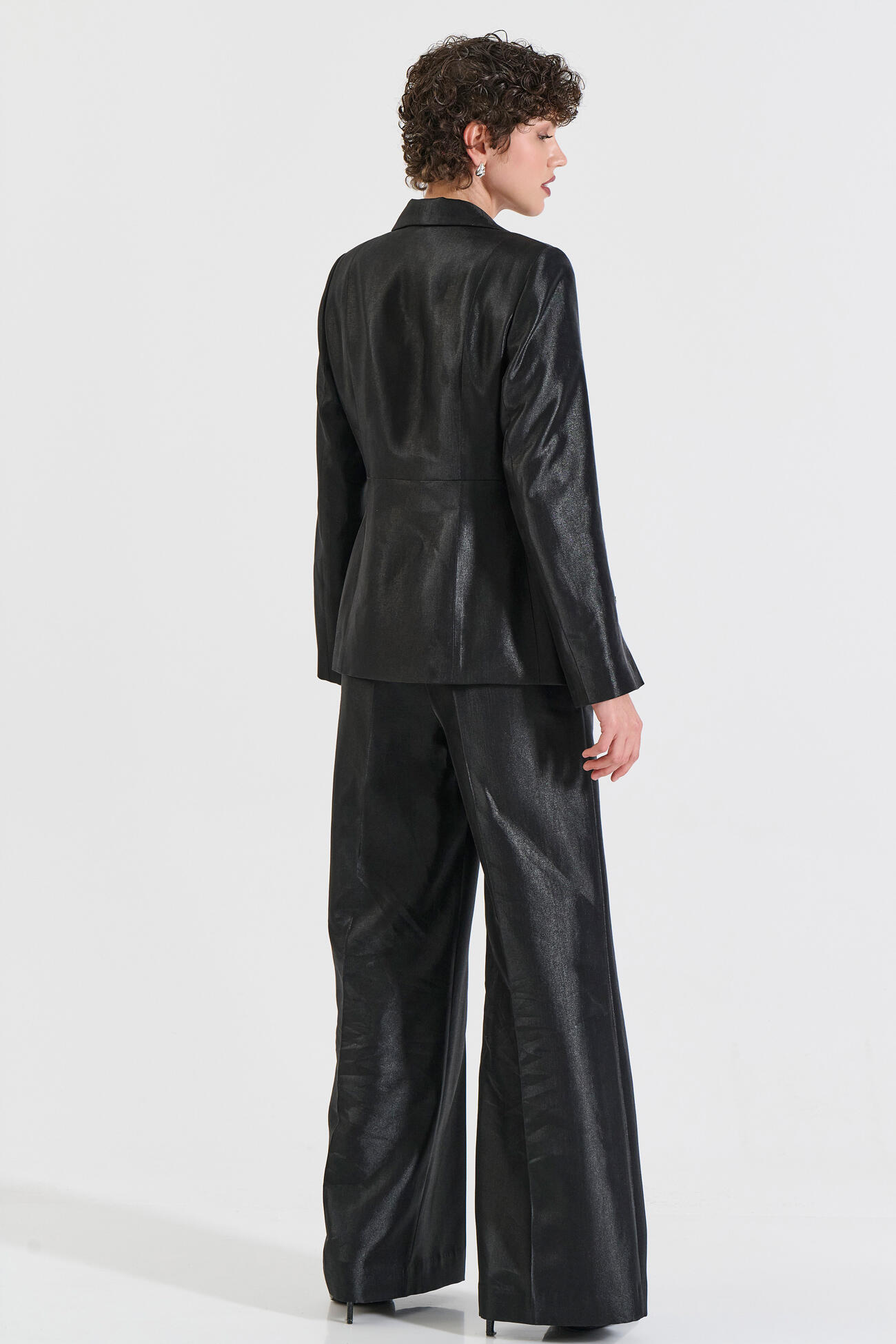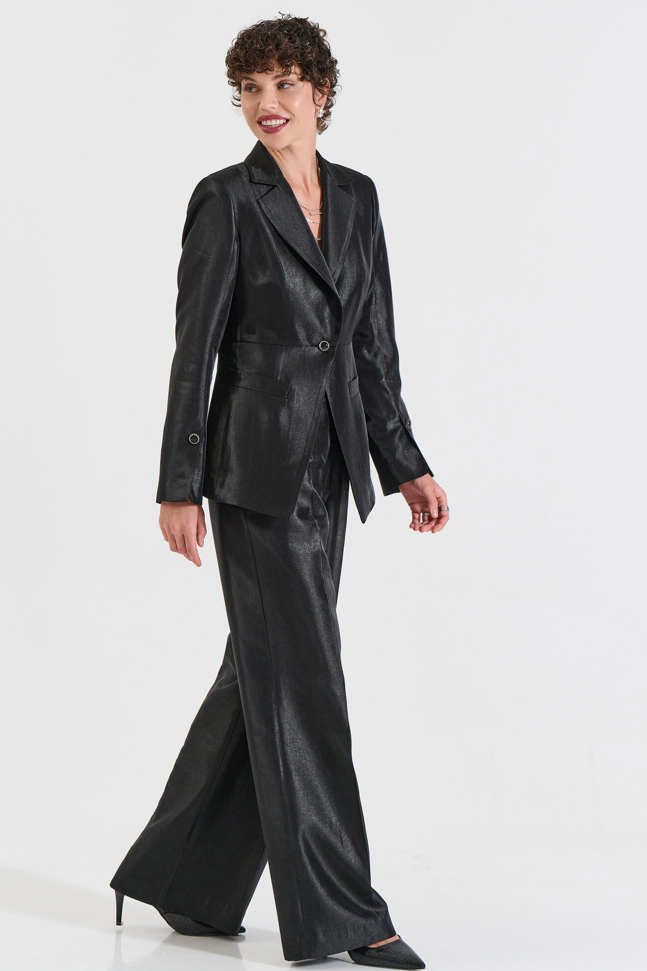 Κομψό σατέν σακάκι με διακριτική λάμψη που χαρίζει σύγχρονο και refined χαρακτήρα. Διαθέτει κλασικό γιακά, μπροστινό κούμπωμα και καθαρή, καλοραμμένη γραμμή που αναδεικνύει τη σιλουέτα. Η υφή του σατέν προσθέτει luxe αίσθηση, ιδανική για βραδινά και formal looks. Συνδυάζεται ιδανικά με το παντελόνι 10-050490-0 και το γιλέκο 10-050491-0 για ένα ολοκληρωμένο, sophisticated σύνολο.