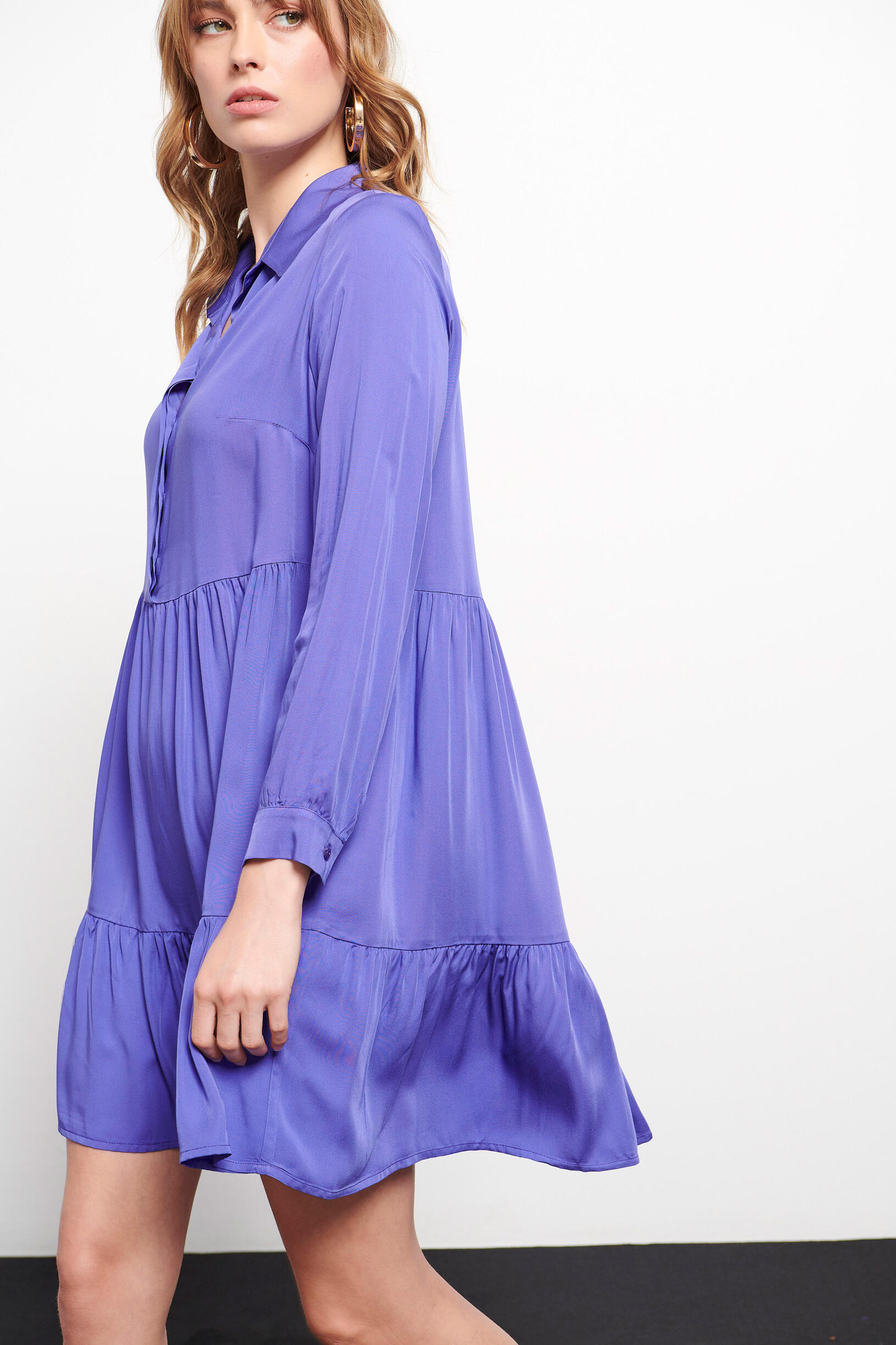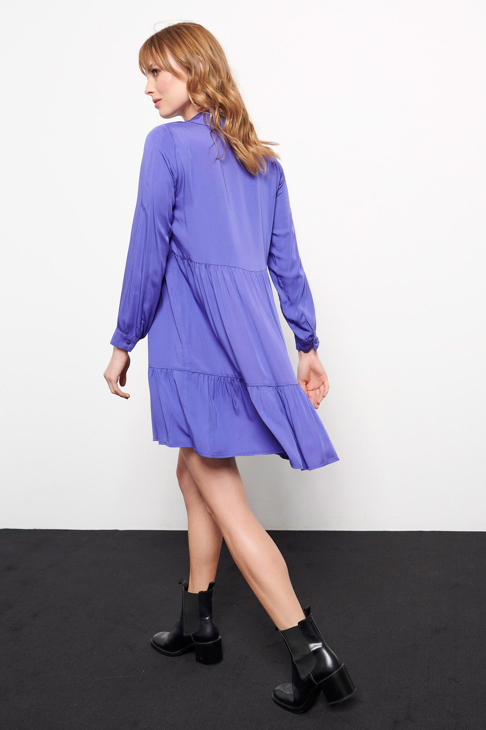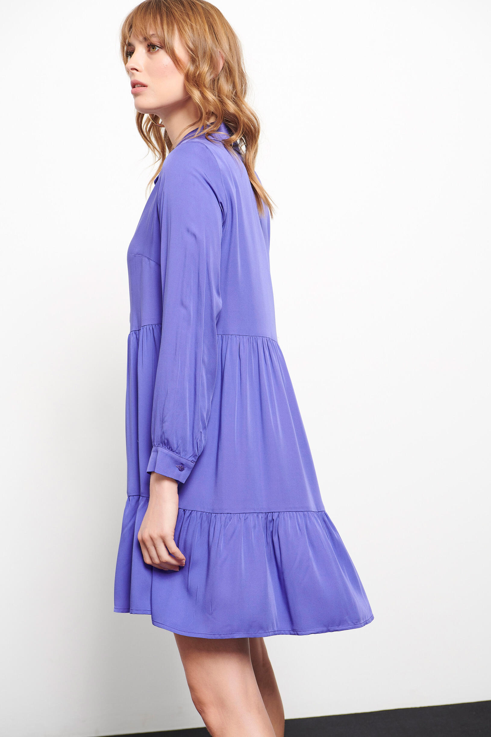 Φόρεμα σεμιζιέ Κωδικός 10-050395-0 Περιγραφή Κοντό φόρεμα με γιακά σε στυλ πουκαμίσου και μακριά μανίκια. Κλείνει μπροστά με κουμπιά. Σύνθεση 100% viscose