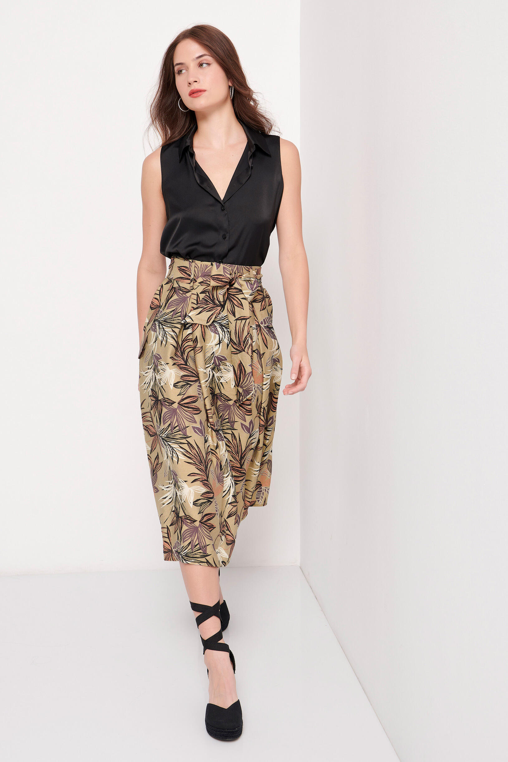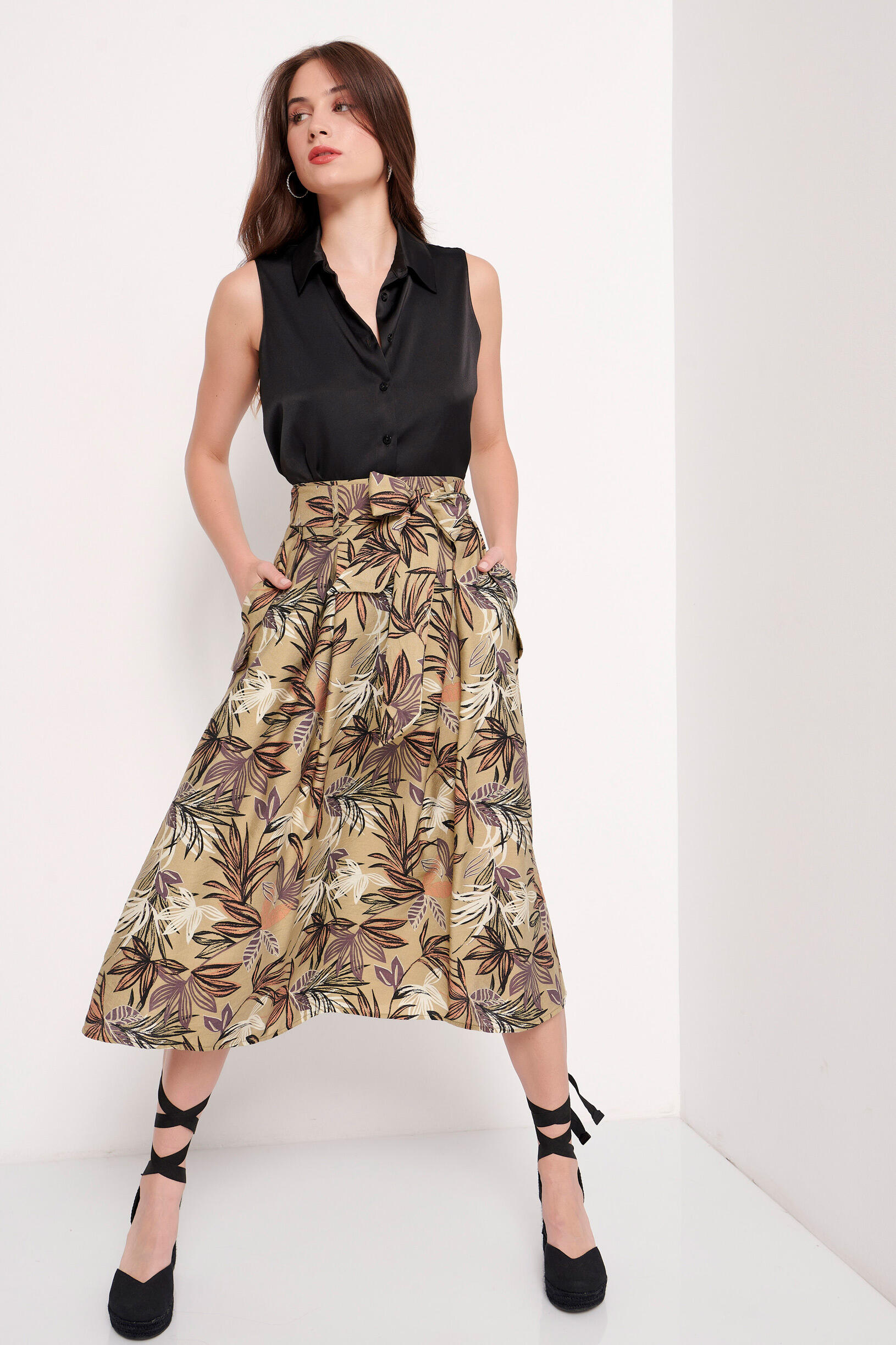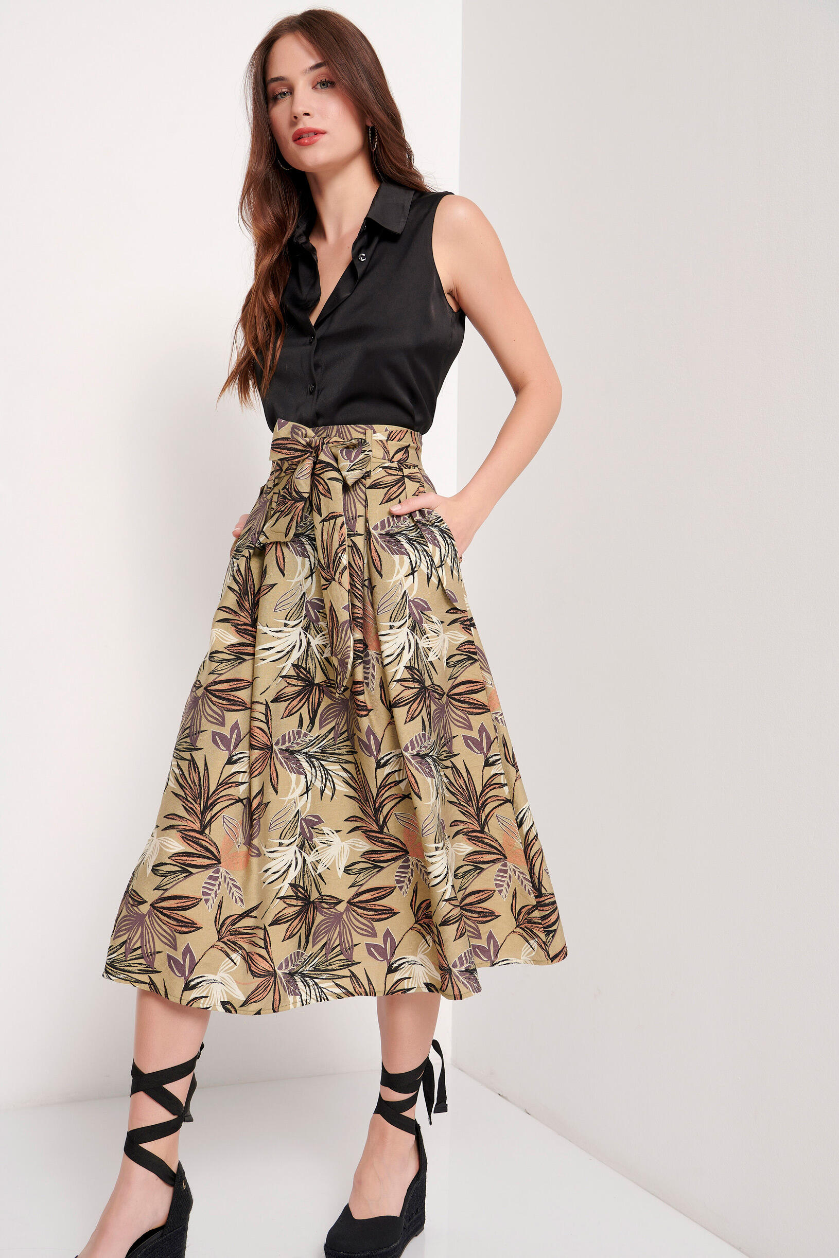 Εμπριμέ φούστα με ζώνη Κωδικός 10-341783-0 Περιγραφή Φούστα με floral print,πλαϊνές τσέπες και αποσπώμενη δετή ζώνη. Σύνθεση 75% viscose 25% tencel