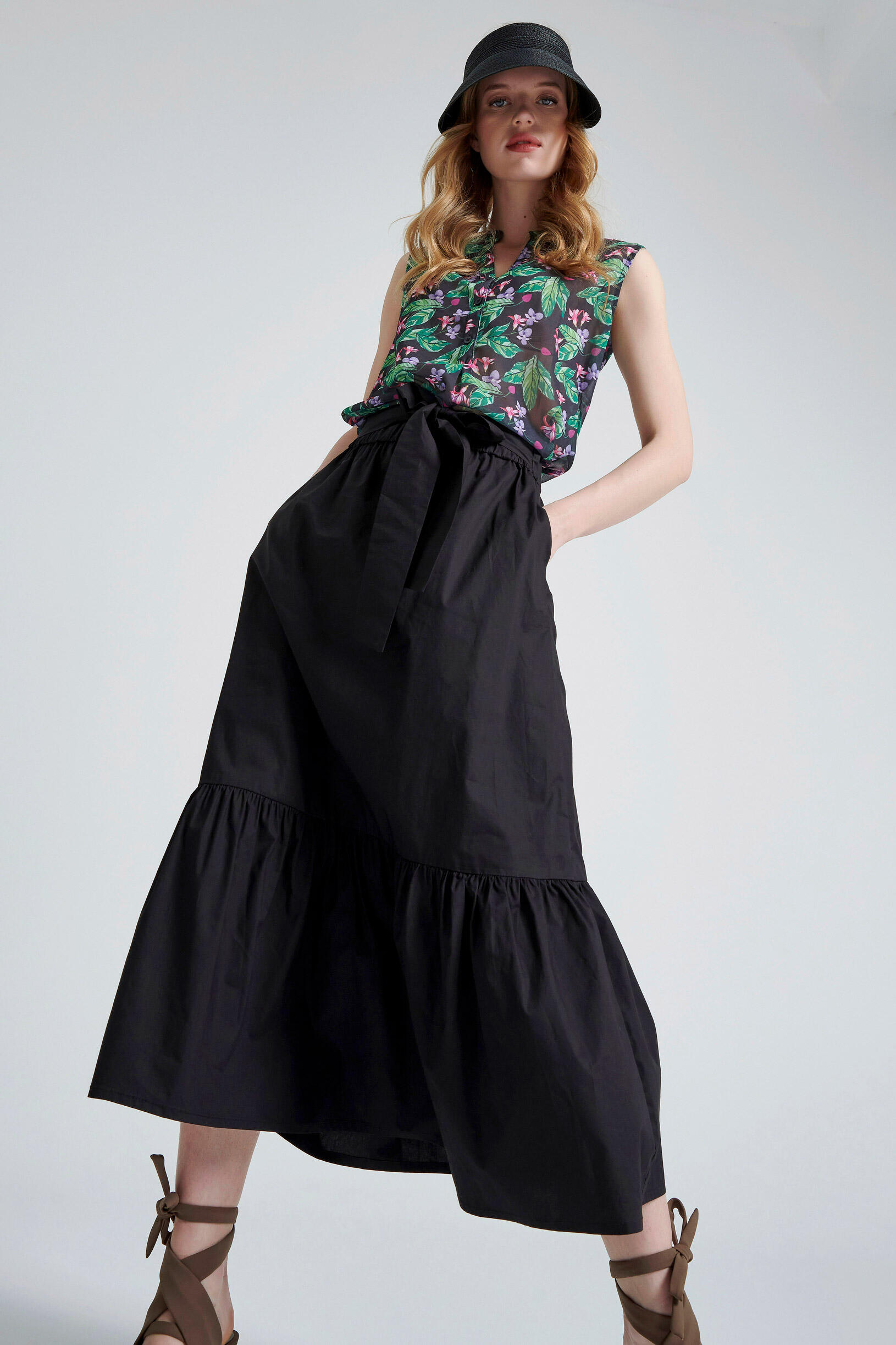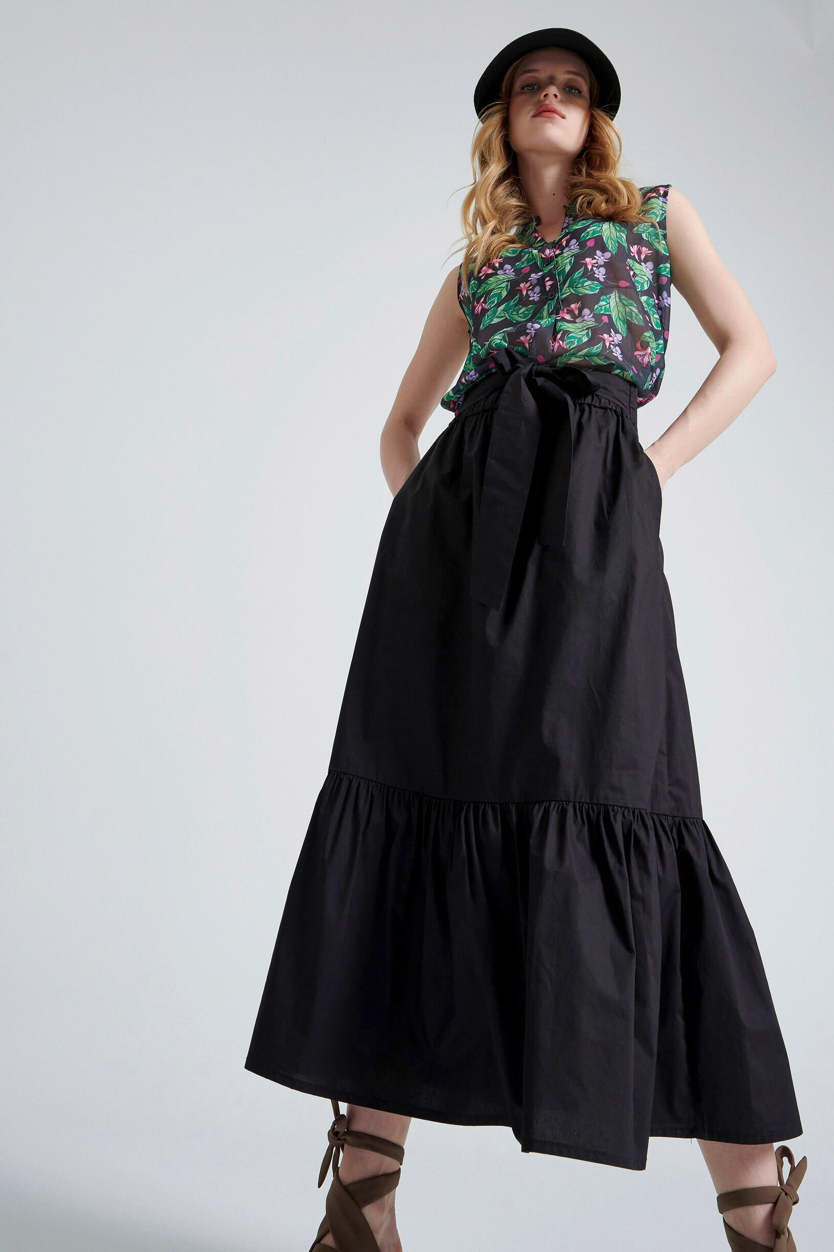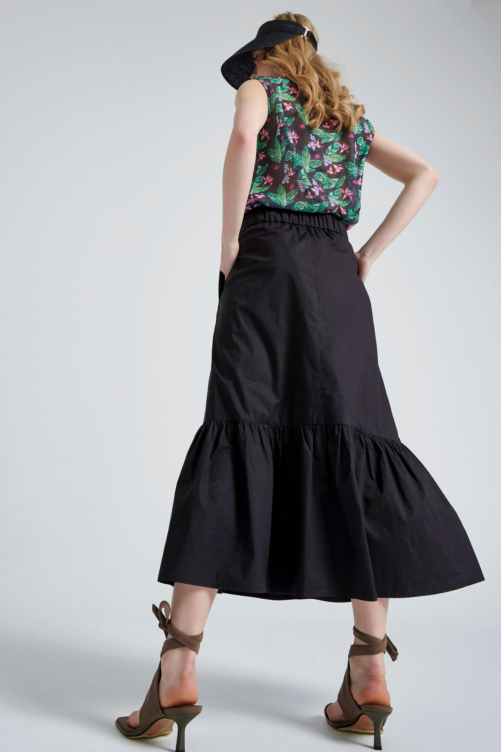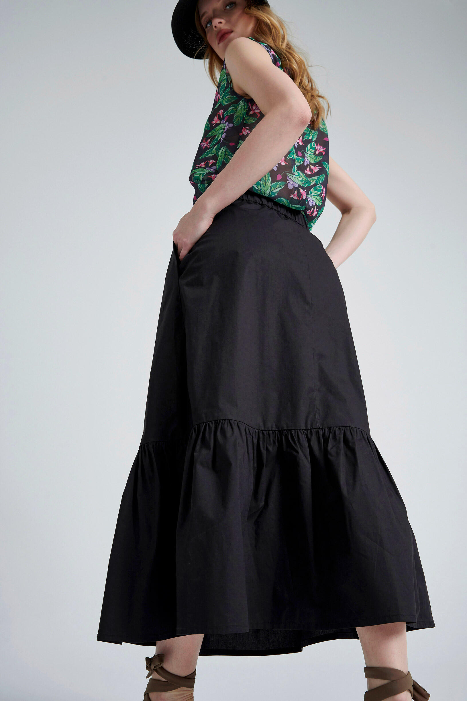 Φούστα με βολάν στο τελείωμα Κωδικός 10-180198-0 Περιγραφή Φούστα με ζώνη ίδιου υφάσματος,λάστιχο στο πίσω μέρος, βολάν στο τελείωμα. Σύνθεση 100% cotton