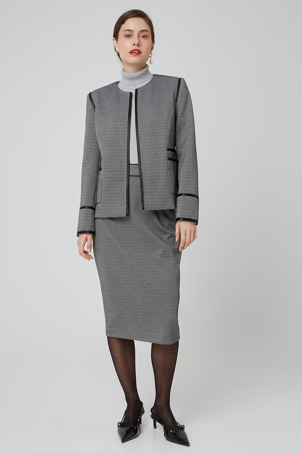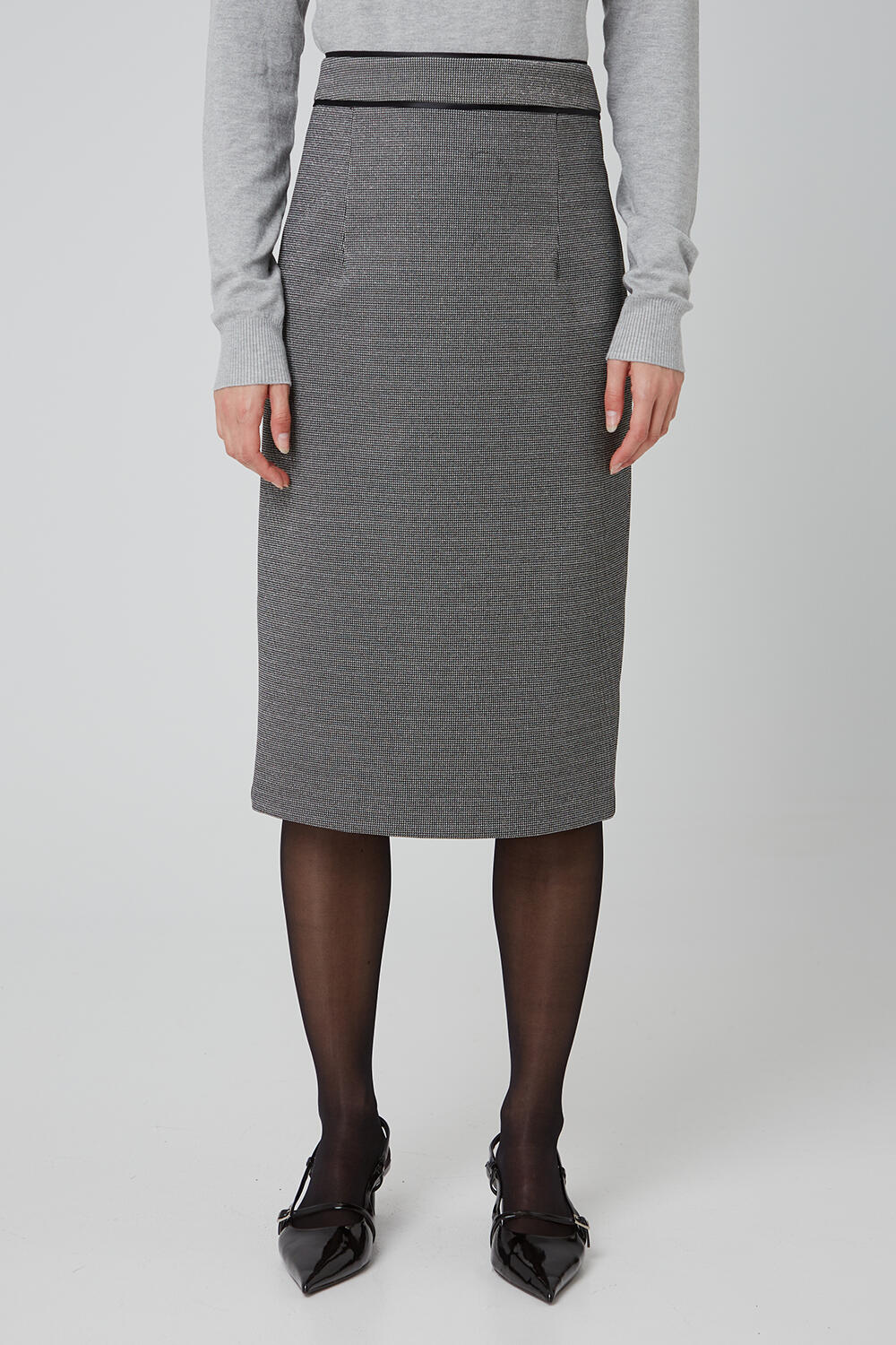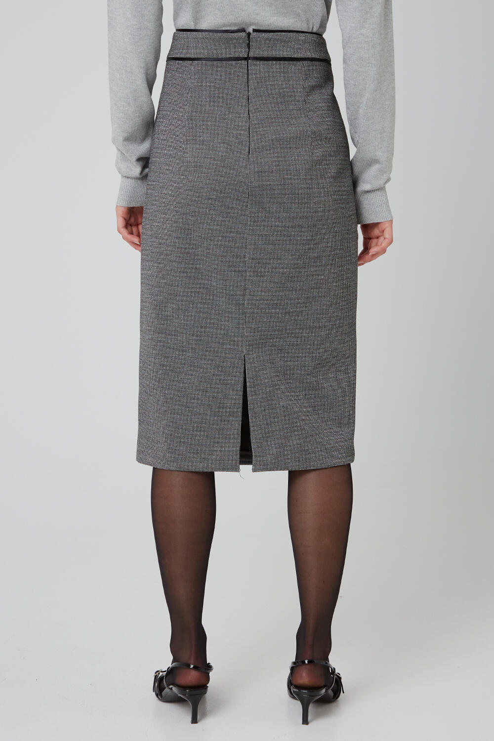 Φούστα μεσαίου μήκους με μικρό καρό και λεπτομέρειες με συνδυασμό υφασμάτων. Συνδυάστε το με το 10-330344-0 σακάκι για ένα total look.