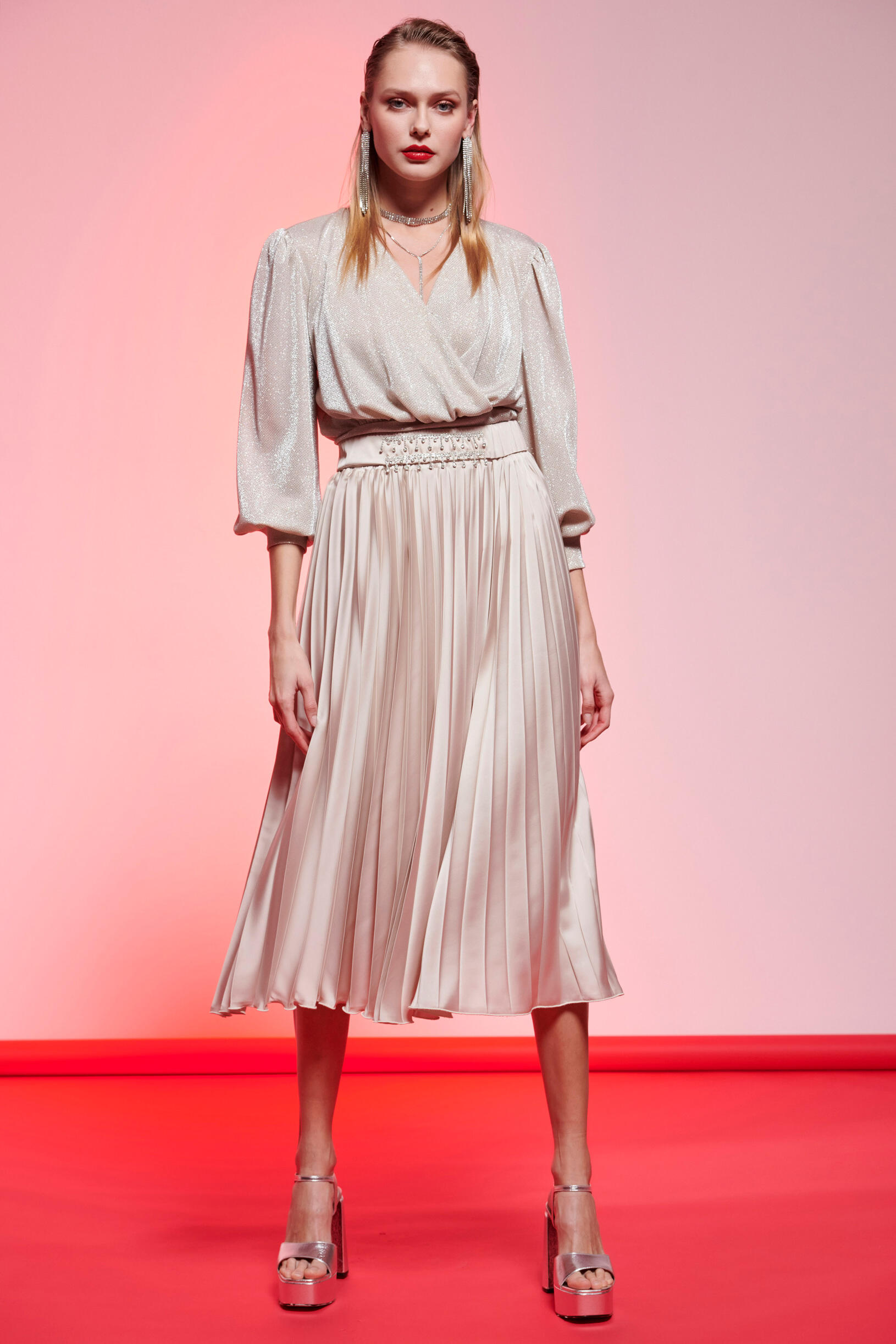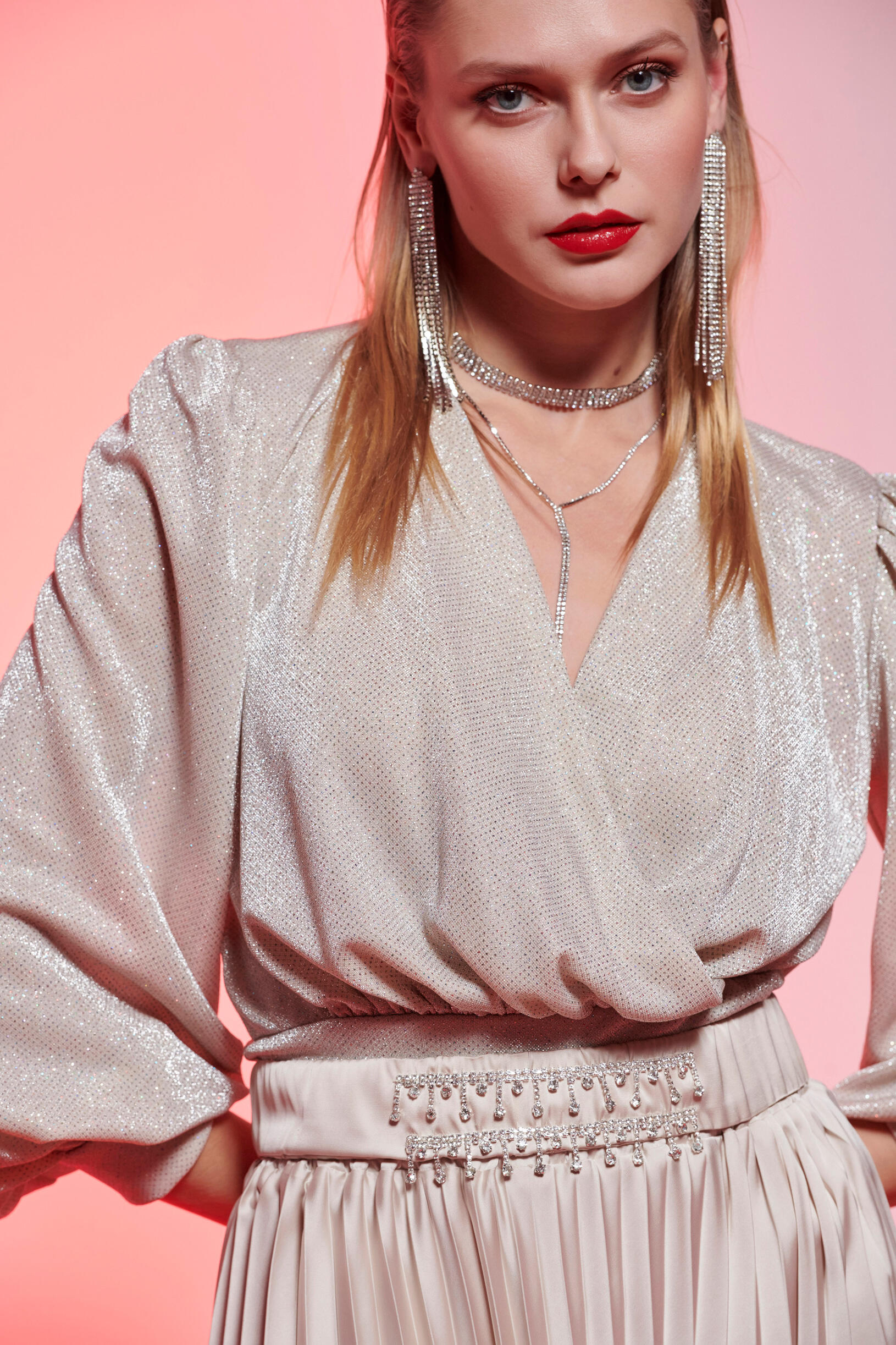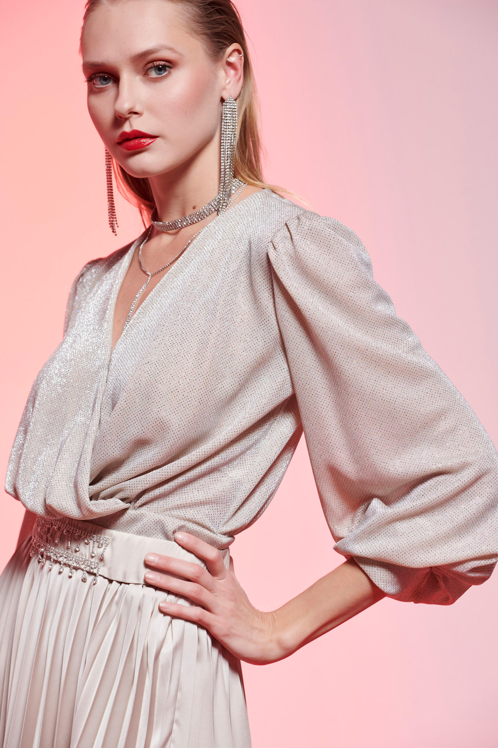 Μπλούζα μακρυμάνικη με γυαλάδα Κωδικός 10-190068-0 Περιγραφή Μπλούζα μακρυμάνικη με γυαλάδα με κρουαζέ ντεκολτέ. Μανίκια με τελείωμα σε balloon. Σύνθεση 65% nylon 35% metal fiber