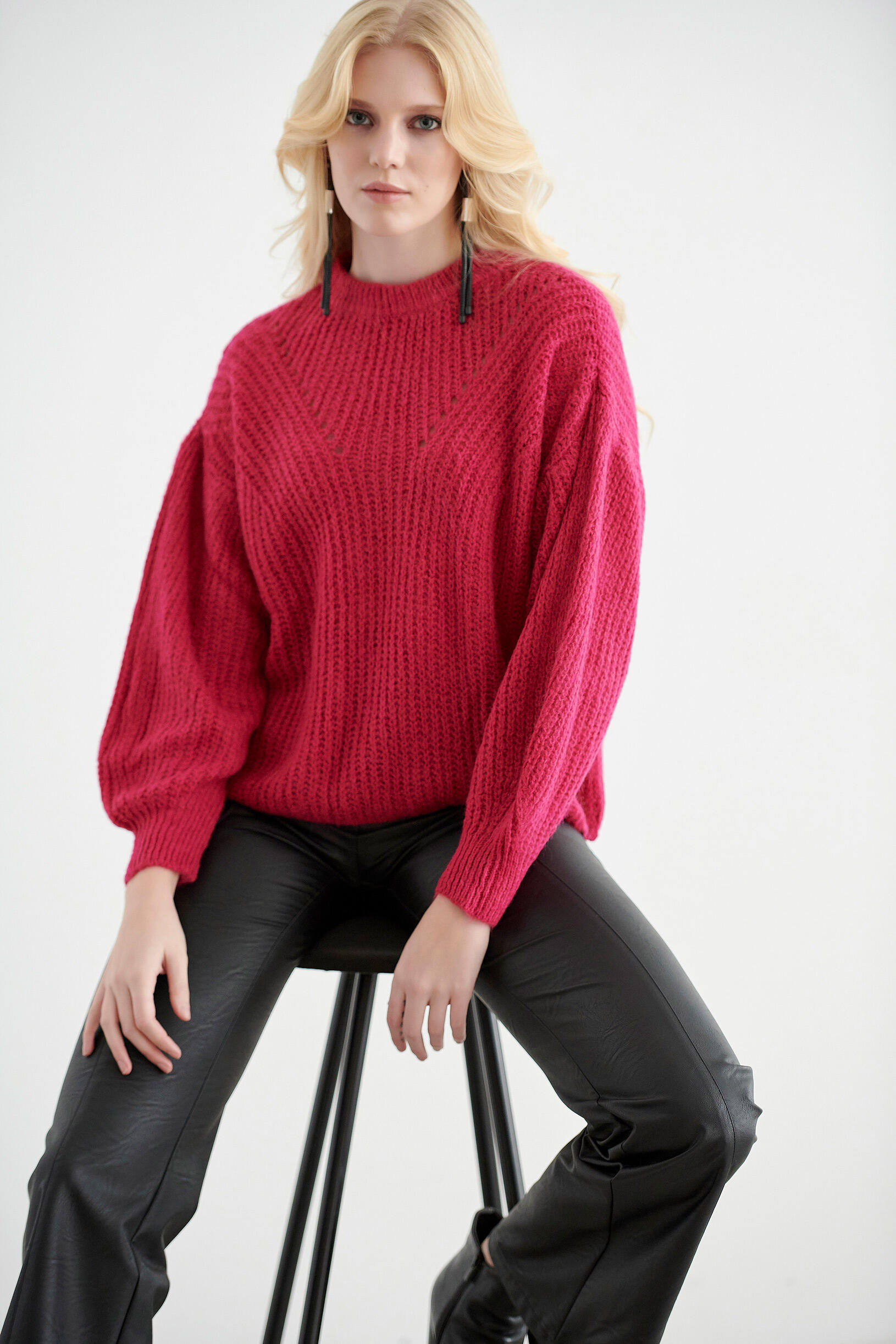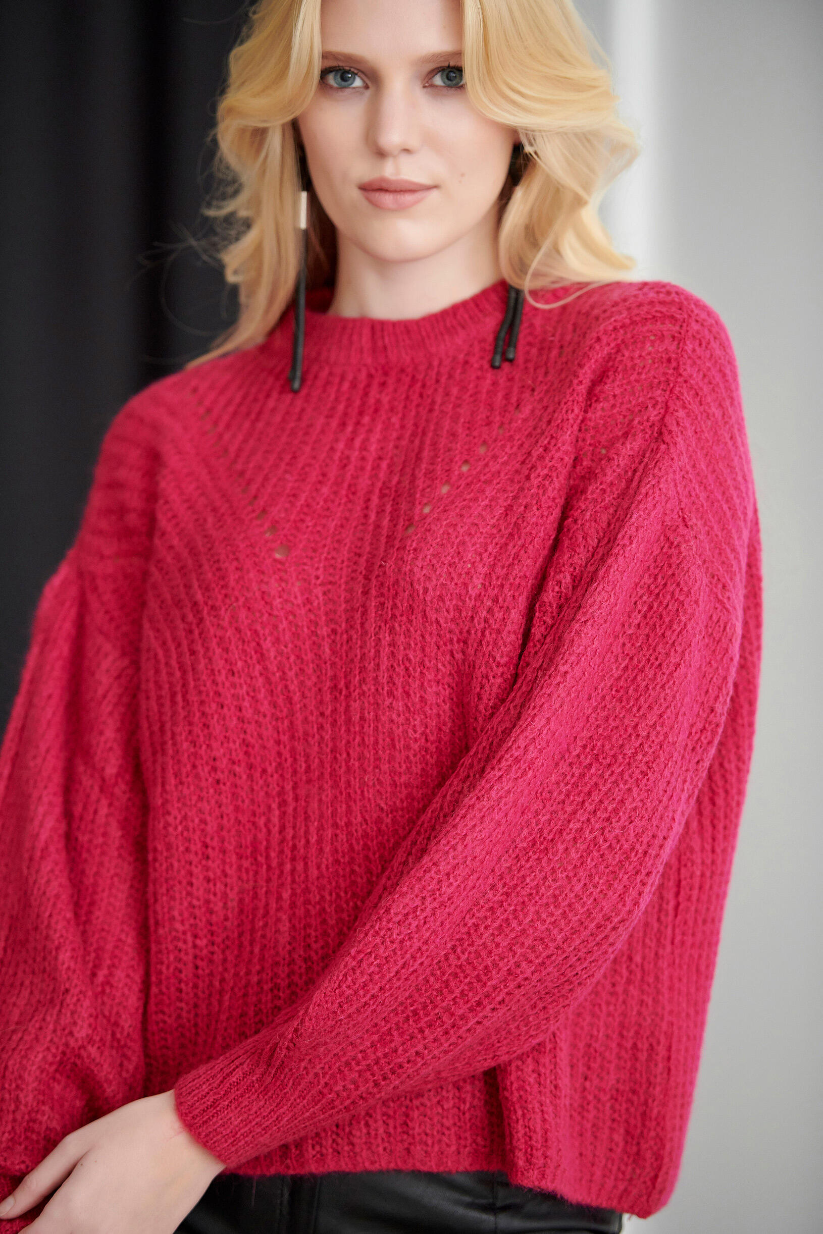Πλεκτή μπλούζα με διάτρητη πλέξη