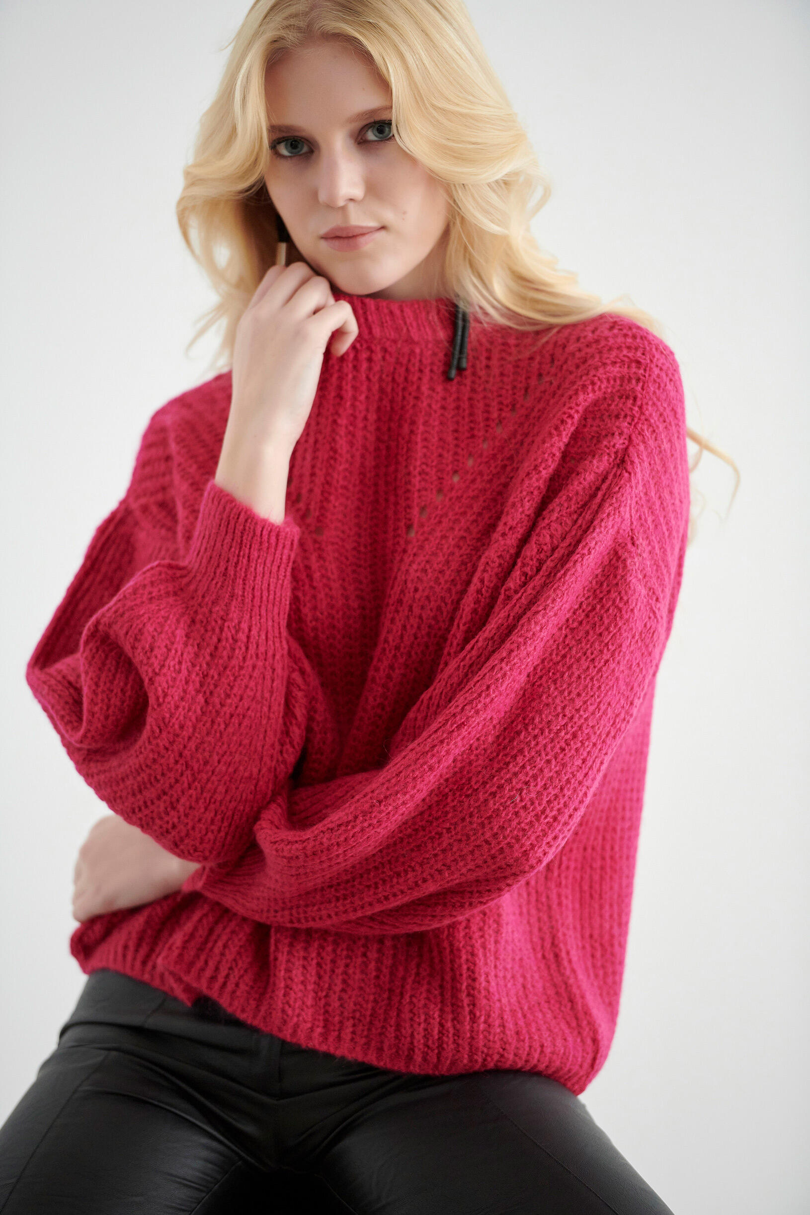 Μακρυμάνικη πλεκτή μπλούζα με σχέδιο στην πλέξη. Διαθέτει όρθιο γιακά μαι ριπ λεπτομέρειες στα μανίκια. Κατάλληλη για άνετες και κομψές καθημερινές εμφανίσεις.