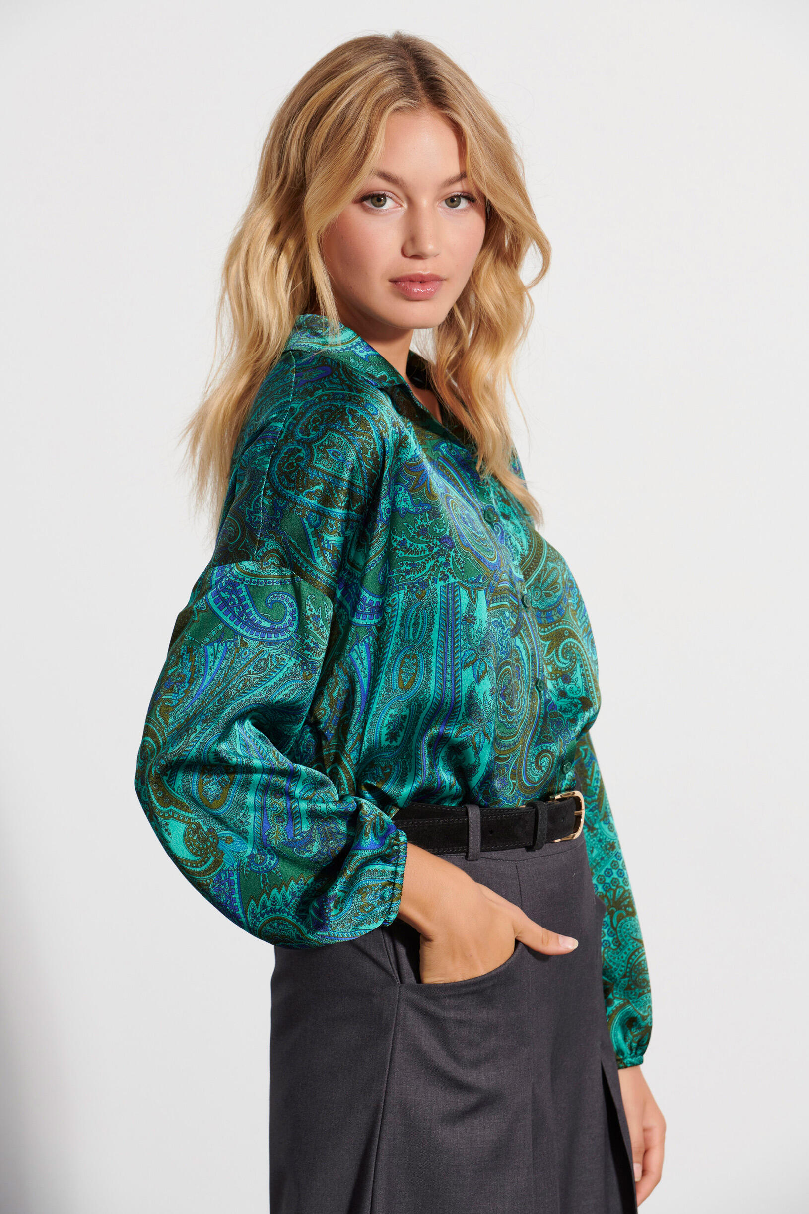 Πουκάμισο με εμπριμέ μοτίβο Κωδικός 10-341885-0 Περιγραφή Πουκάμισο με εμπριμέ μοτίβο σατινέ όψης με γιακά και μακριά μανίκια με λάστιχο στο τελείωμα. Σύνθεση 100% polyester