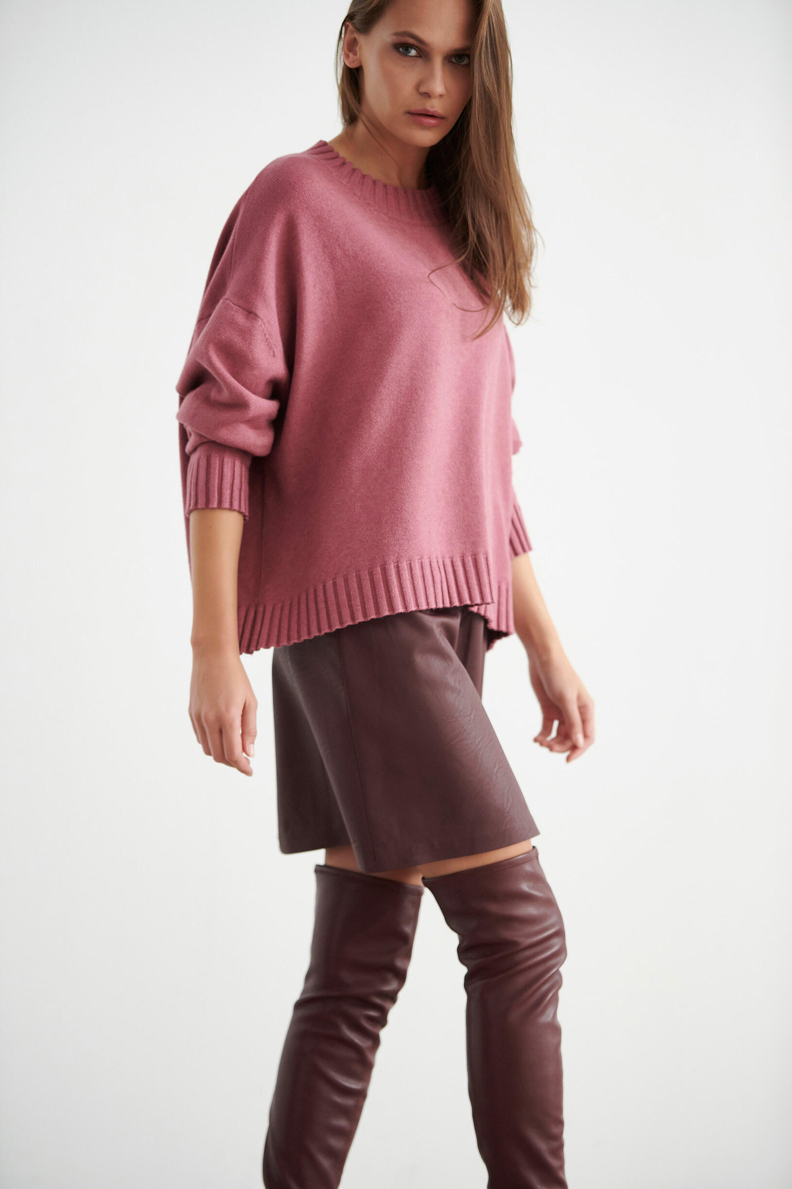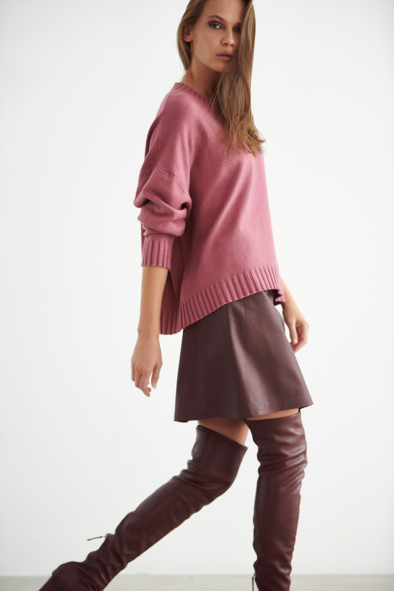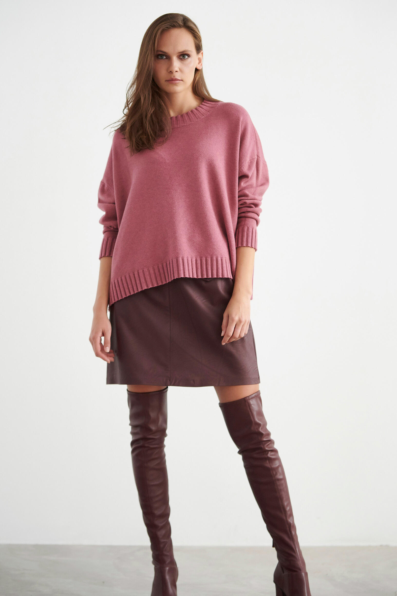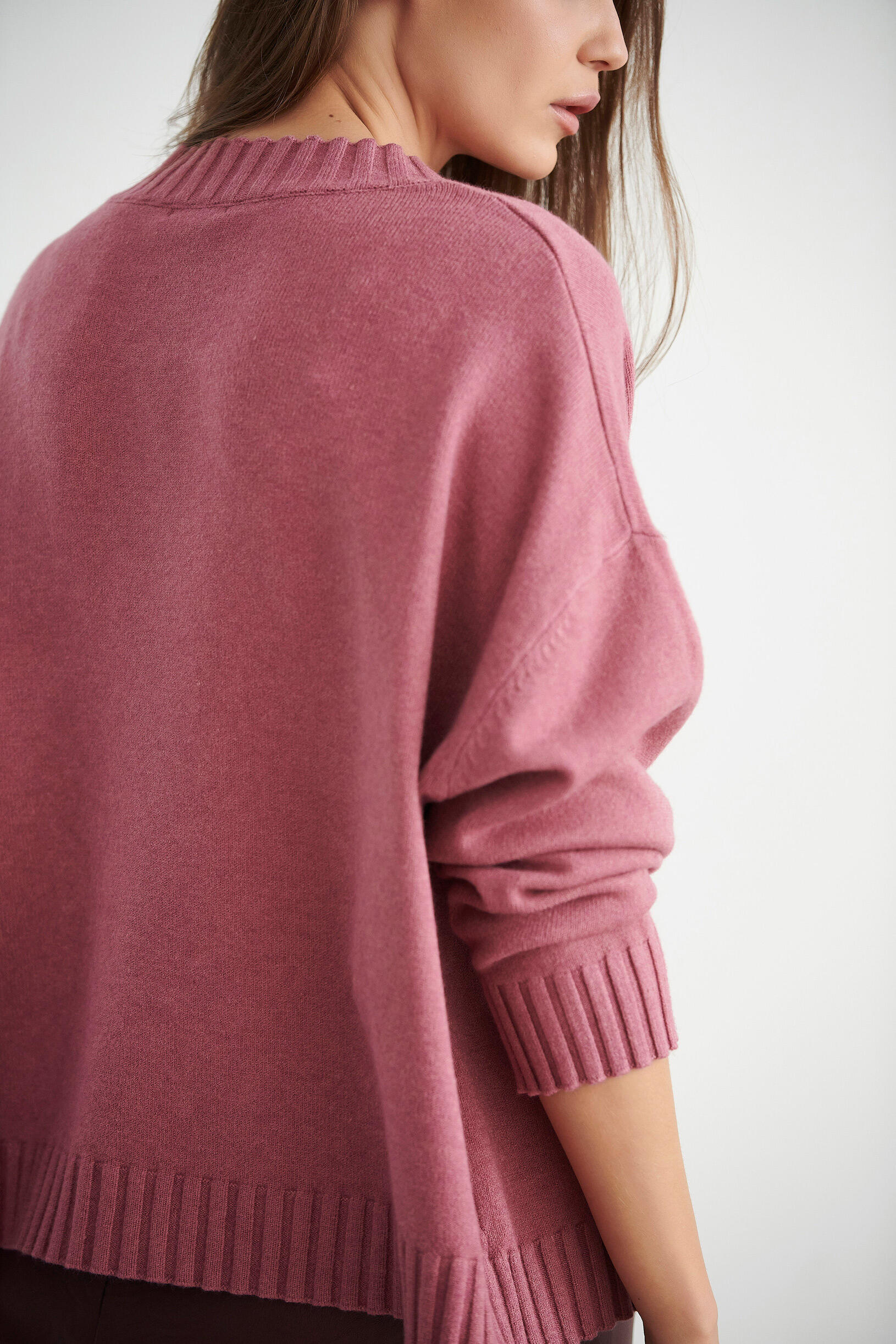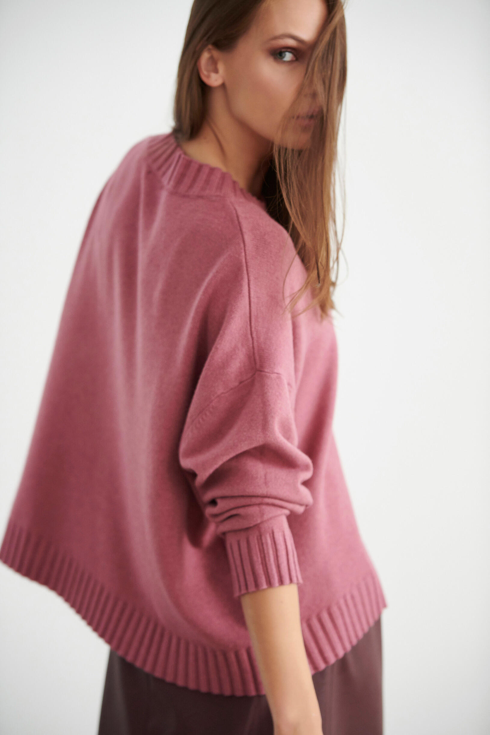 Μπλούζα πλεκτή σε άνετη γραμμή. Διαθέτει ριπ λεπτομέρειες στη λαιμόκοψη και στο τελείωμα των μανικιών.