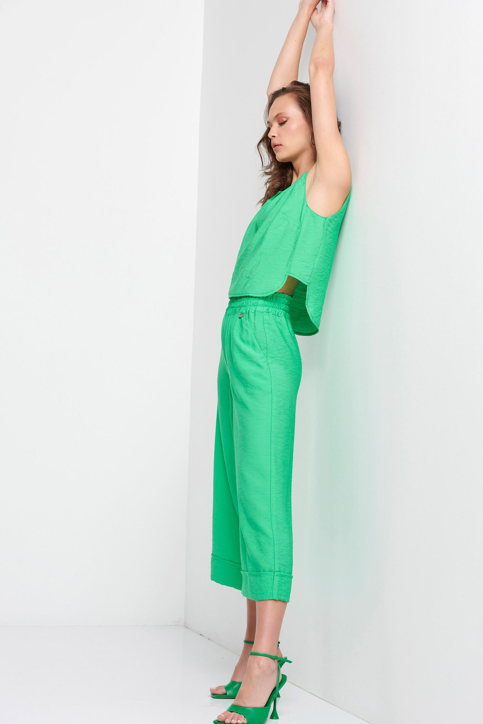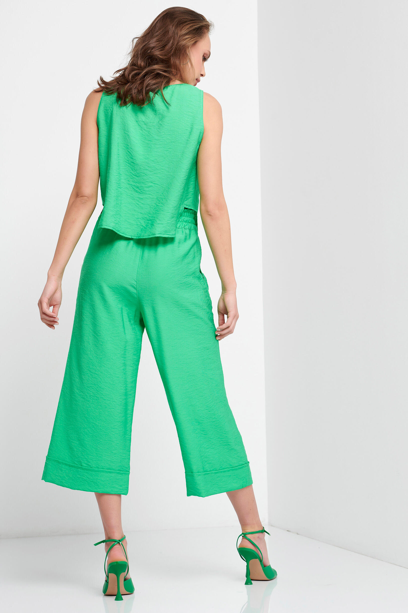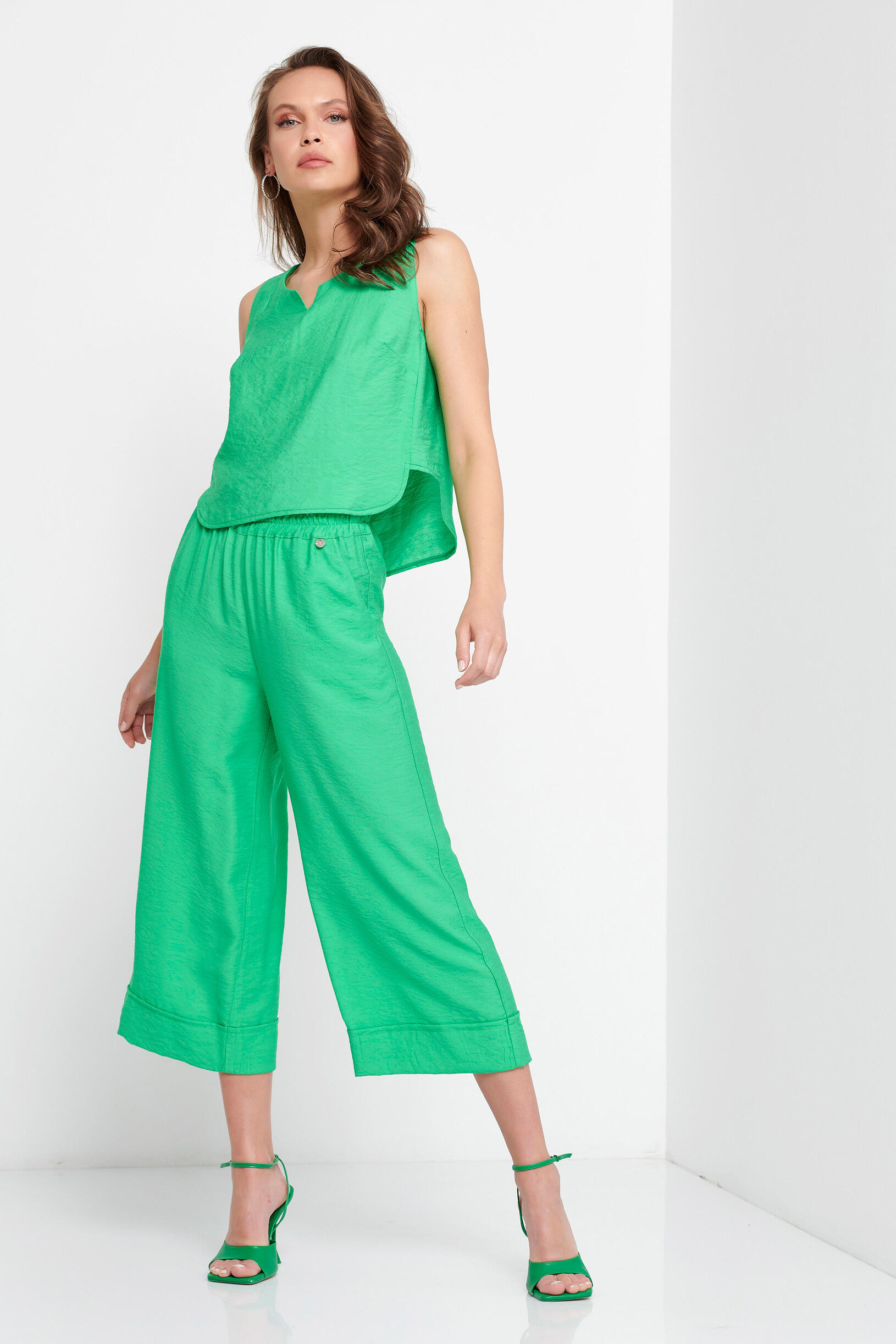 Ζιπ - κιλότ με λάστιχο στη μέση και διακοσμητικό μεταλλάκι.Διαθέτει πλαϊνές τσέπες και ρεβέρ στο τελείωμα.Συνδυάστε τη με τη μπλούζα ίδιας ποιότητας 10-350402-0 για μια ολοκληρωμένη εμφάνιση.